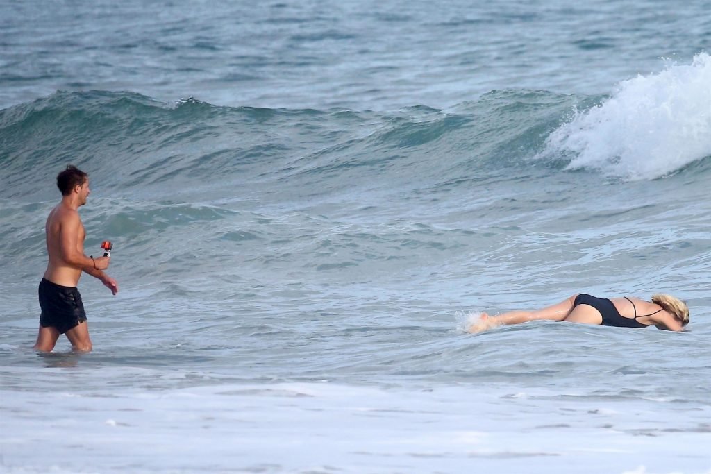 Le couple, marié depuis près de deux ans, a été aperçu partageant beaucoup de gestes affectueux en public et semblait n’avoir d’yeux que l’un pour l’autre. Margot portait un maillot de bain une pièce noir, et le couple a été vu en train de prendre des photos avec la GoPro de Tom.