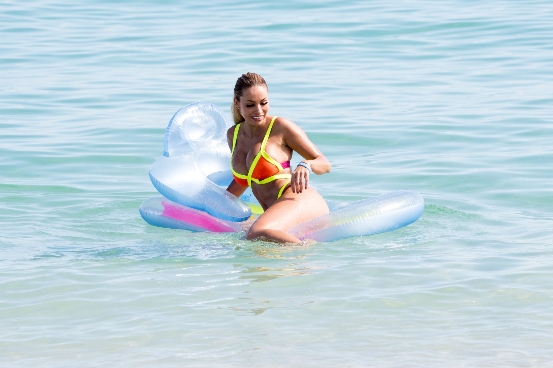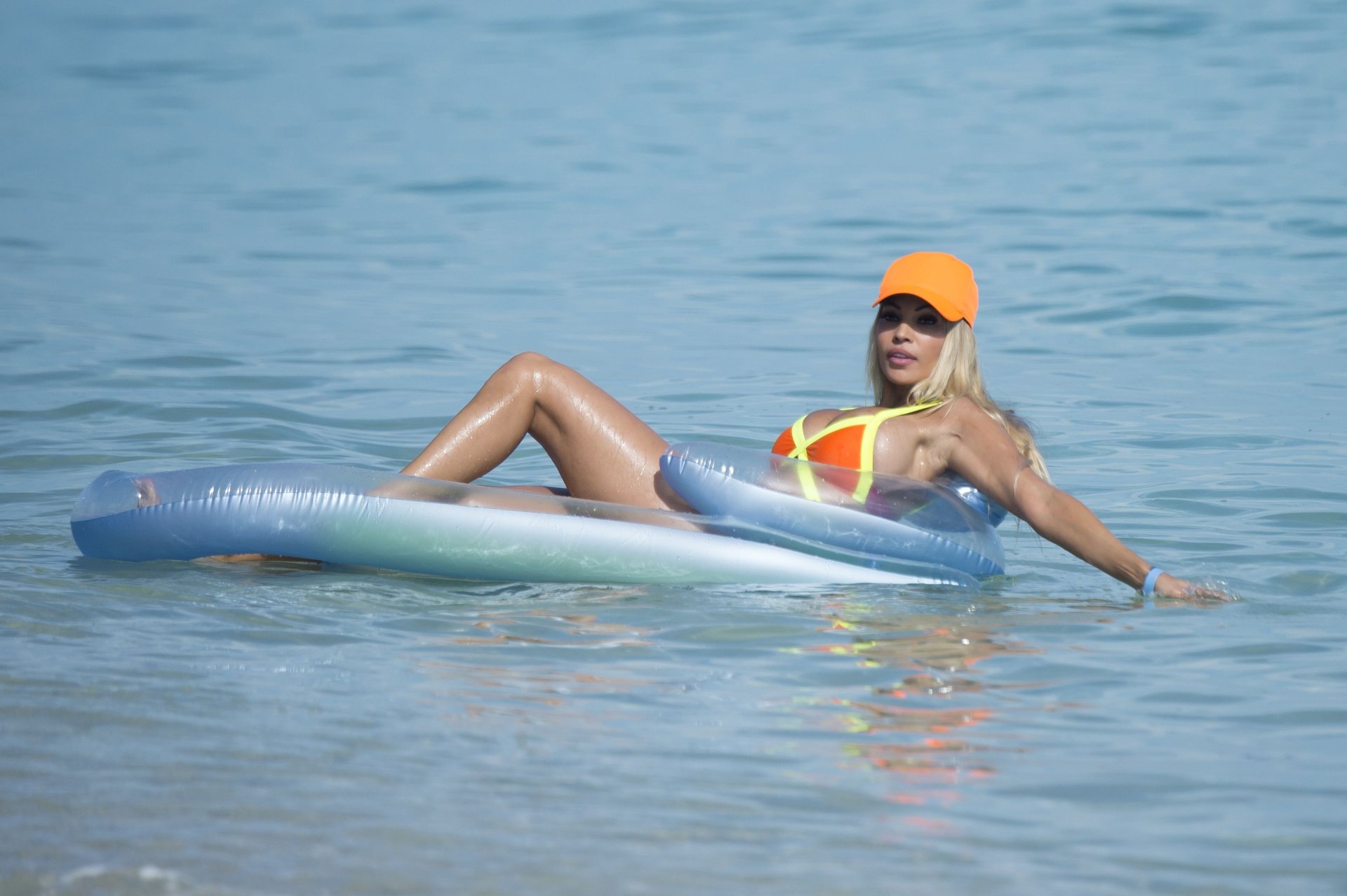 Maria Hering porte un bikini néon sur Miami Beach, 25/01/2017. Un petit aréole apparaît ! Maria Hering (Yota) est un modèle allemand. Âge : 28 ans.