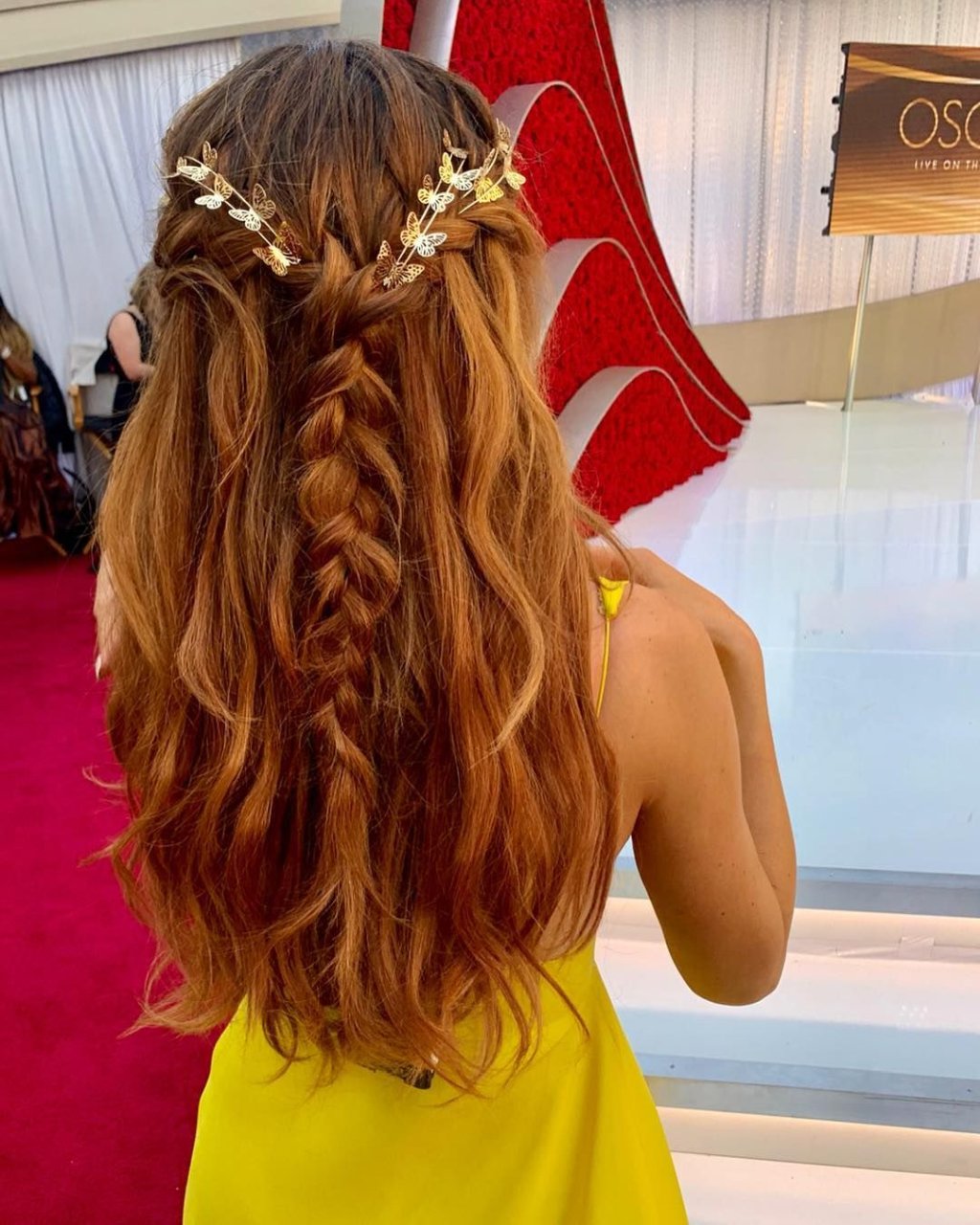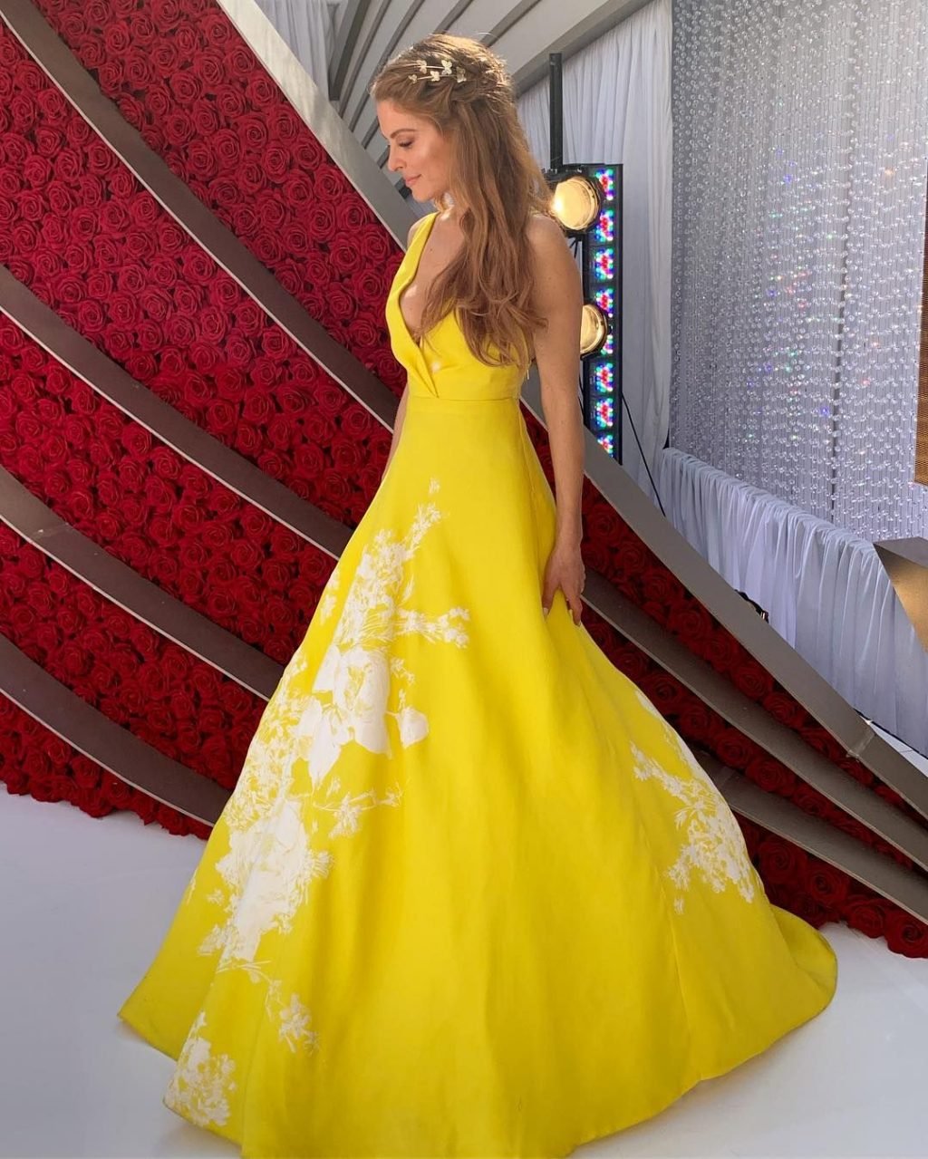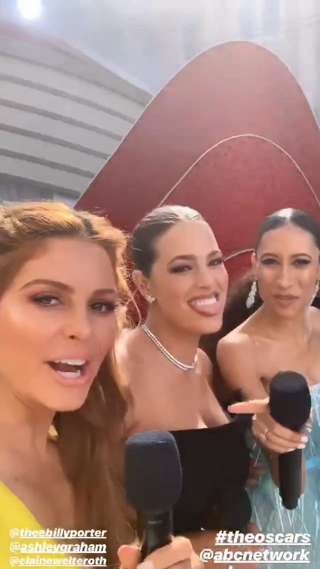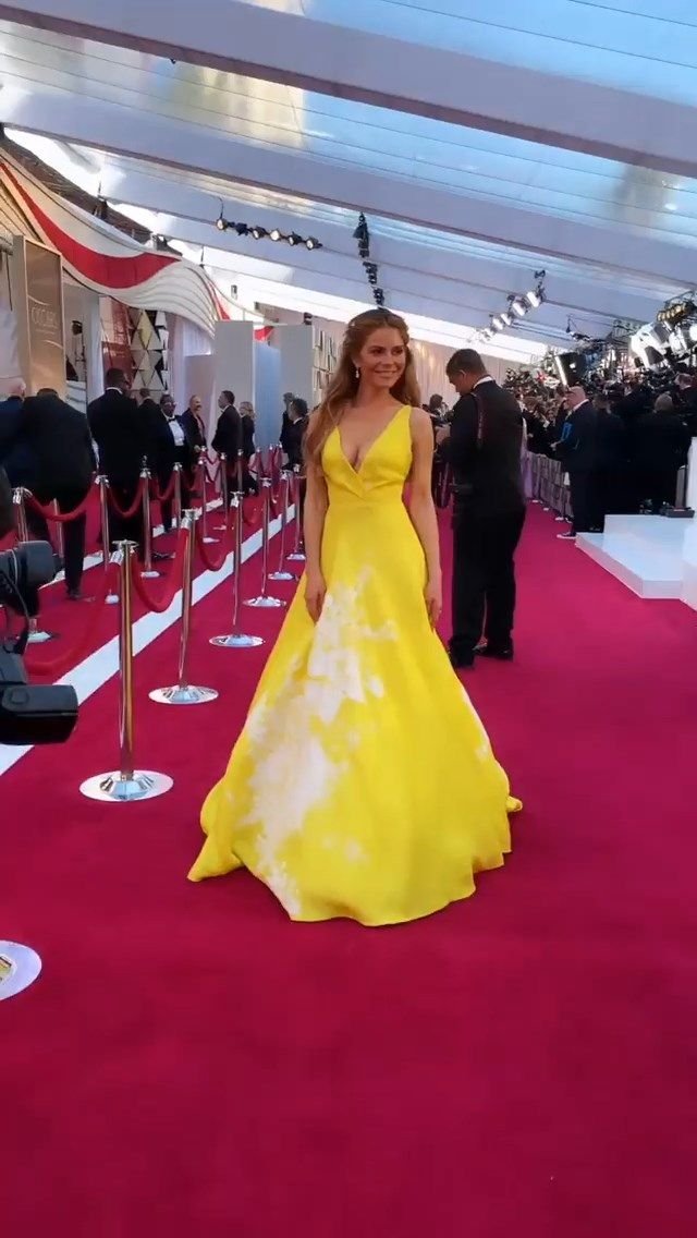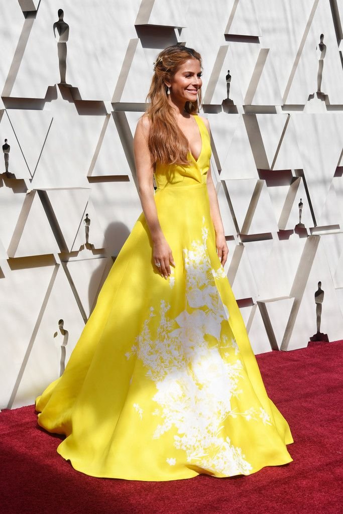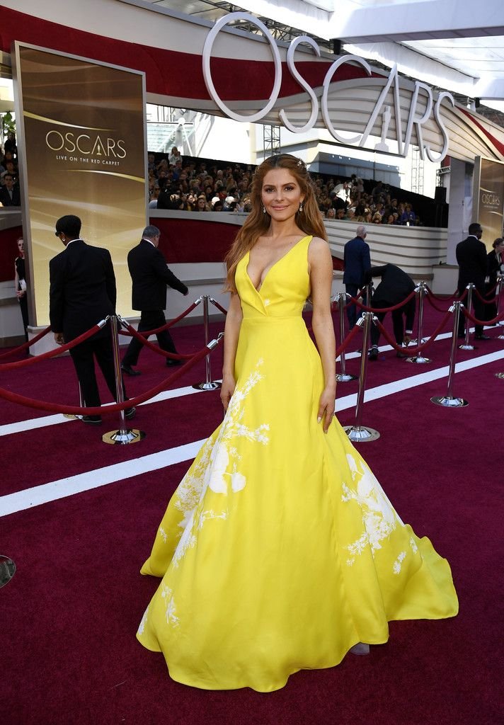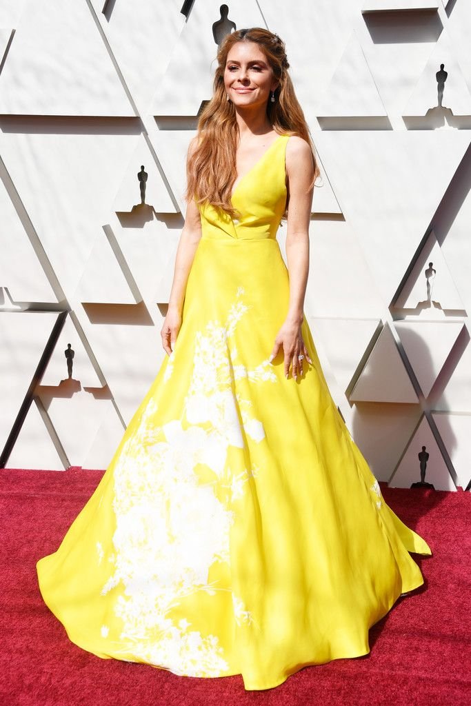 L’actrice Maria Menounos (40 ans) montre son décolleté en portant une robe jaune lors de la 91e cérémonie annuelle des Oscars à Hollywood, le 24/02/2019.