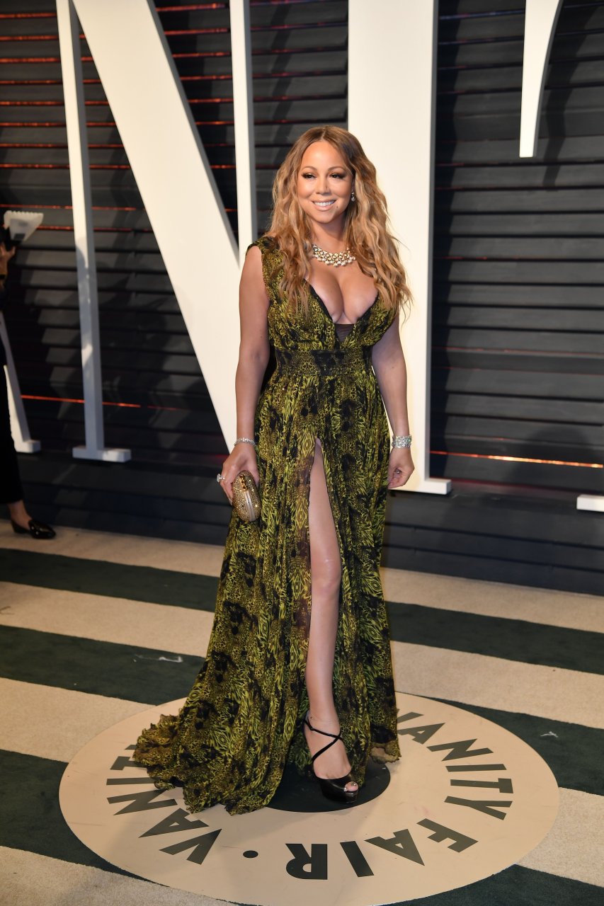 Mariah Carey exhibe son super décolleté lors de la Vanity Fair Oscar Party 2017 à Beverly Hills, le 26/02/2017. Mariah Carey est une actrice américaine (Empire), auteure-compositrice-interprète. Âge – 47 ans (née le 27 mars 1969).
