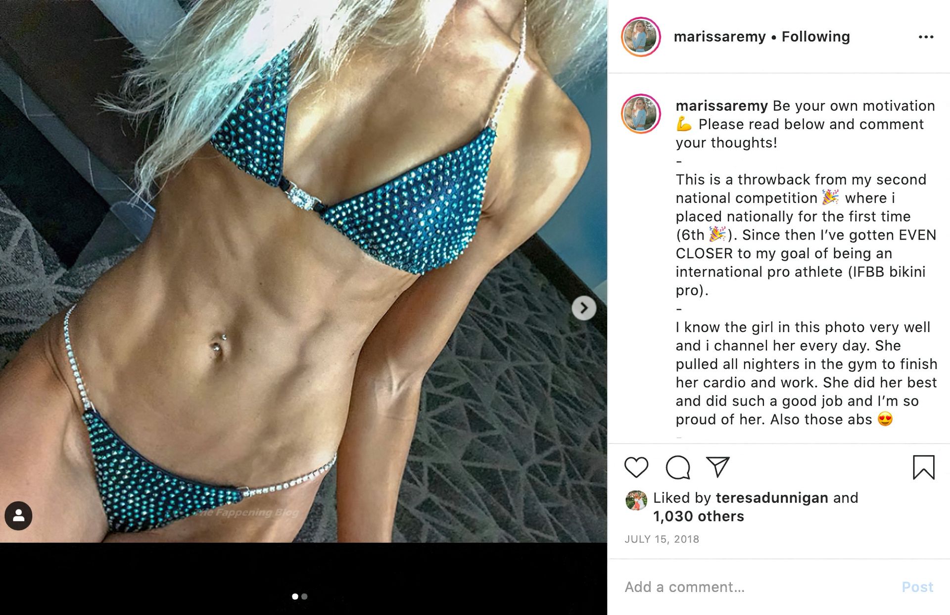 Marissa Remy, 24 ans, originaire du sud de la Californie, est créatrice de contenu à plein temps, avec plus de 69K abonnés sur sa page Instagram où elle publie des vidéos d’entraînement, des recettes saines et des clichés sensuels de sa silhouette incroyablement tonique.