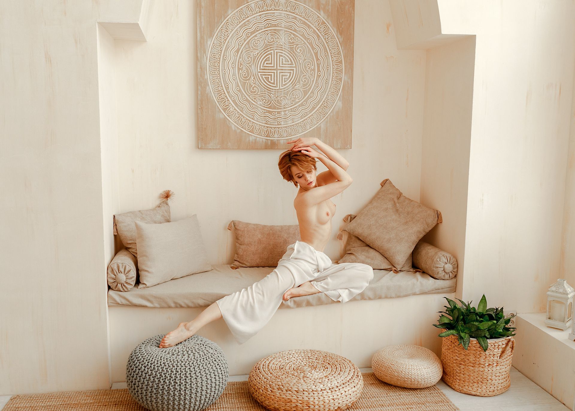 Découvrez les photos nues de Marta Gromova par Igor Kuprianow (2020). La beauté rousse a montré de superbes seins en posant avec un chapeau de paille.