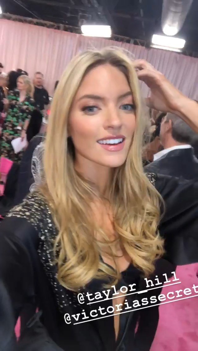 Le top modèle américain Martha Hunt porte des sous-vêtements avec des plumes et autre chose pour le défilé Victoria’s Secret Fashion Show 2018 à New York, 08/11/2018.