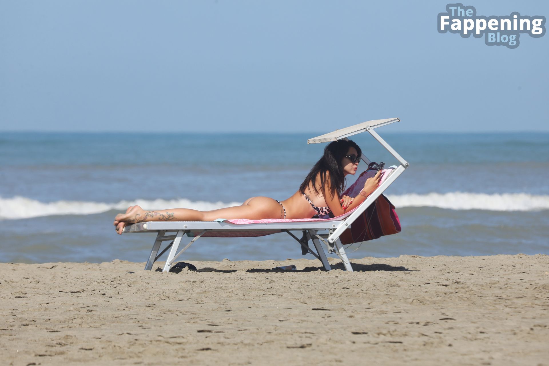 Martina Di Maria a été aperçue seins nus montrant sa poitrine nue à la plage de Sabaudia, en Italie, le 28/07/2023.