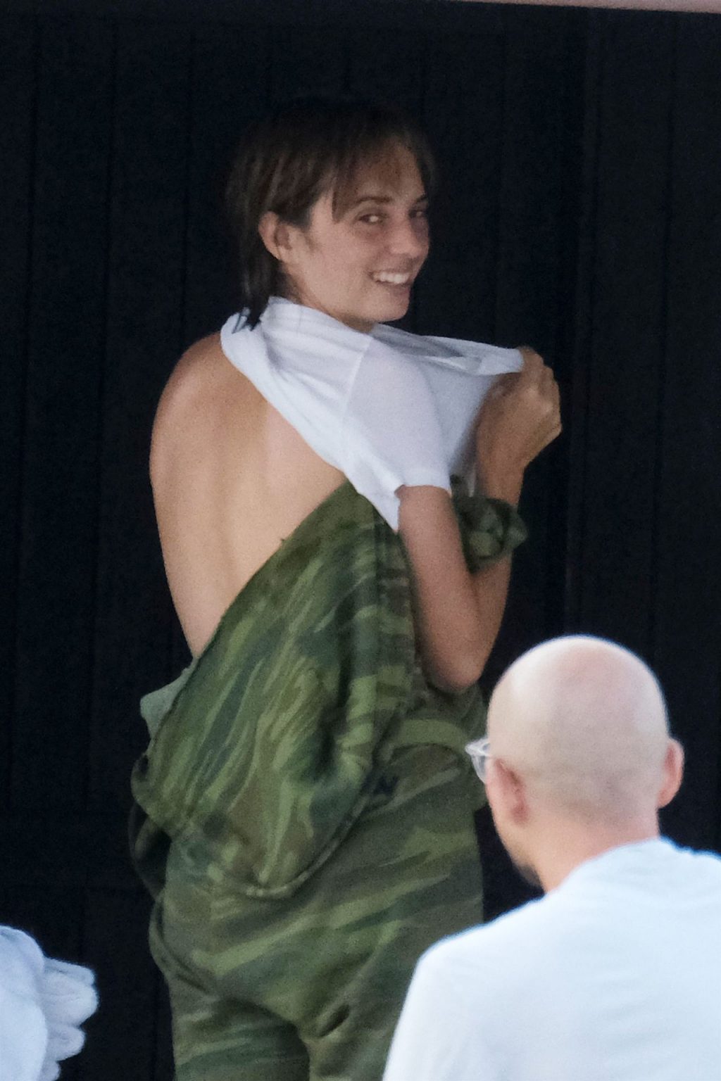 Je prends un téton accidentel n'importe quel jour ! :) J'adore les siens et j'aimerais qu'on puisse en avoir une meilleure vue. Aussi, sur les dernières photos où elle regarde en arrière, on dirait qu'elle a un côté très coquin que j'espère qu'on pourra voir un jour aussi. :) Je lui caresserais le vagin avec les doigts si elle me le demandait. J'utiliserais même deux doigts. Avec les deux mains.