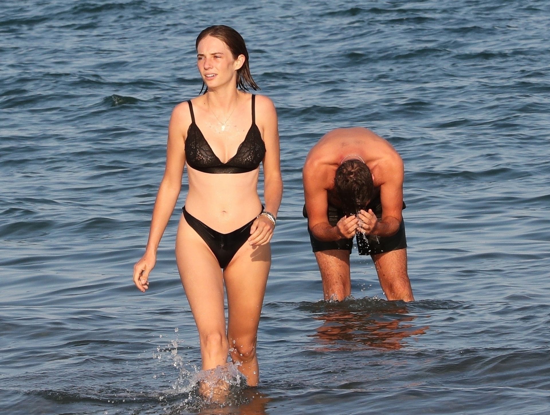 Si elle baise ce gars avec qui elle est entrée dans l'eau, tant mieux pour elle. Il a l'air d'un homme adulte et non d'un petit garçon.