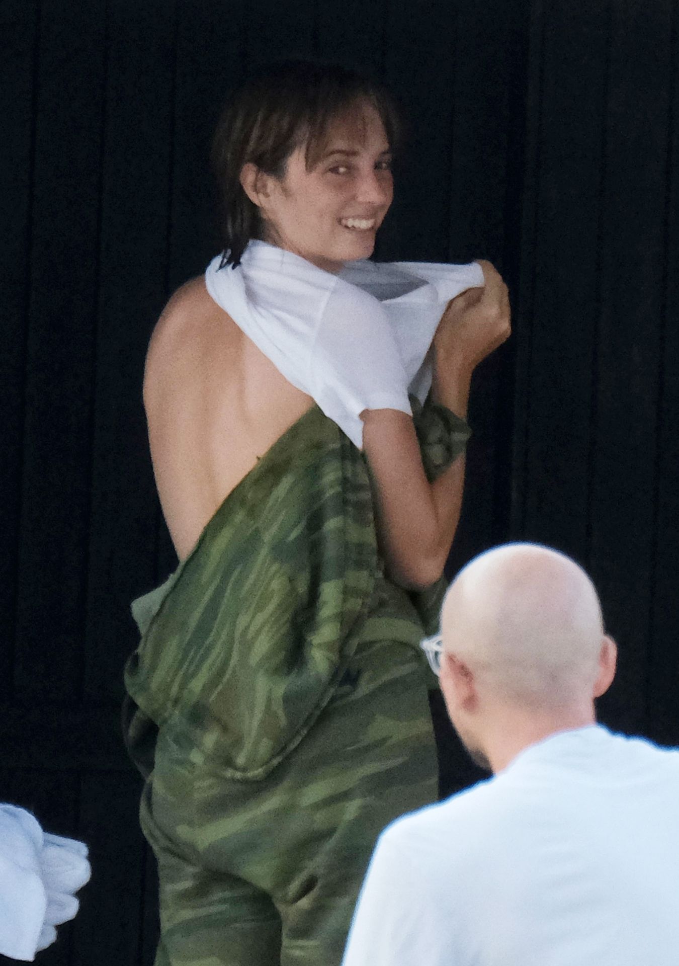 Je prends un téton accidentel n'importe quel jour ! :) J'adore les siens et j'aimerais qu'on puisse en avoir une meilleure vue. Aussi, sur les dernières photos où elle regarde en arrière, on dirait qu'elle a un côté très coquin que j'espère qu'on pourra voir un jour aussi. :) Je lui caresserais le vagin avec les doigts si elle me le demandait. J'utiliserais même deux doigts. Avec les deux mains.