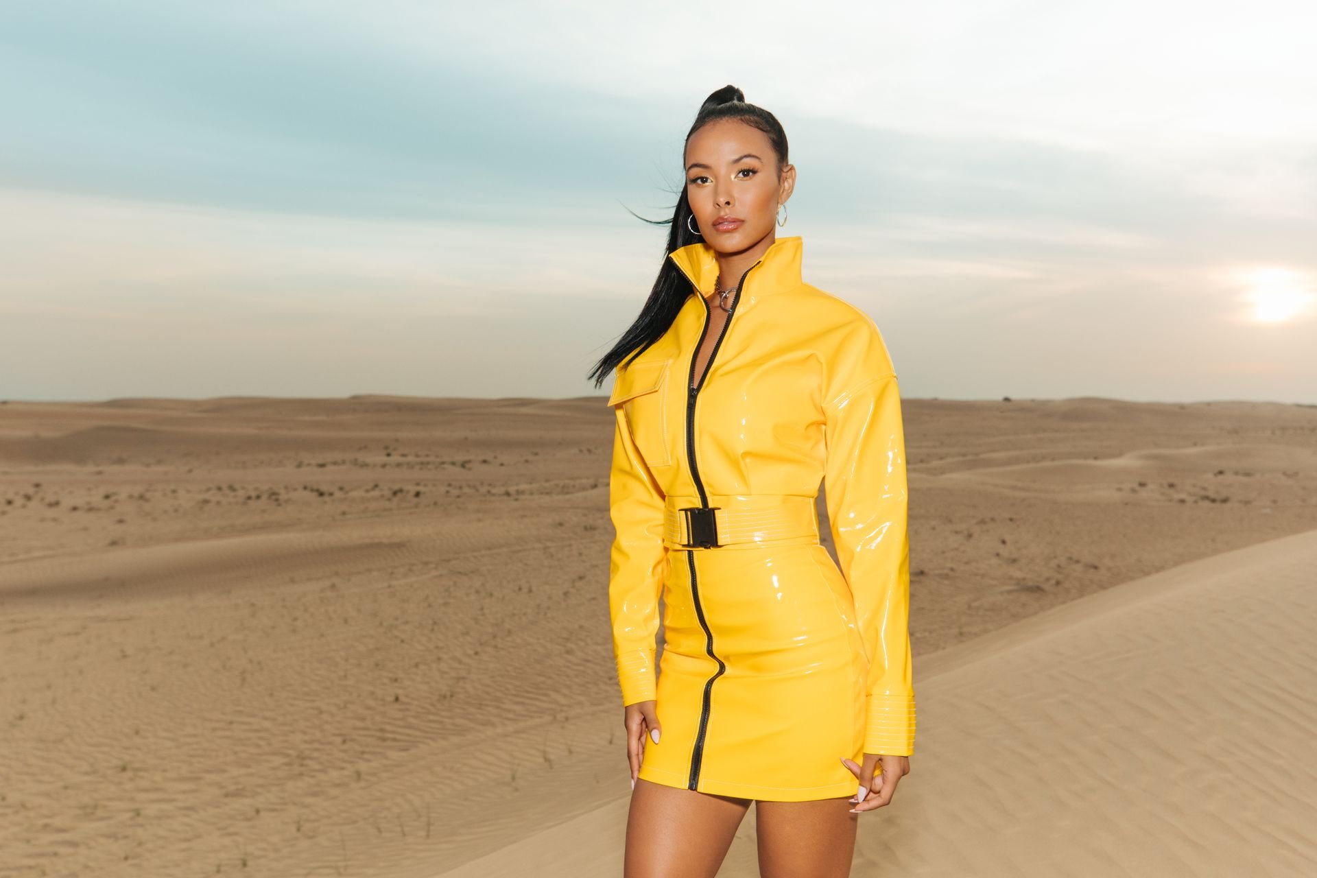 Le mannequin Maya Jama a collaboré avec PrettyLittleThing pour lancer sa deuxième collection de vêtements avec la marque de mode en ligne, comprenant des combinaisons, des robes et des joggings.