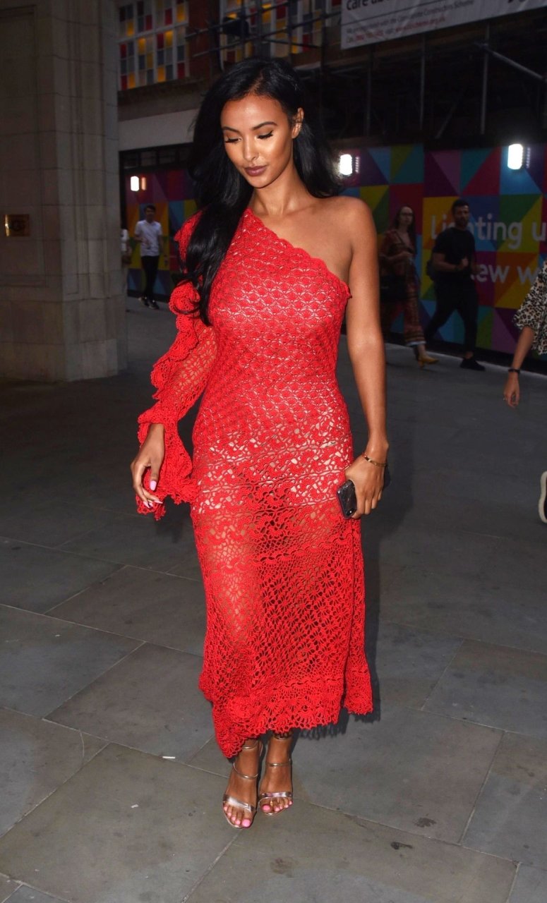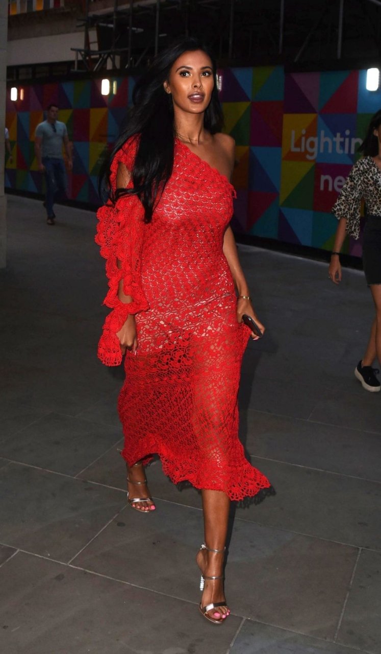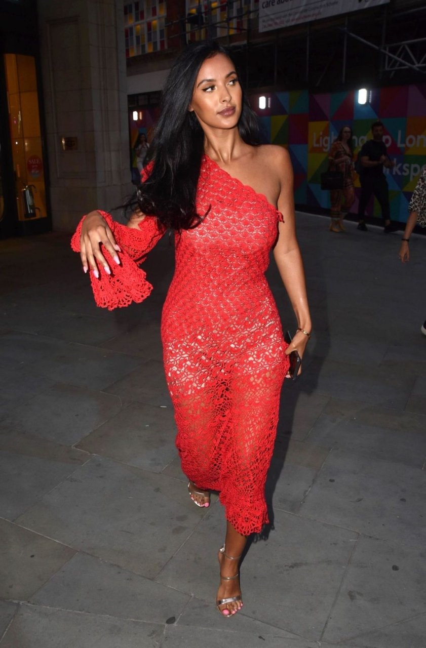 Maya Jama assiste au lancement du magasin de plaisir Magnum au magasin Magnum Pleasure, Regent Street, Londres, 09/10/2019. La belle présentatrice TV a montré sa silhouette en portant une robe rouge moulante.