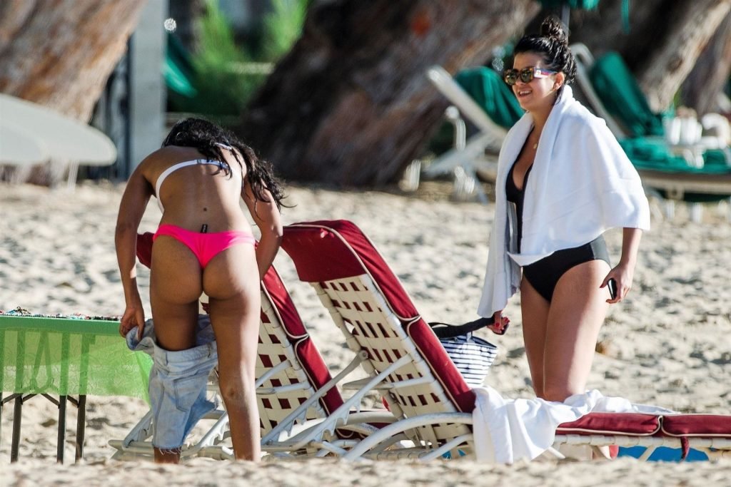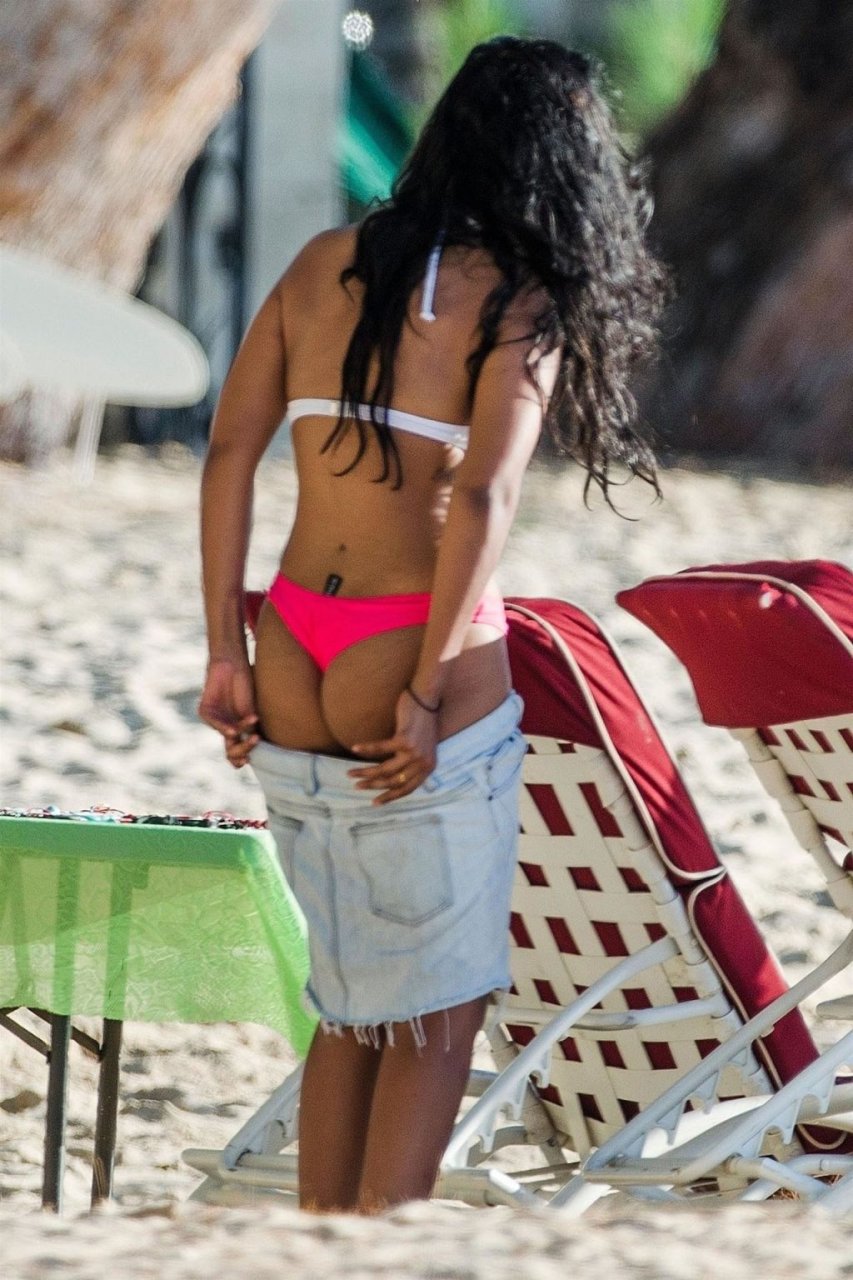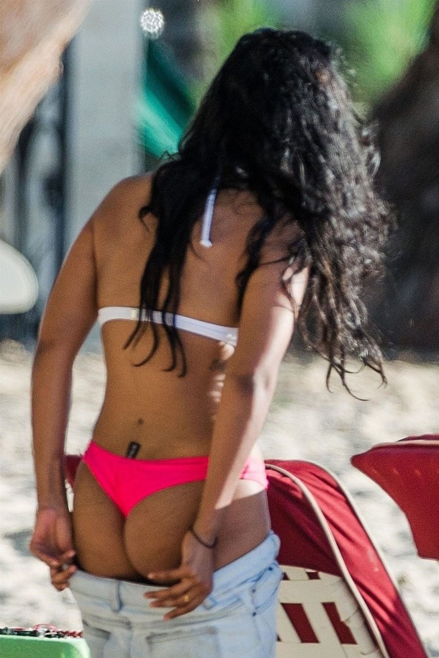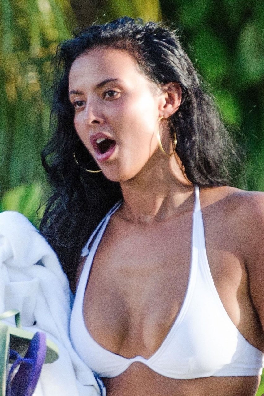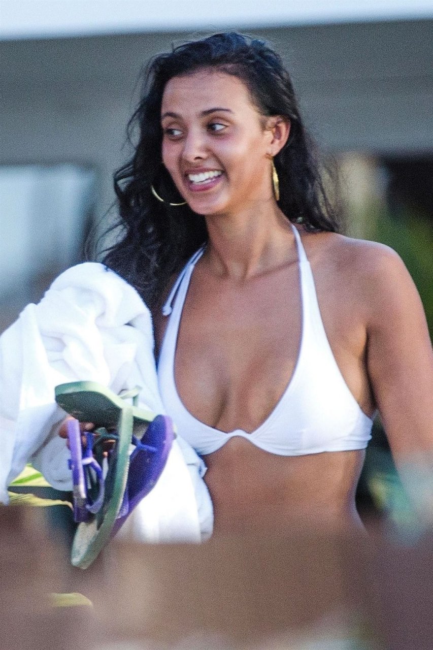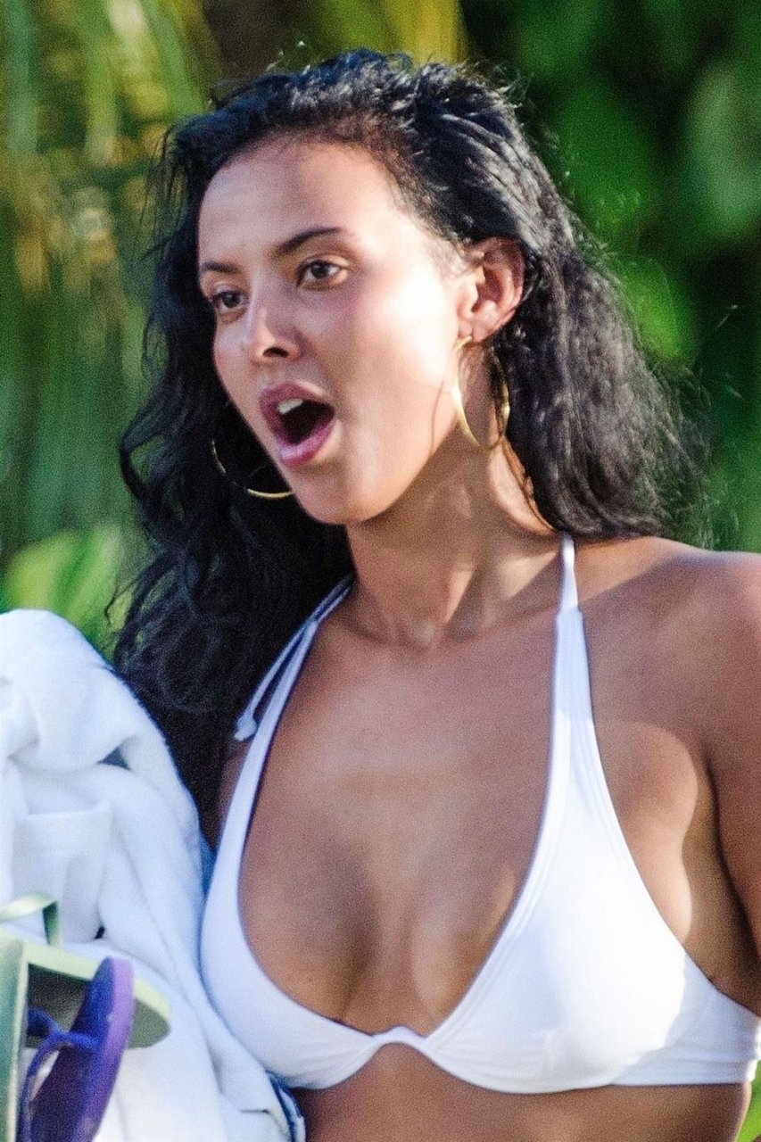 La présentatrice britannique Maya Jama a été vue en train de profiter d’une journée à la plage avec une amie lors de ses vacances à la Barbade, le 12/06/2018. Maya a exhibé son corps tonique dans un haut de bikini blanc et un bas rose.