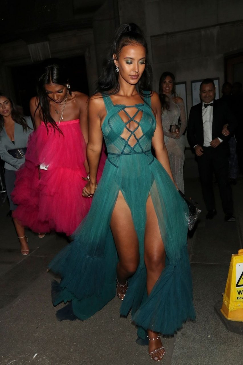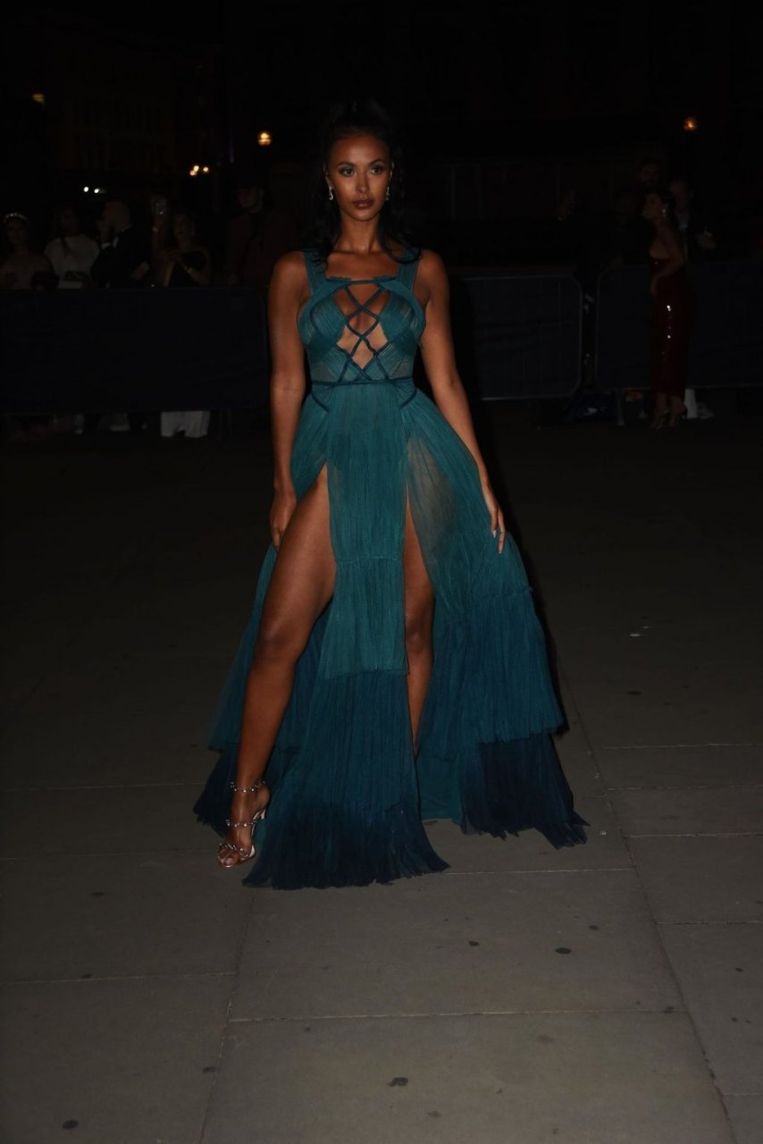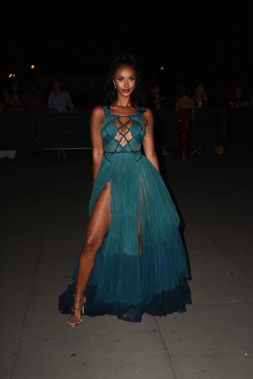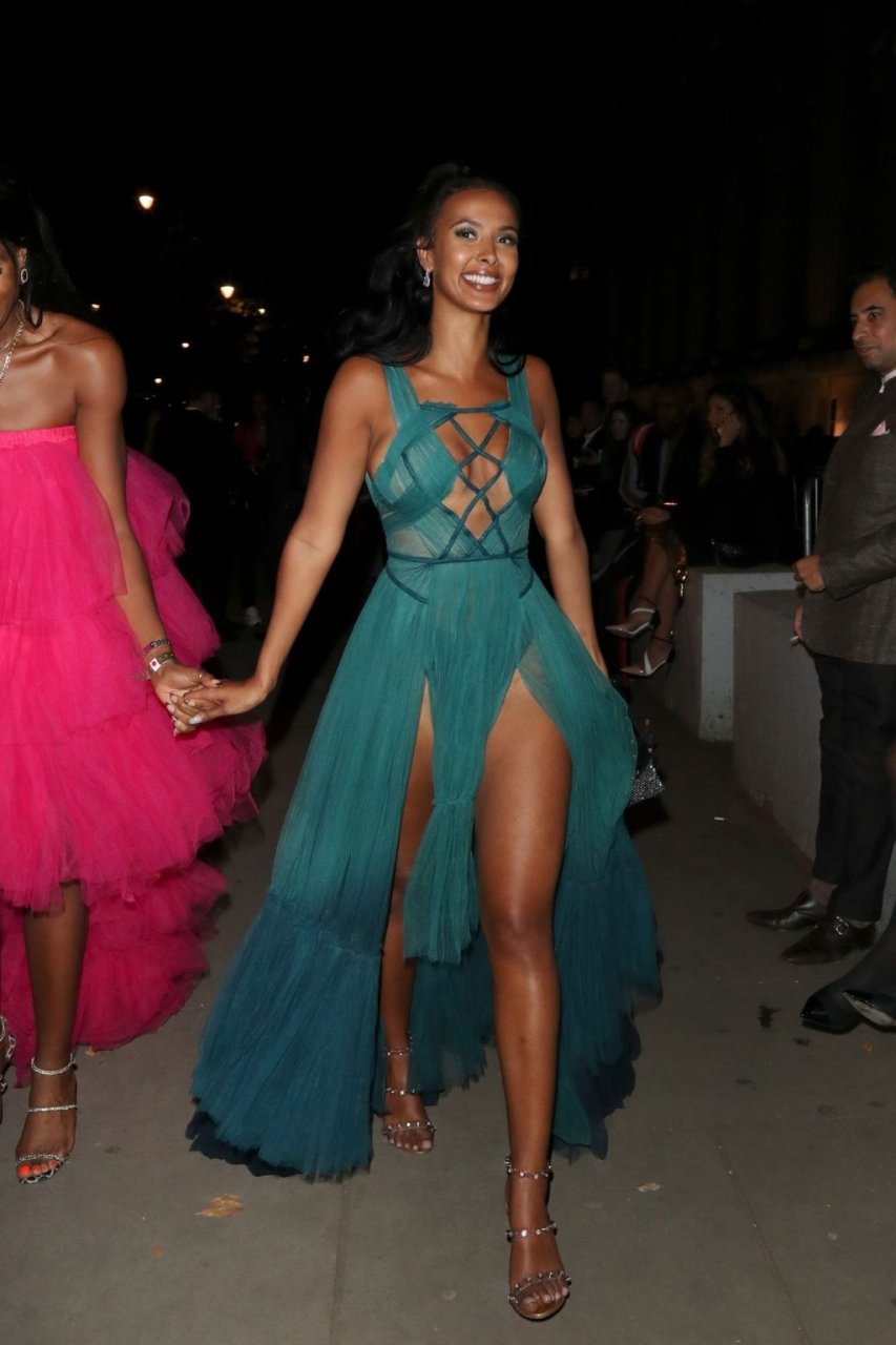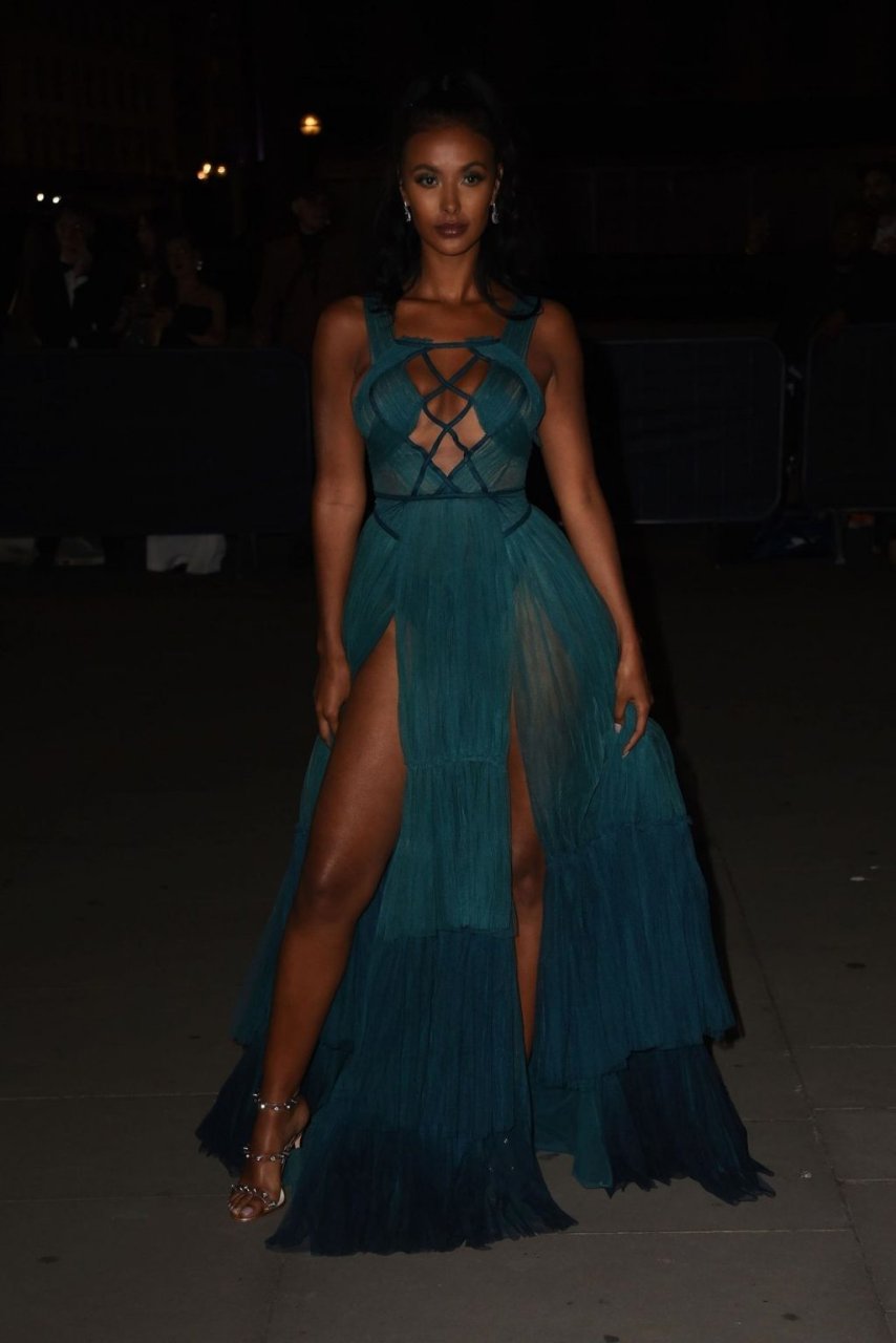 La présentatrice TV sexy Maya Jama assiste à Fashion For Relief au British Museum à Londres, en Angleterre, le 14/09/2019. Maya a exhibé ses jambes magnifiques en posant dans une robe de soirée légère, révélant sa culotte.