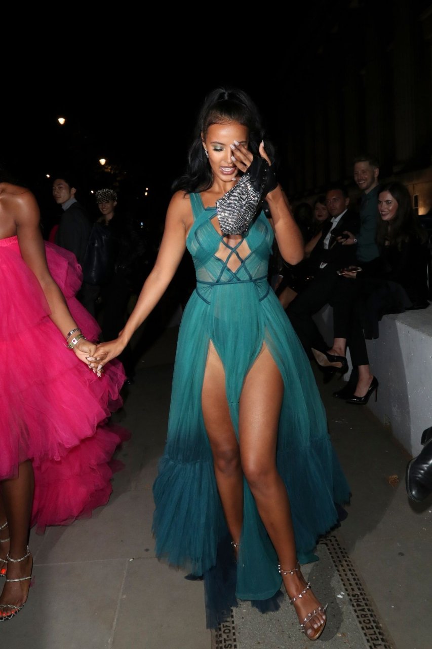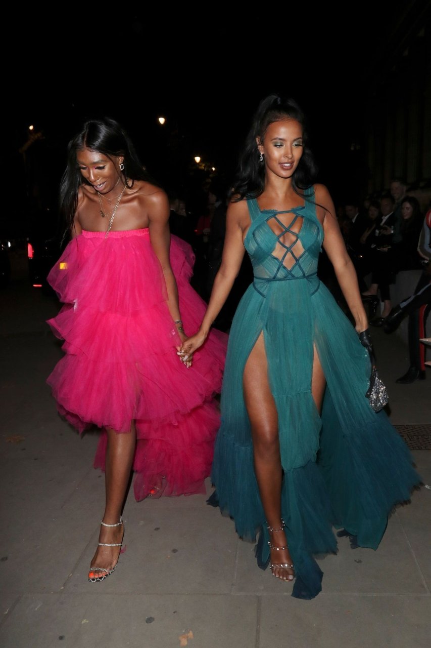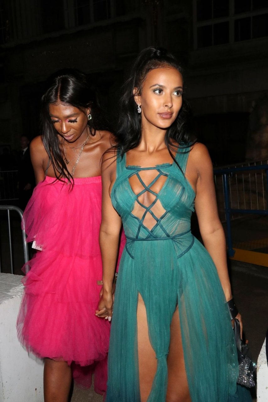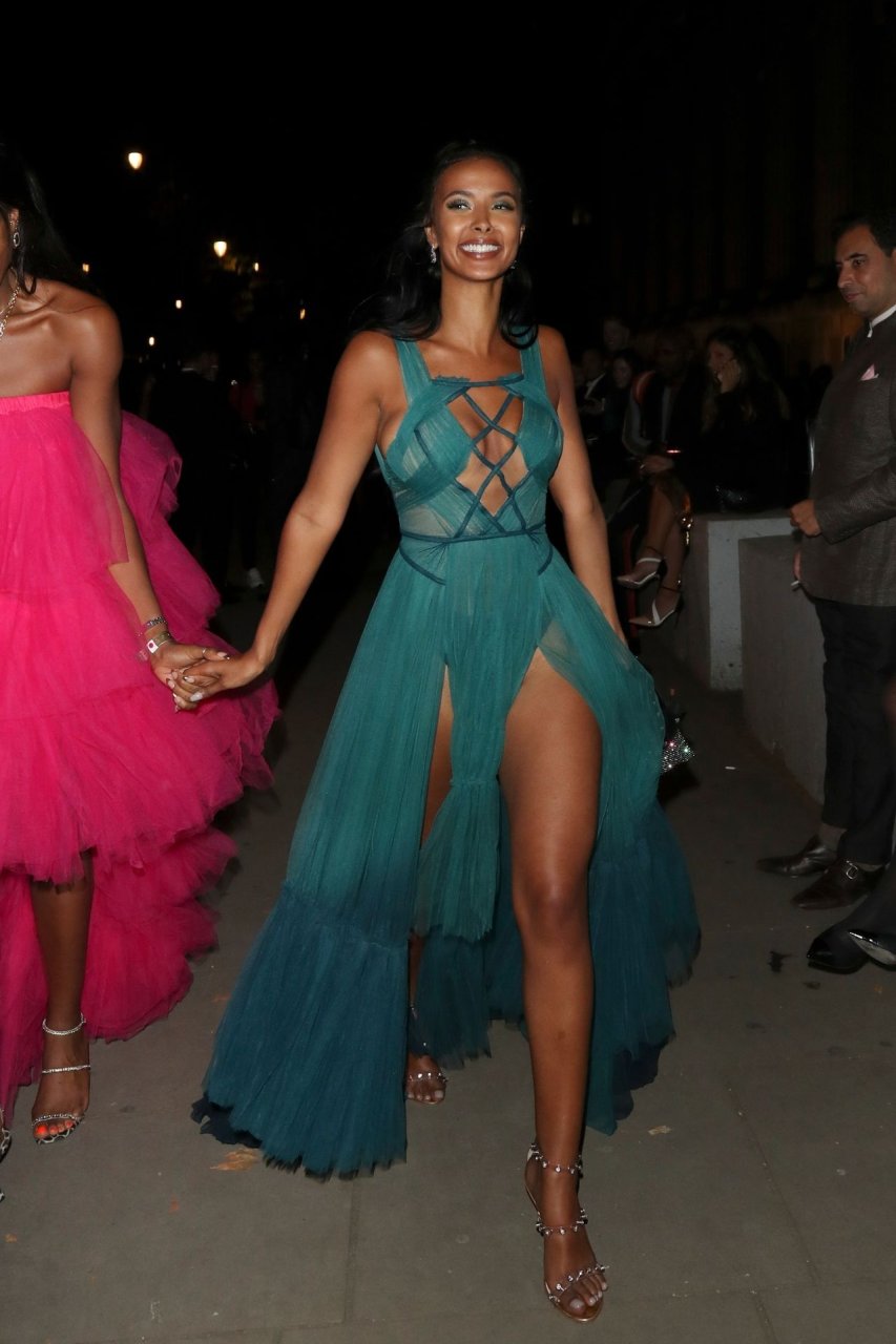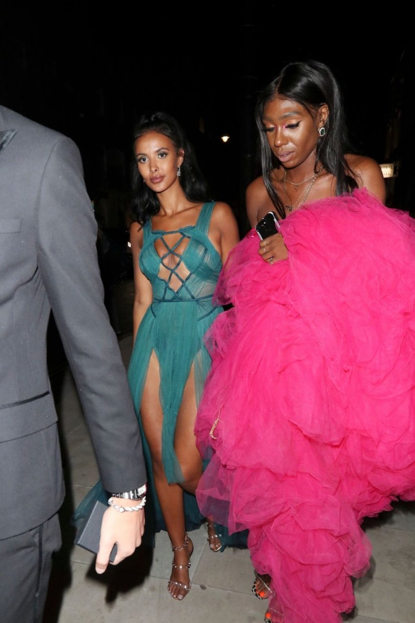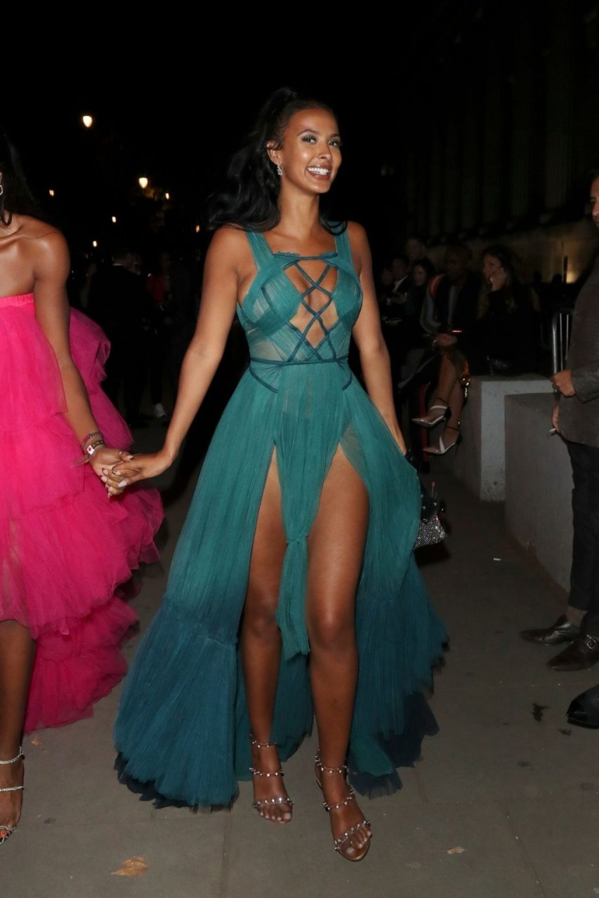 La présentatrice TV sexy Maya Jama assiste à Fashion For Relief au British Museum à Londres, en Angleterre, le 14/09/2019. Maya a exhibé ses jambes magnifiques en posant dans une robe de soirée légère, révélant sa culotte.