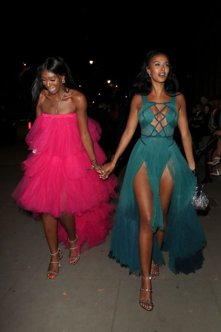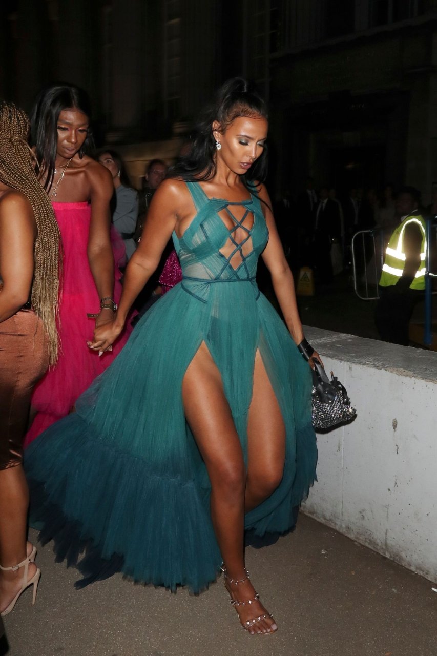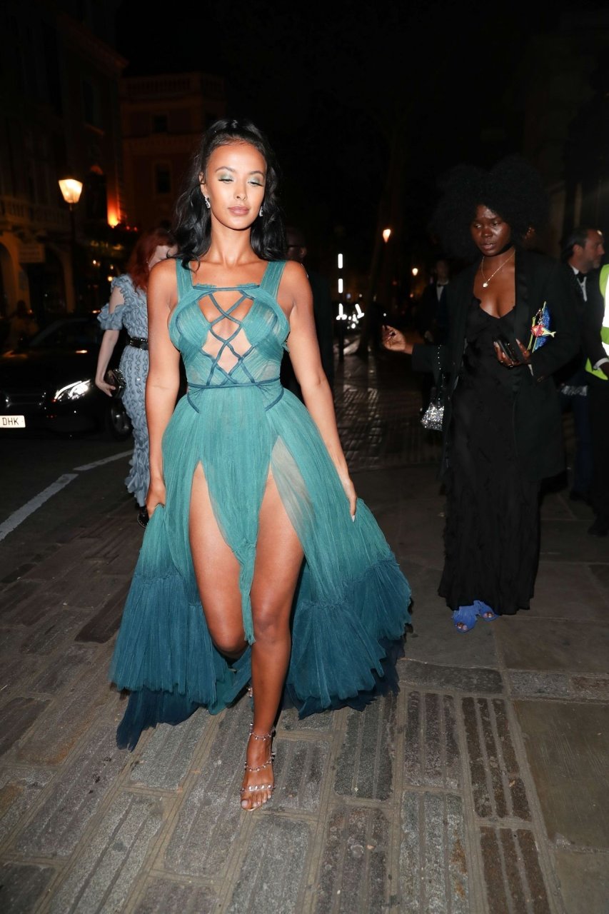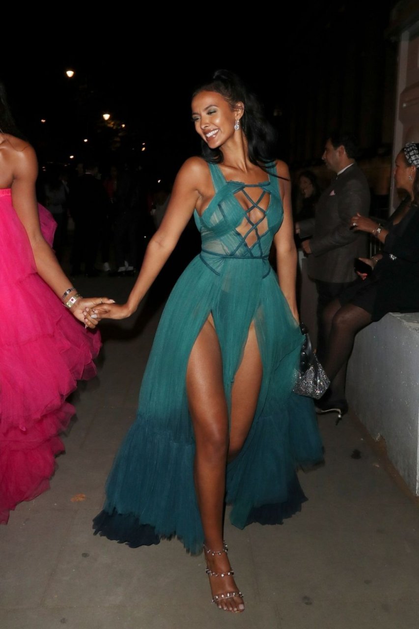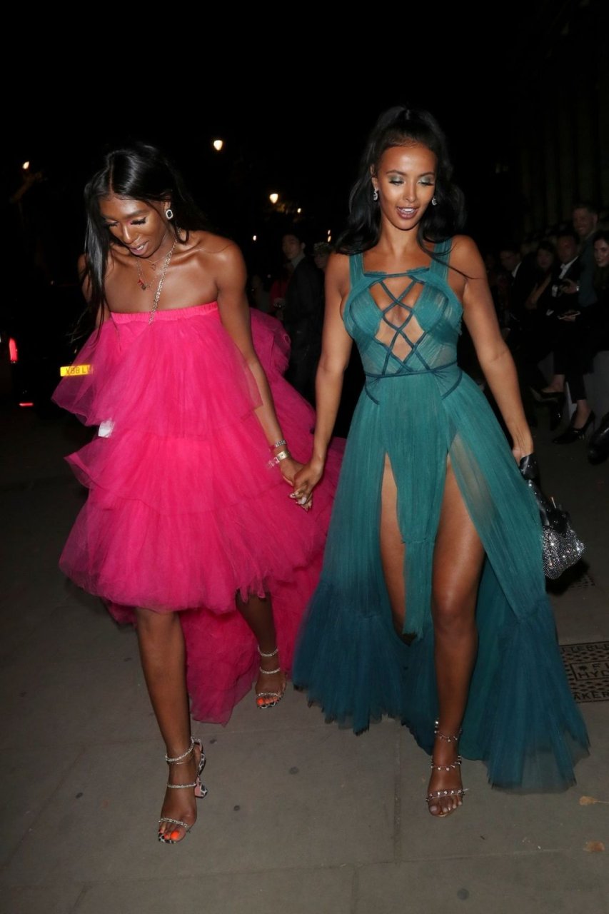 La présentatrice TV sexy Maya Jama assiste à Fashion For Relief au British Museum à Londres, en Angleterre, le 14/09/2019. Maya a exhibé ses jambes magnifiques en posant dans une robe de soirée légère, révélant sa culotte.