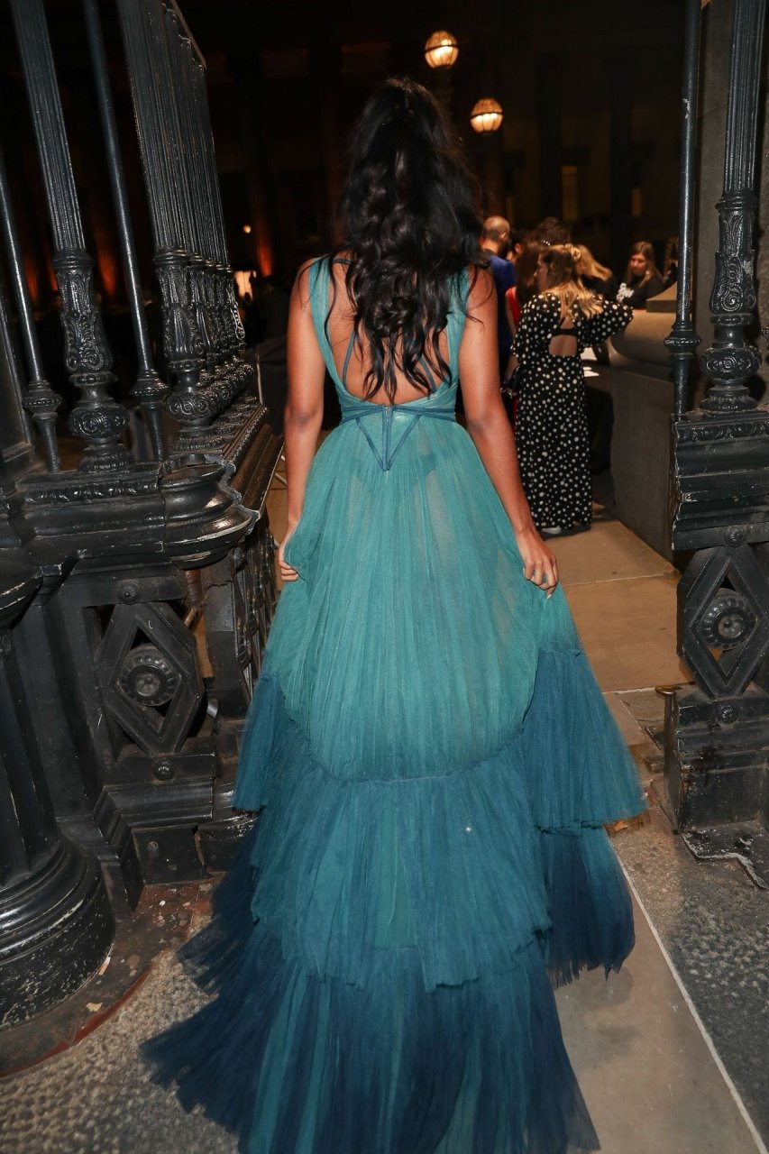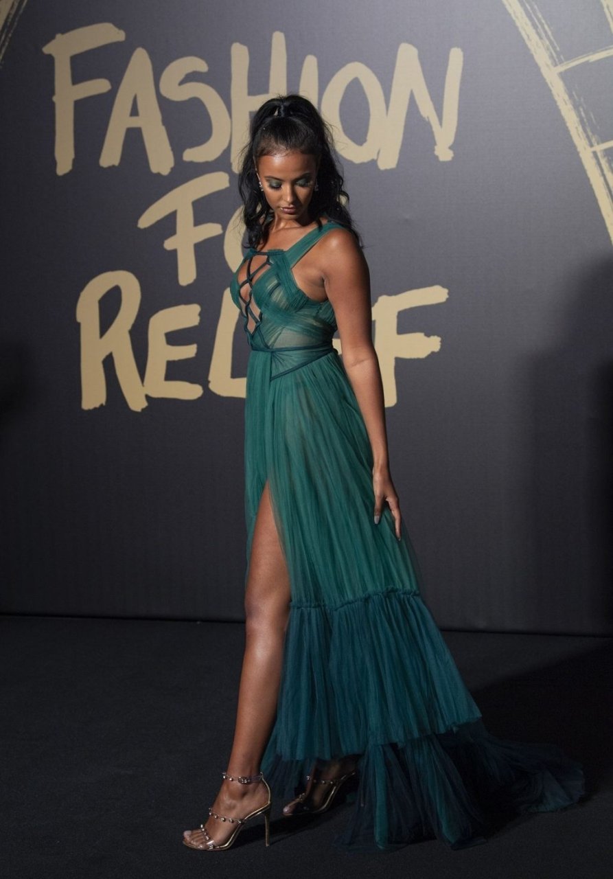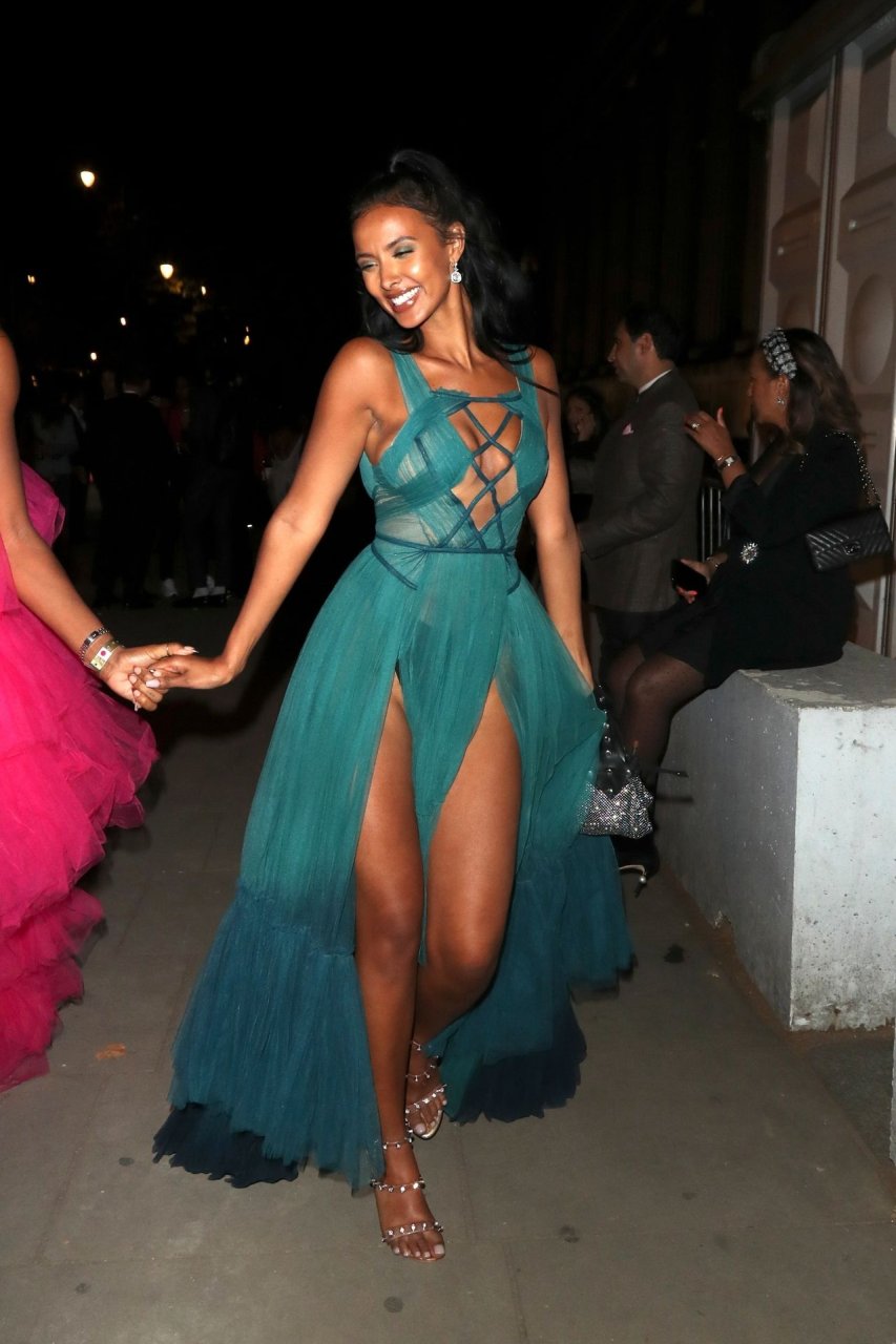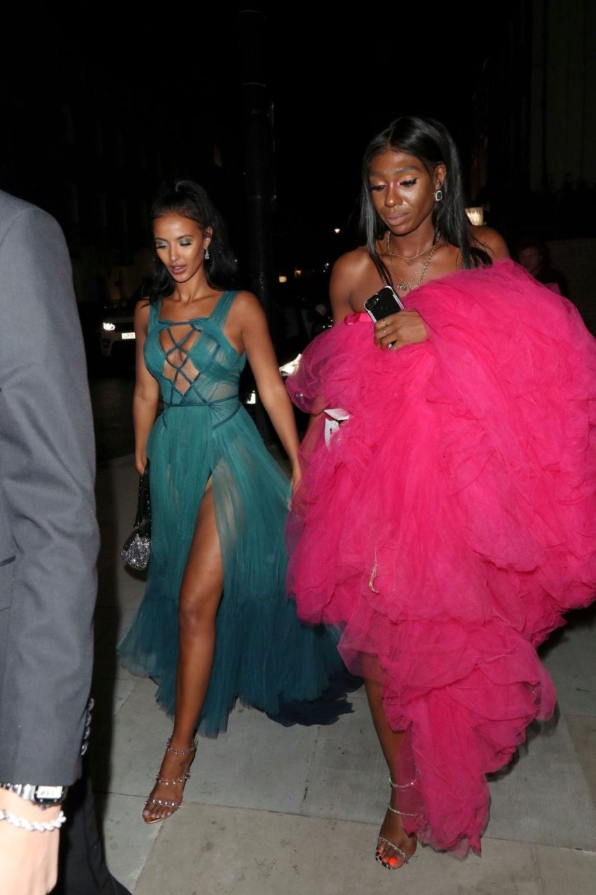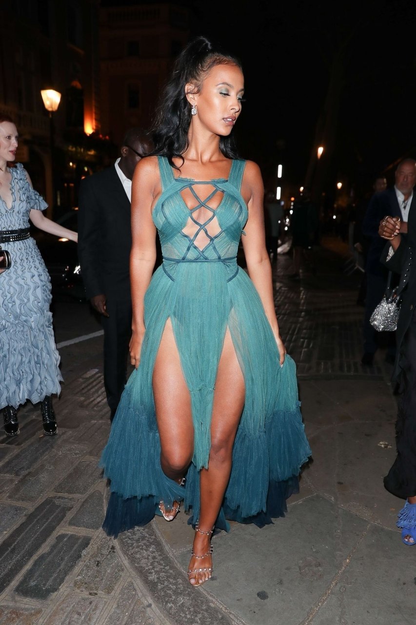 La présentatrice TV sexy Maya Jama assiste à Fashion For Relief au British Museum à Londres, en Angleterre, le 14/09/2019. Maya a exhibé ses jambes magnifiques en posant dans une robe de soirée légère, révélant sa culotte.