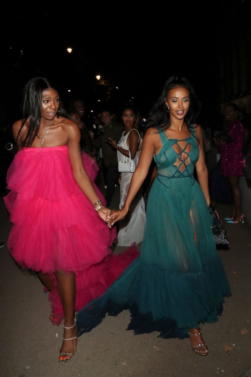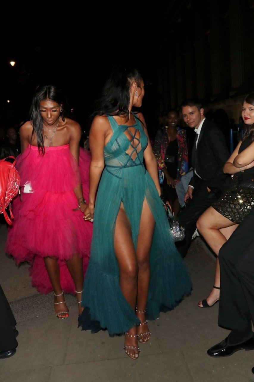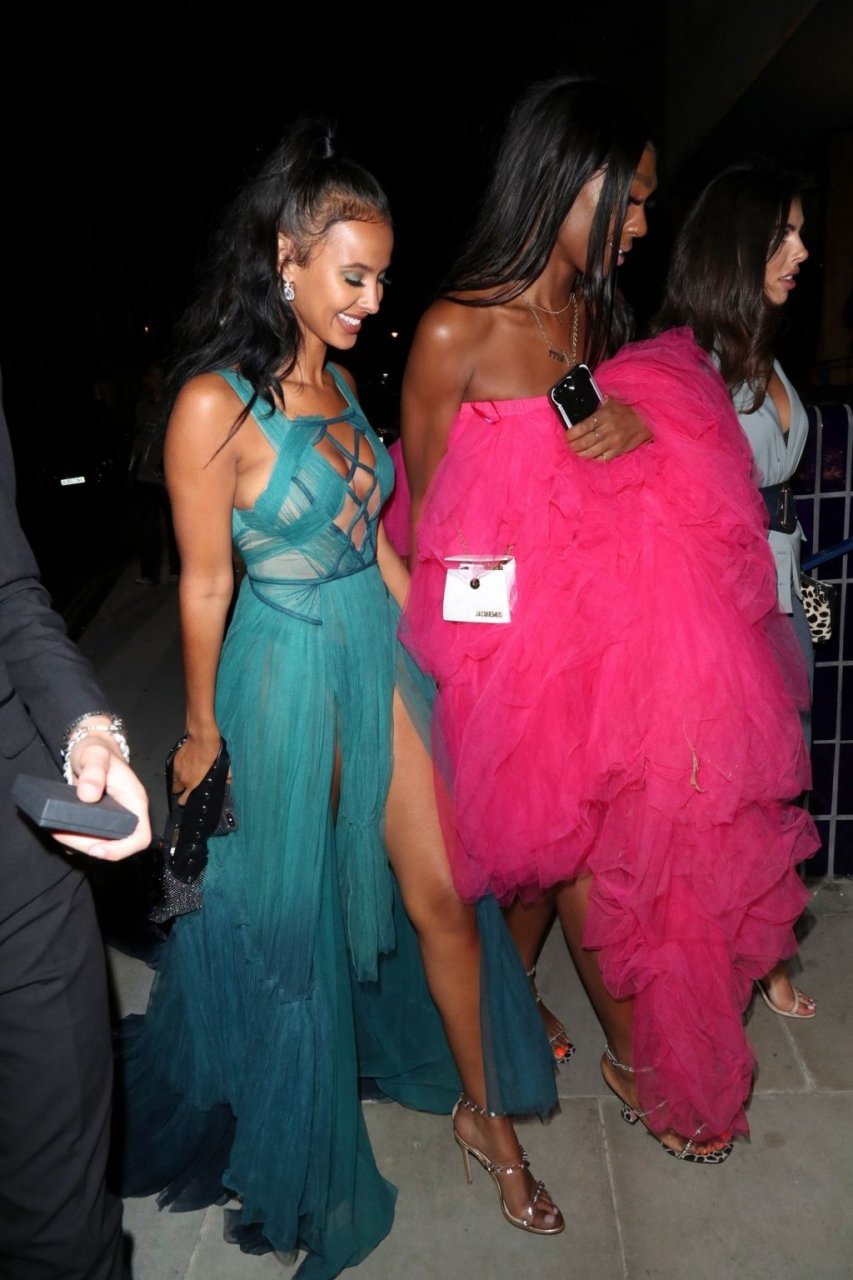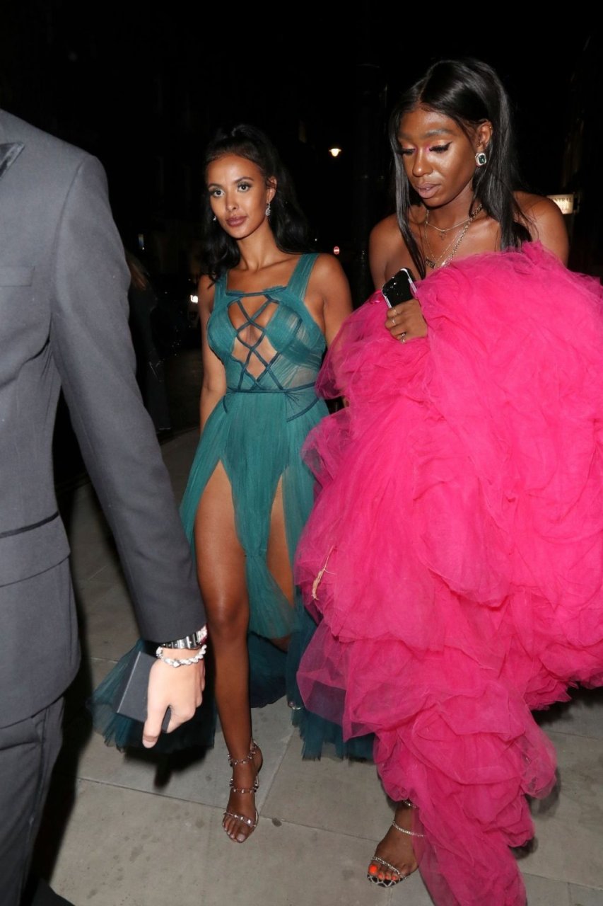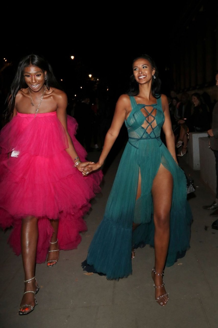 La présentatrice TV sexy Maya Jama assiste à Fashion For Relief au British Museum à Londres, en Angleterre, le 14/09/2019. Maya a exhibé ses jambes magnifiques en posant dans une robe de soirée légère, révélant sa culotte.