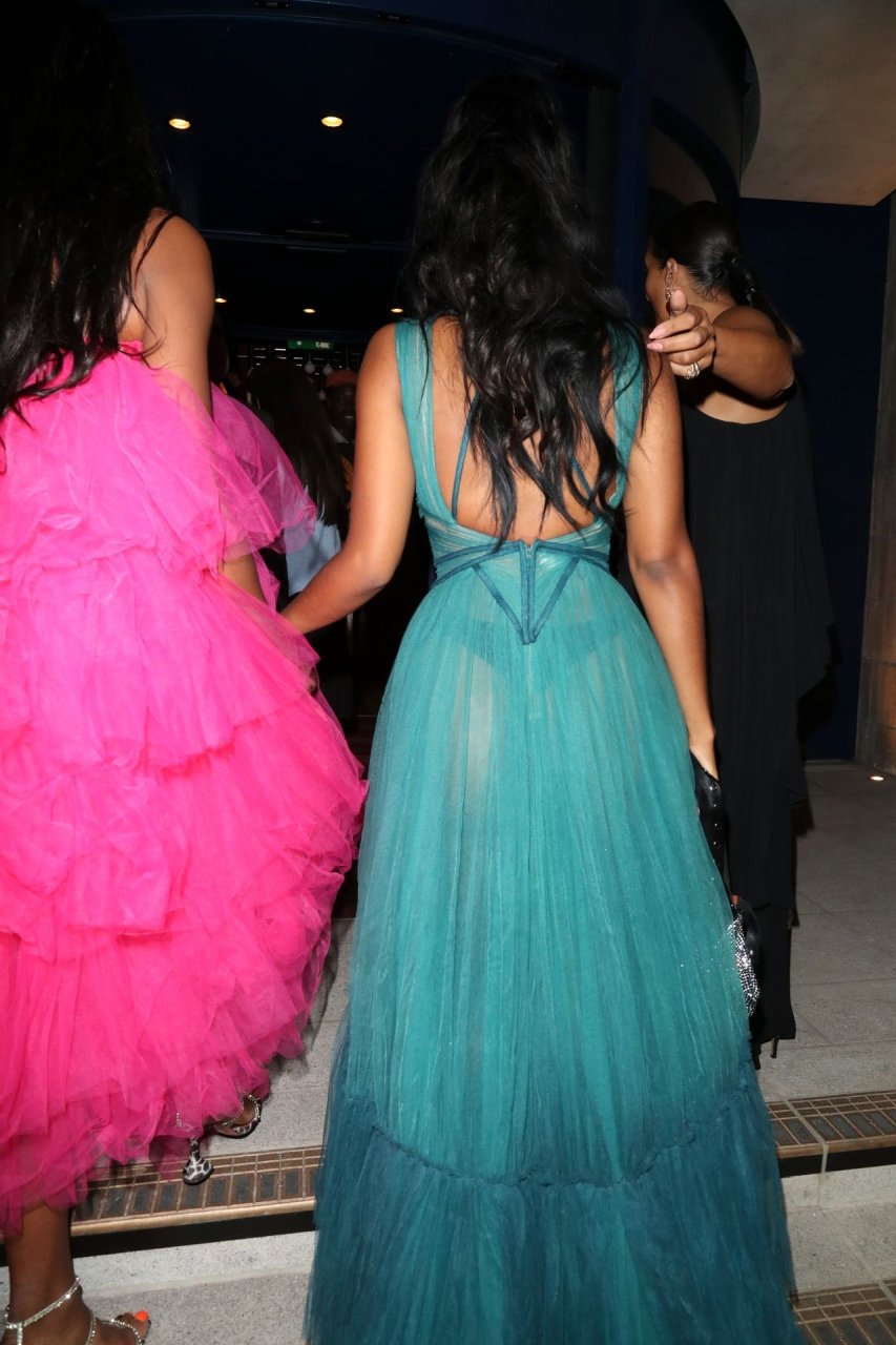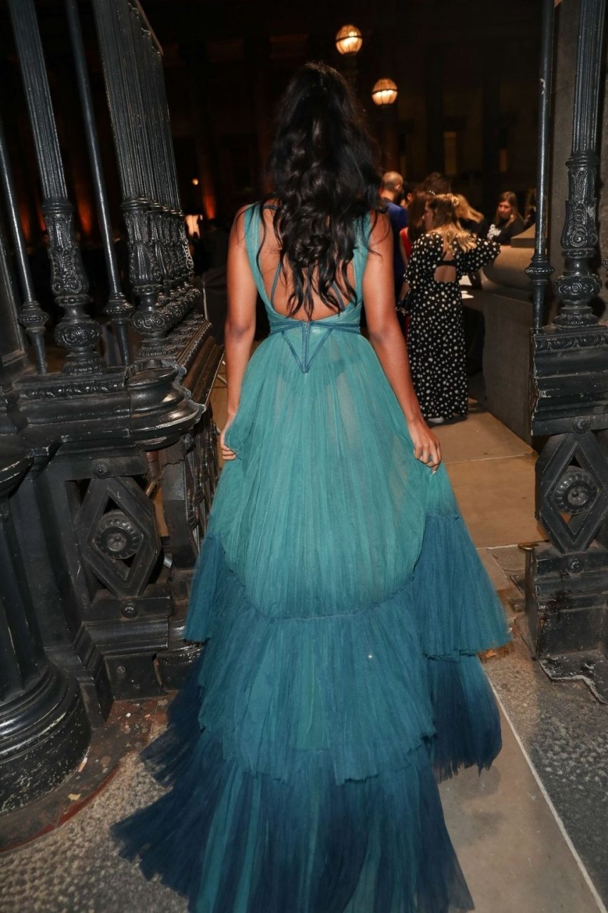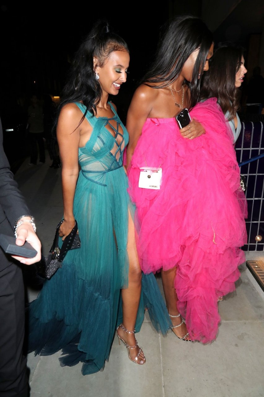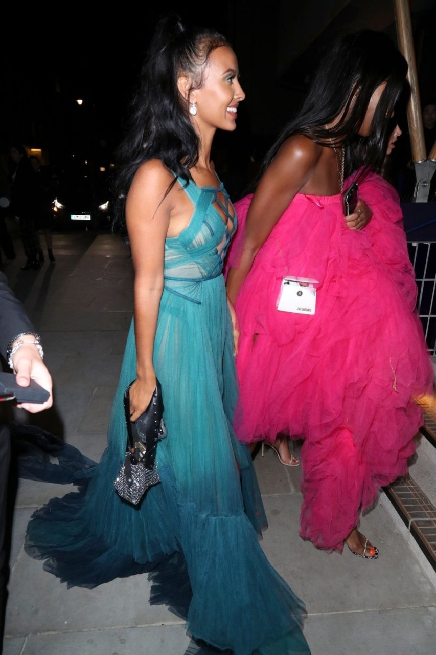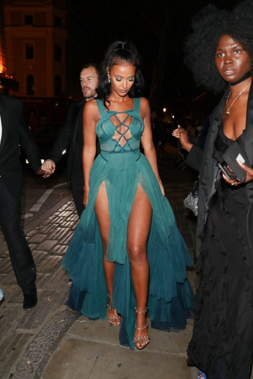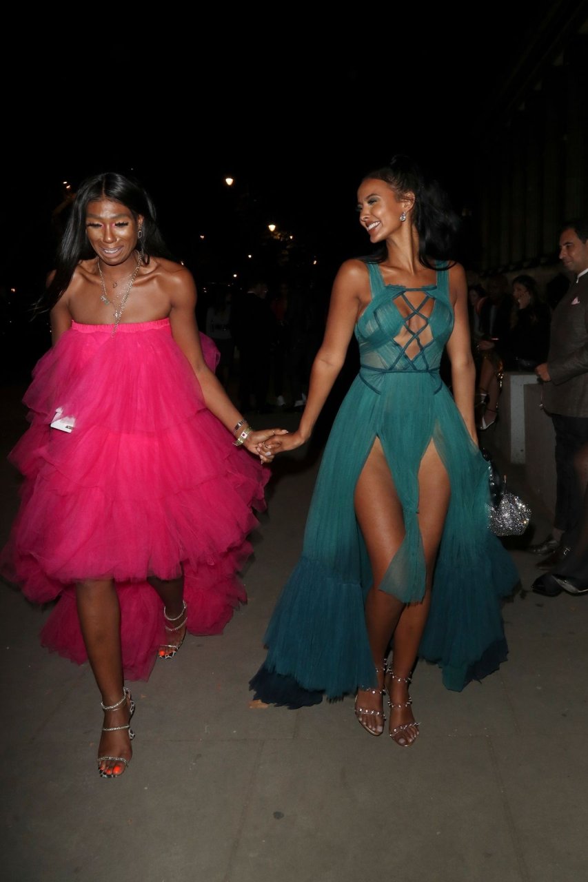 La présentatrice TV sexy Maya Jama assiste à Fashion For Relief au British Museum à Londres, en Angleterre, le 14/09/2019. Maya a exhibé ses jambes magnifiques en posant dans une robe de soirée légère, révélant sa culotte.