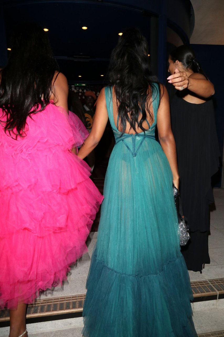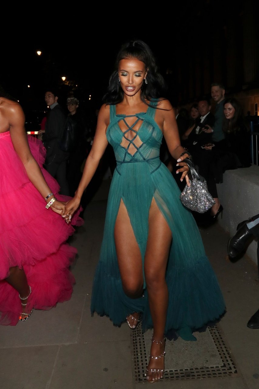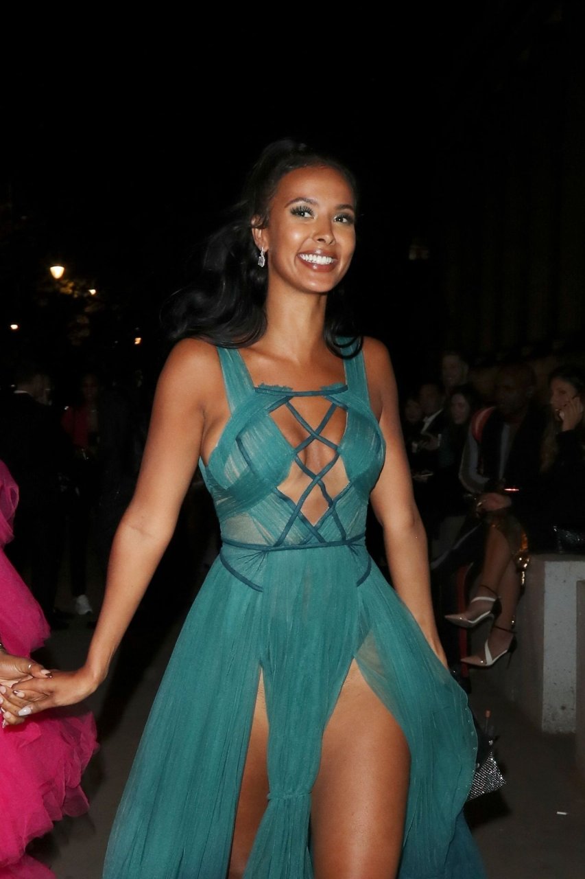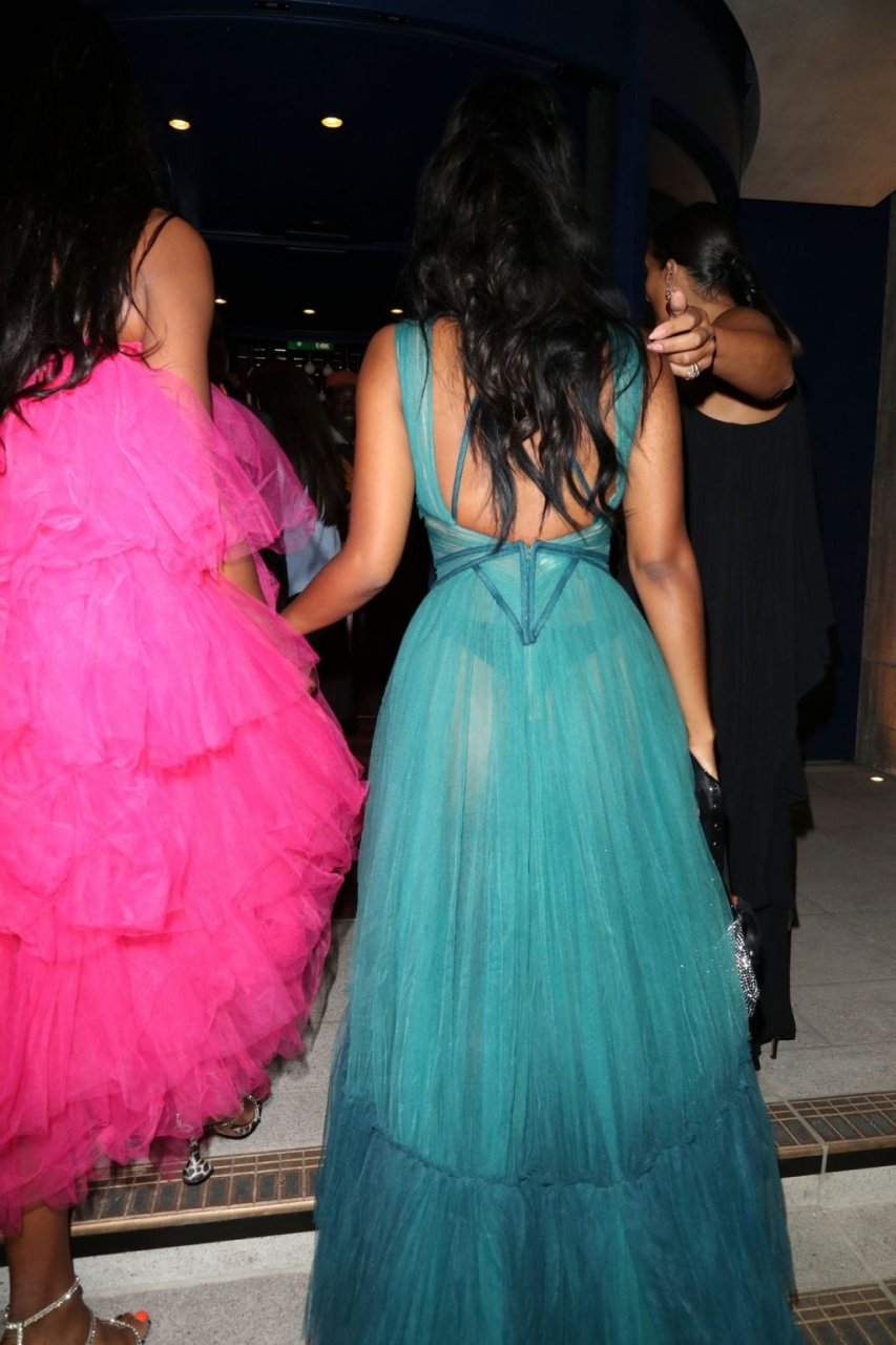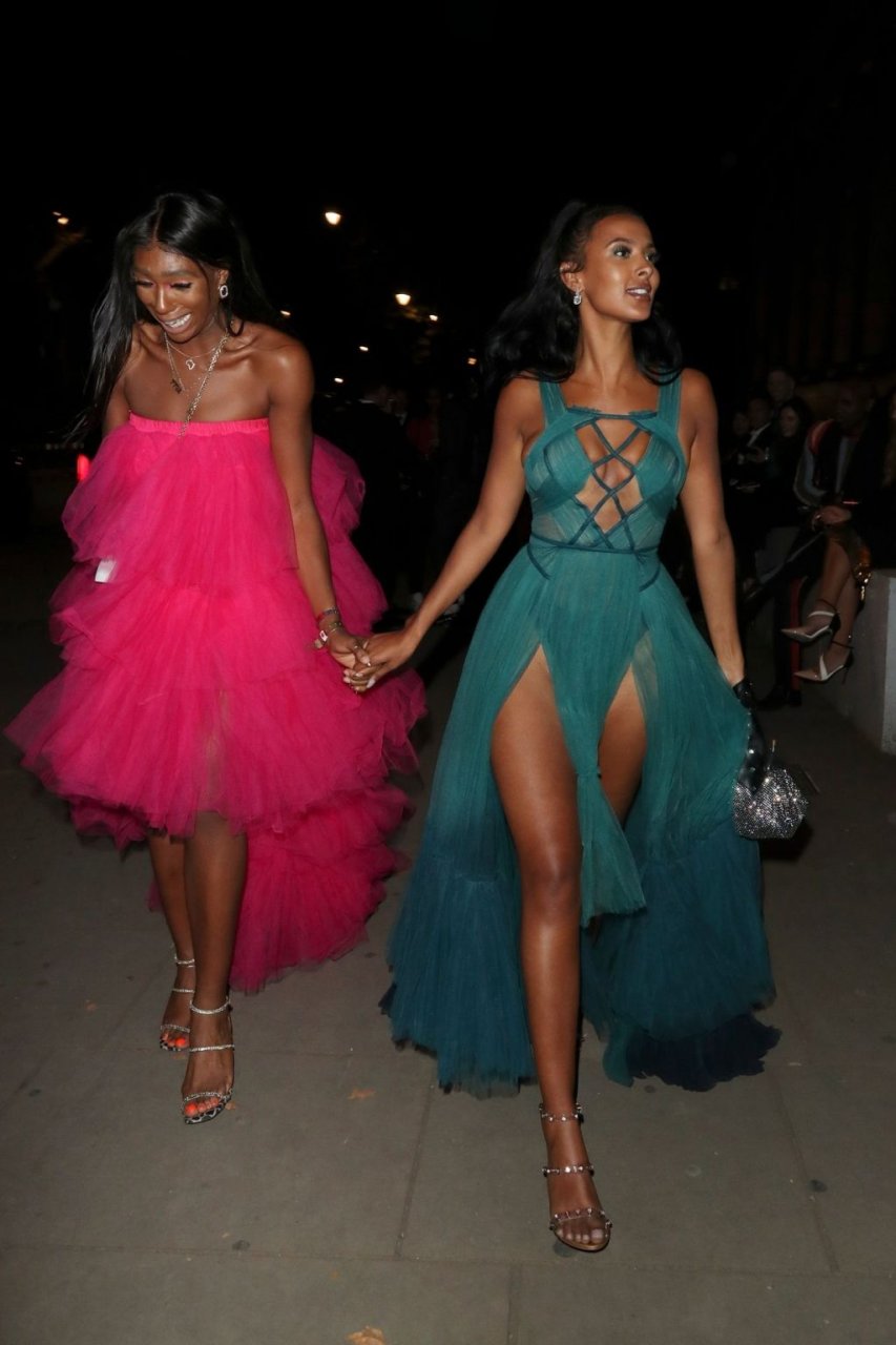 La présentatrice TV sexy Maya Jama assiste à Fashion For Relief au British Museum à Londres, en Angleterre, le 14/09/2019. Maya a exhibé ses jambes magnifiques en posant dans une robe de soirée légère, révélant sa culotte.