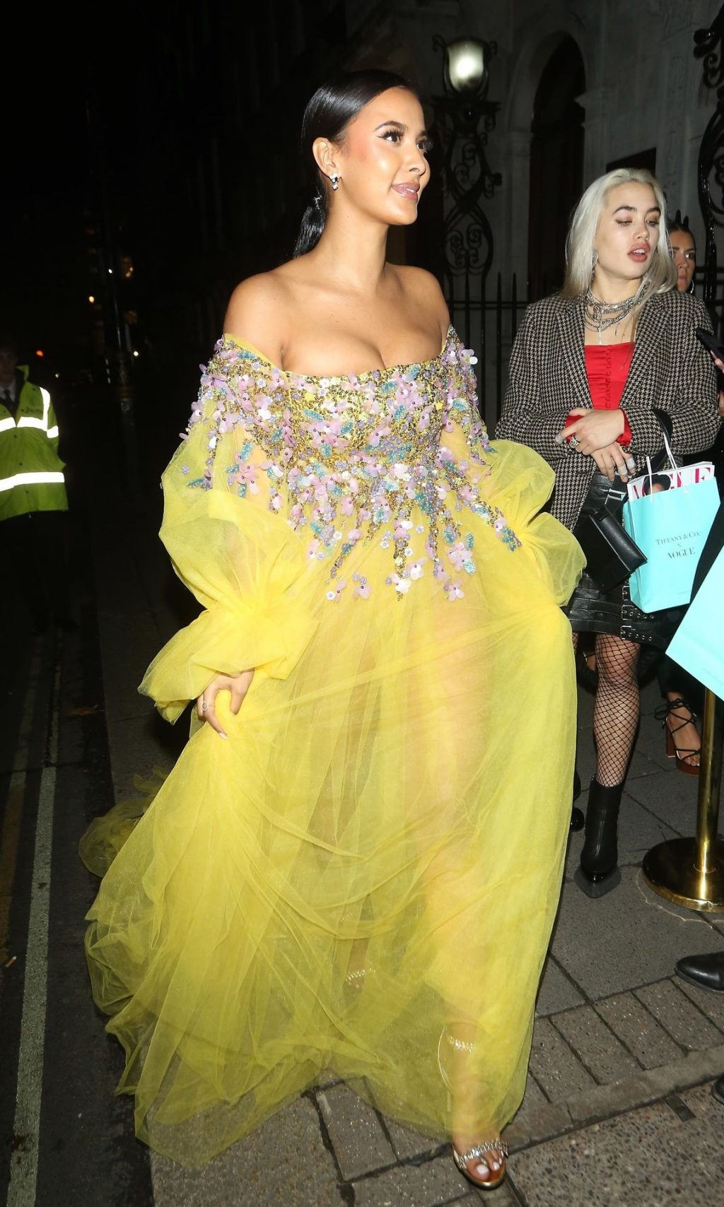 La présentatrice télé voluptueuse Maya Jama a été photographiée lors de la soirée British Vogue et Tiffany & Co. Celebrate Fashion and Film à Annabel’s à Londres, le 02/02/2020.