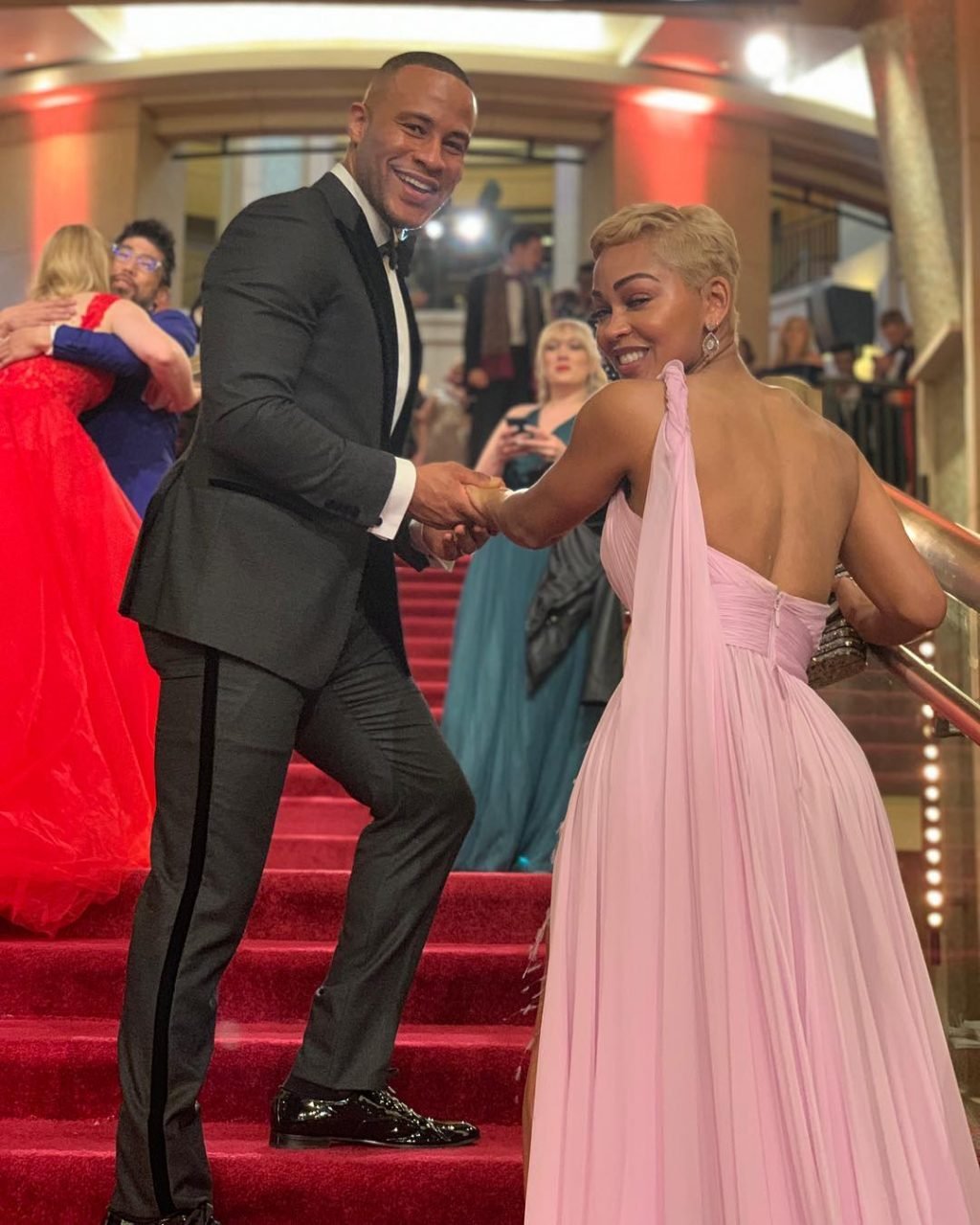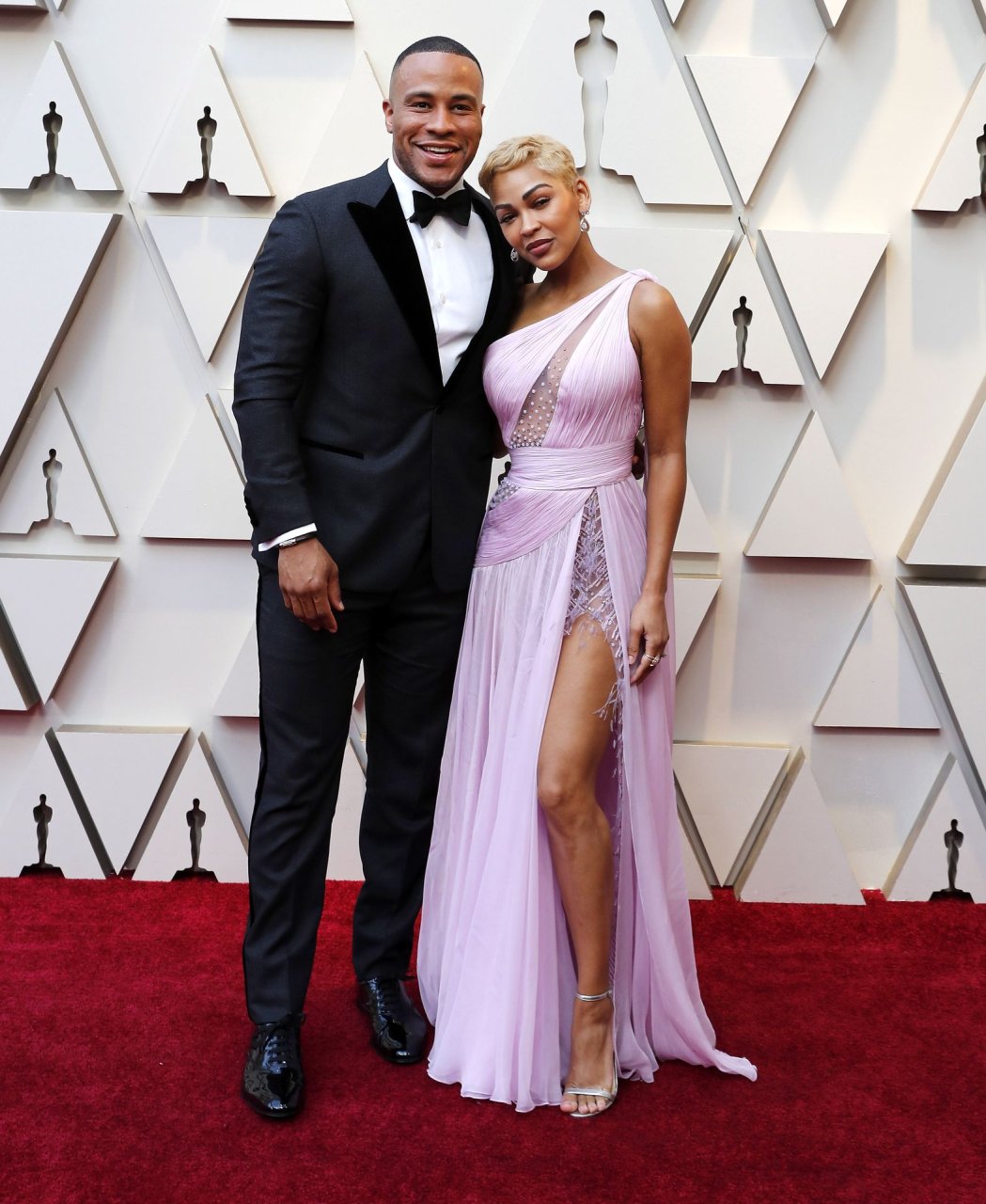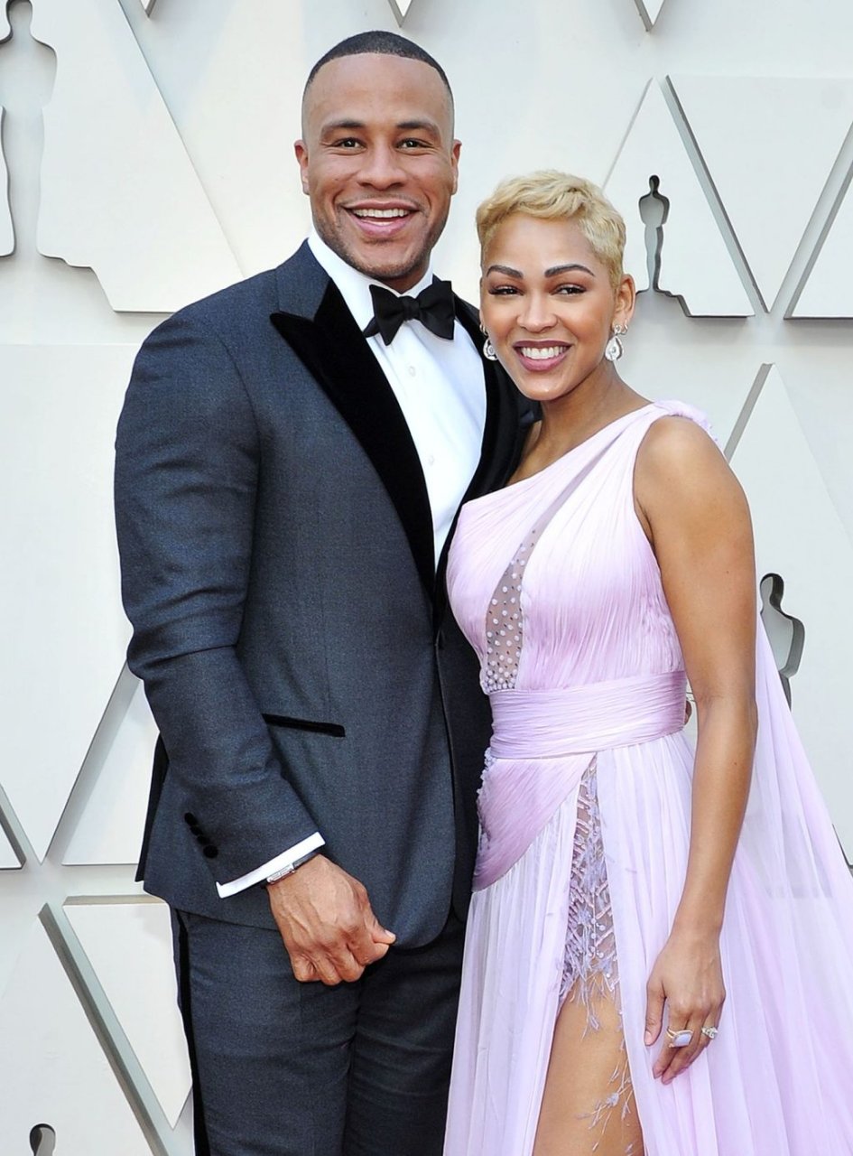 Actrice américaine, la star du Fappening Meagan Good (38 ans) arrive en robe rose sans soutien-gorge à la 91e cérémonie annuelle des Oscars au Dolby Theatre à Hollywood, Californie, 24/02/2019.
