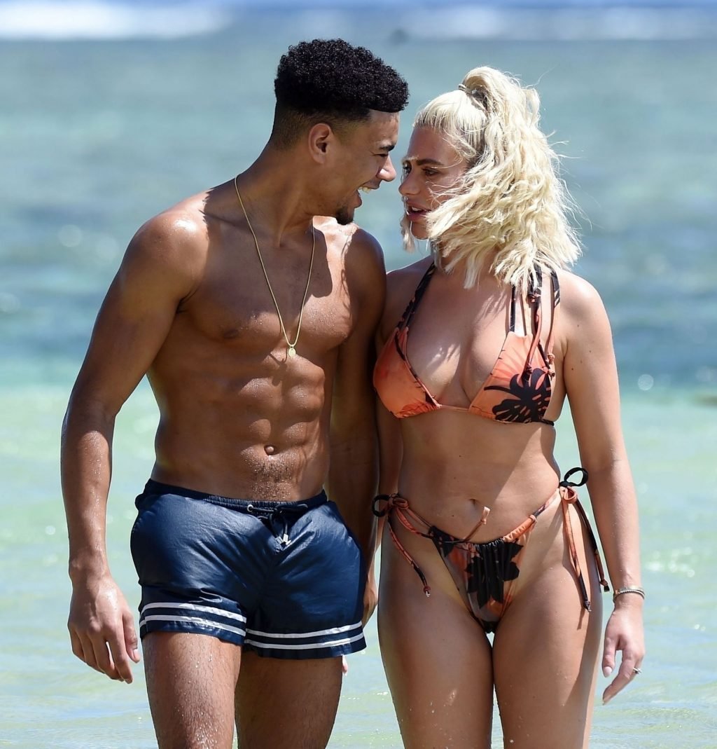 Malgré quelques ruptures romantiques parmi les candidats de la série Love Island 2018, le couple amoureux Megan Barton Hanson et Wes Nelson est toujours aussi fort, affichant une démonstration osée d’affection lors de vacances romantiques baignées de soleil à Maurice, le 12/12/2018.
