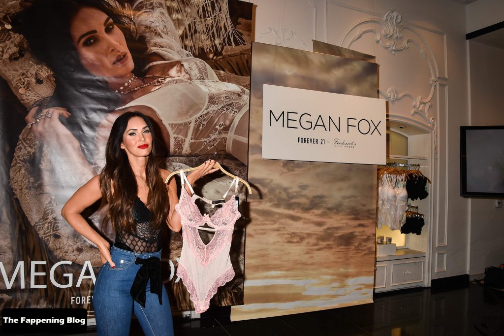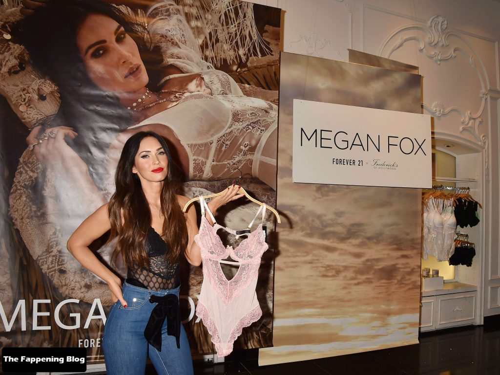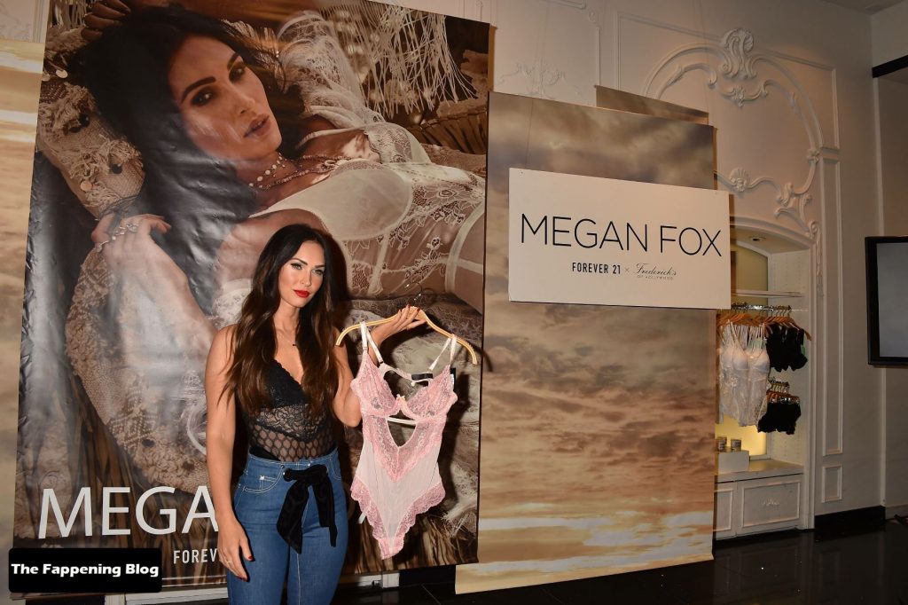 La star du Fappening et actrice Megan Fox montre sa silhouette sexy, présentant la collection de lingerie F21xFredericks, 23/03/2018.