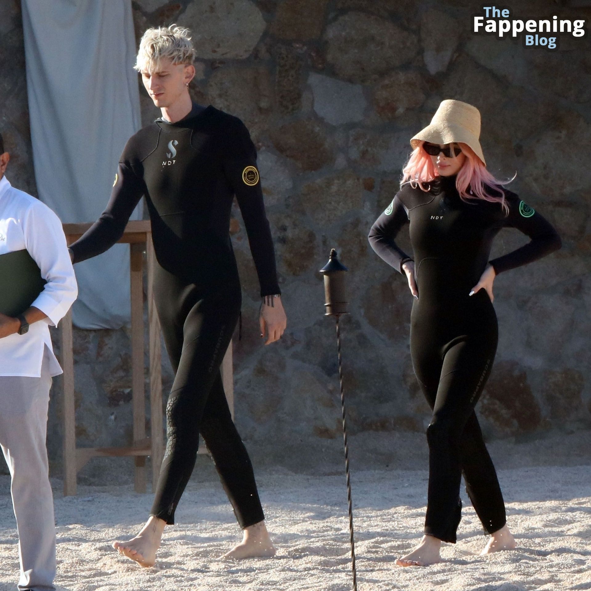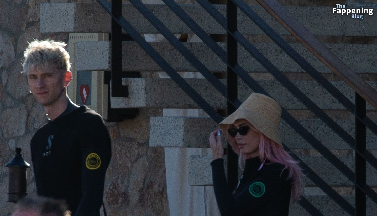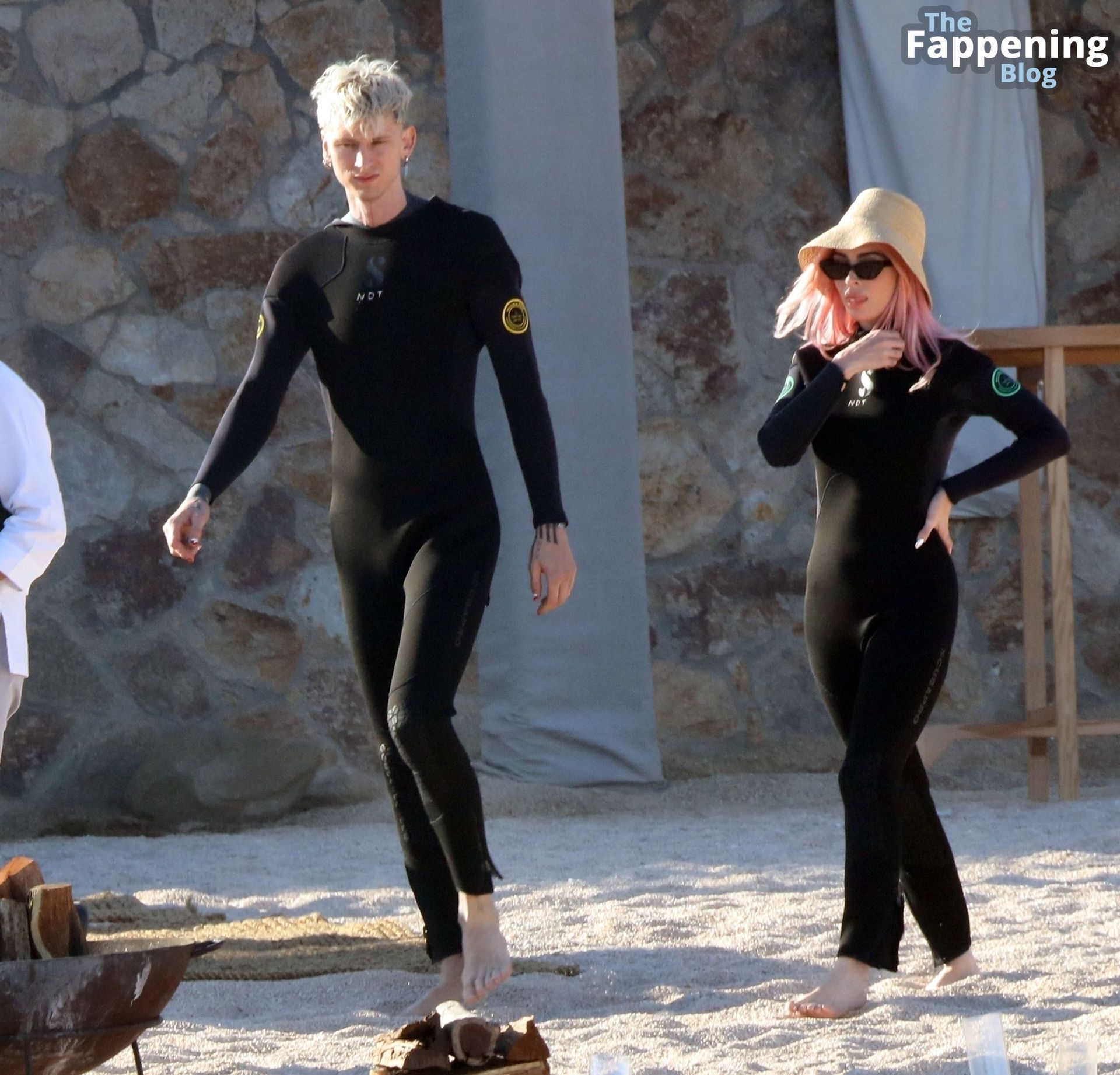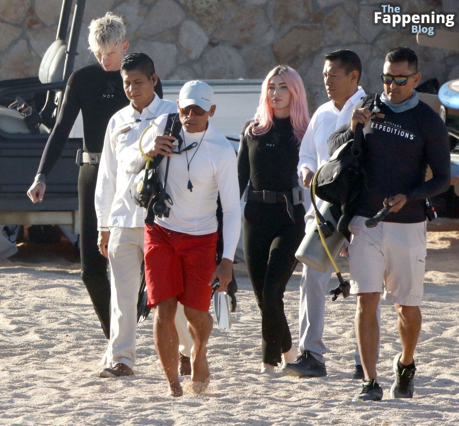 Megan a assorti la couleur rose de ses nouveaux cheveux à son bikini qu’elle portait sous son équipement de snorkeling ! MGK, ironiquement, a couvert ses nouveaux tatouages noirs sur le torse avec une combinaison intégrale pendant qu’il participait aux activités du couple. Sur certains clichés, MGK montre ses tatouages habituels dans le dos après avoir ouvert sa combinaison.