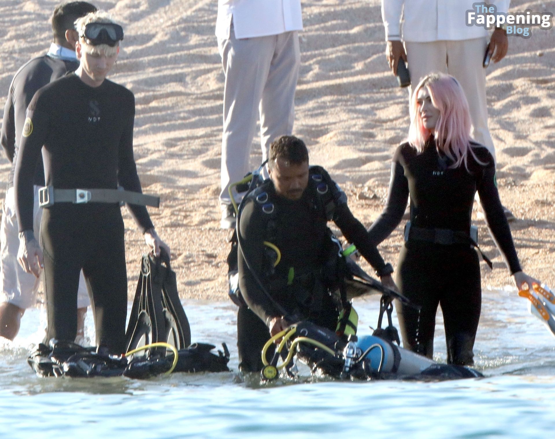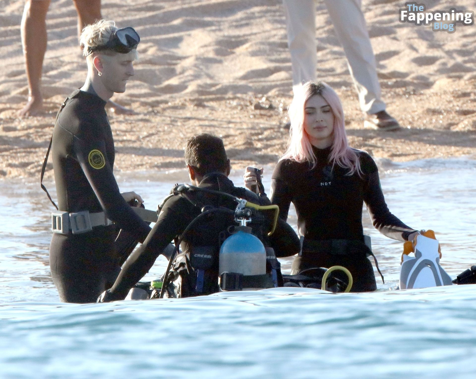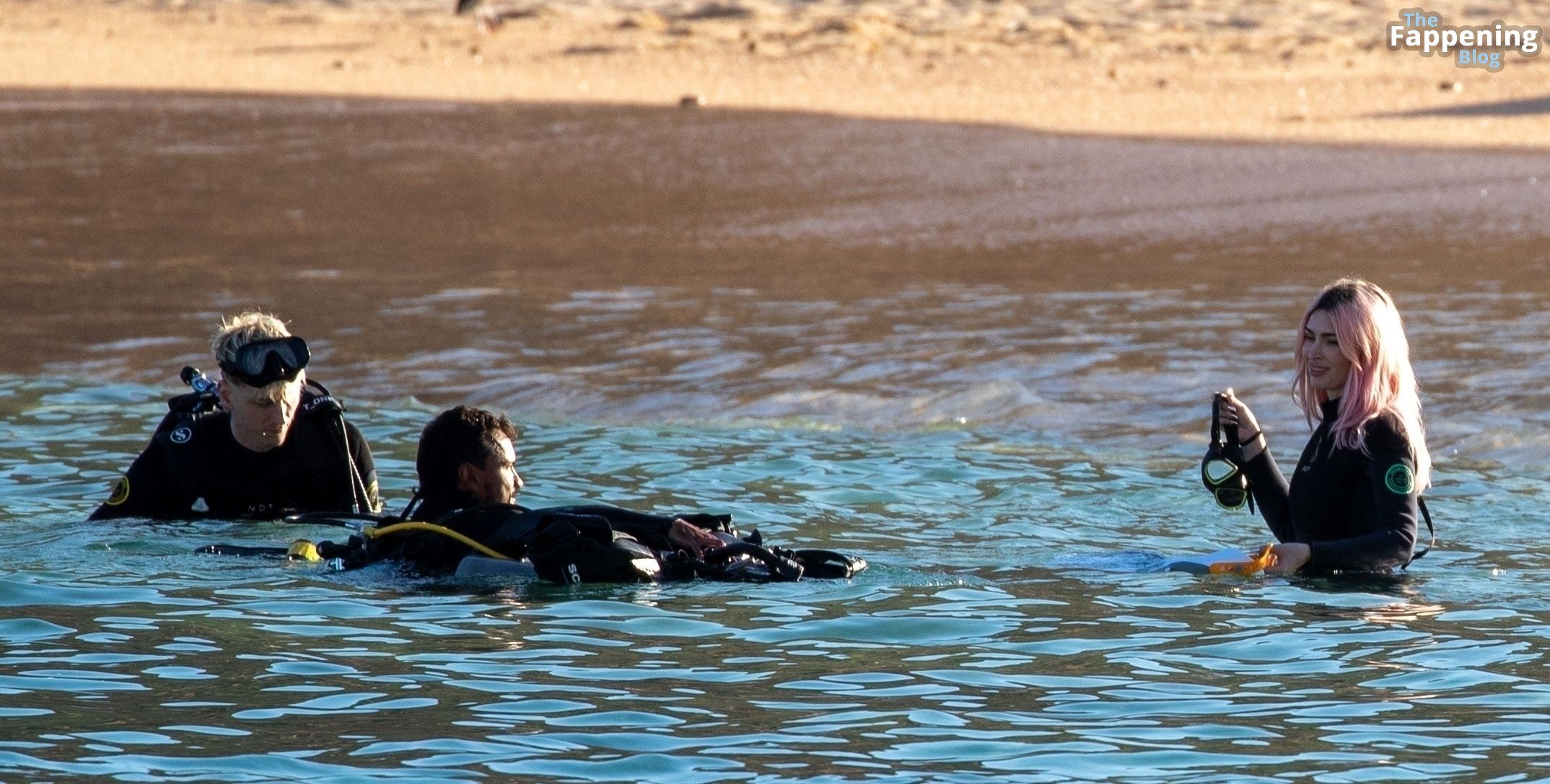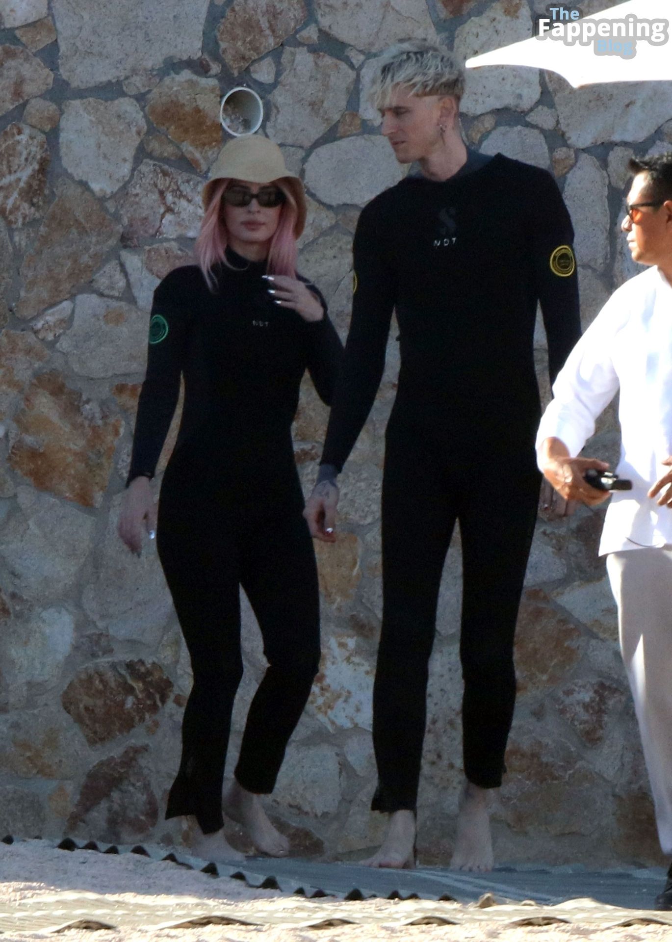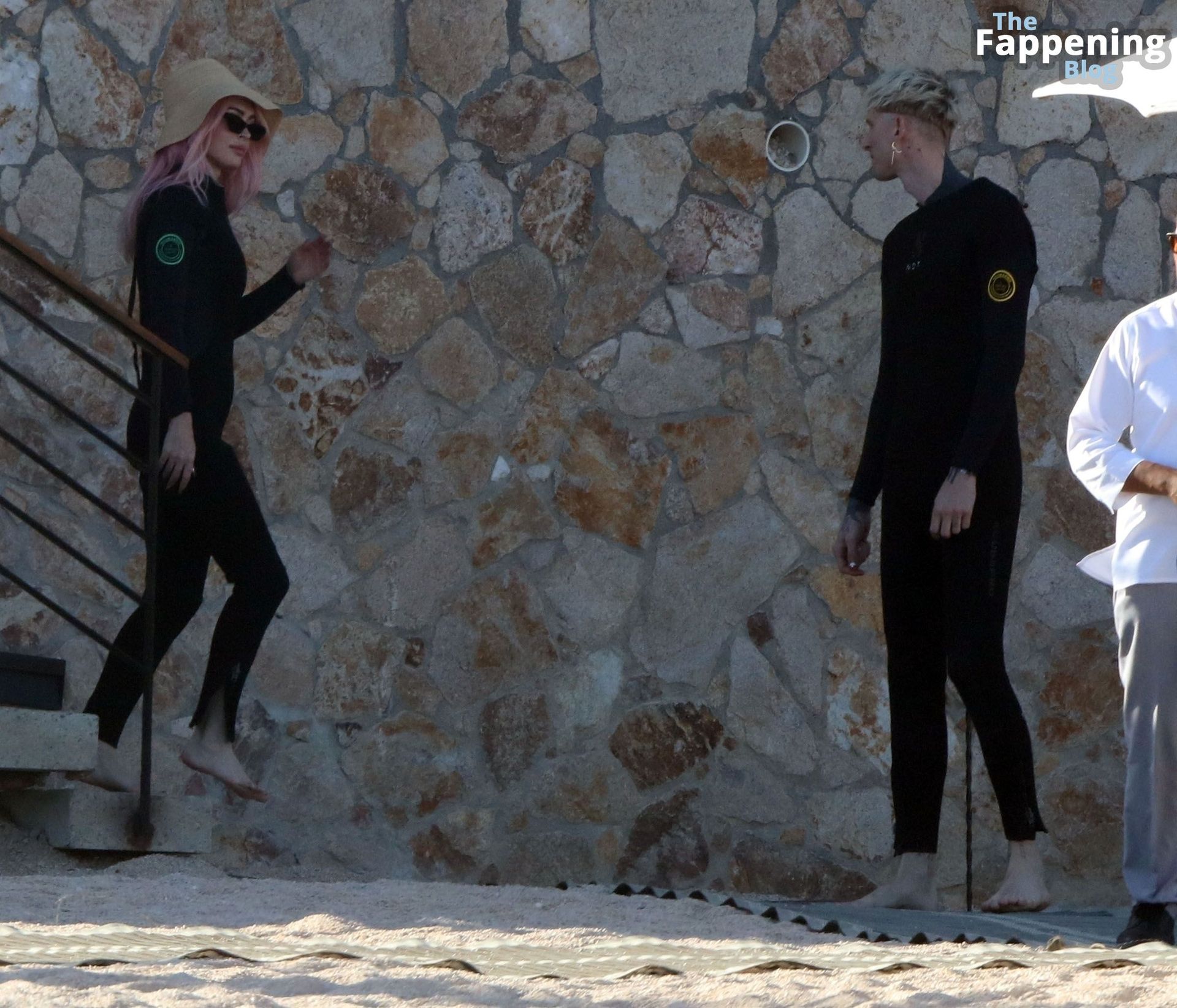 Megan a assorti la couleur rose de ses nouveaux cheveux à son bikini qu’elle portait sous son équipement de snorkeling ! MGK, ironiquement, a couvert ses nouveaux tatouages noirs sur le torse avec une combinaison intégrale pendant qu’il participait aux activités du couple. Sur certains clichés, MGK montre ses tatouages habituels dans le dos après avoir ouvert sa combinaison.