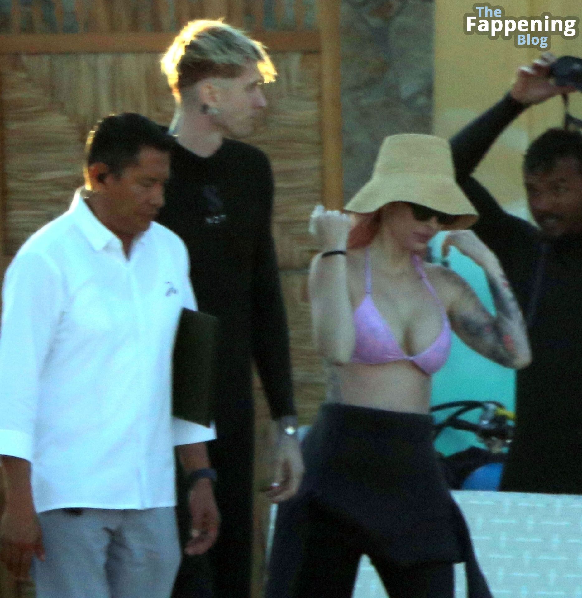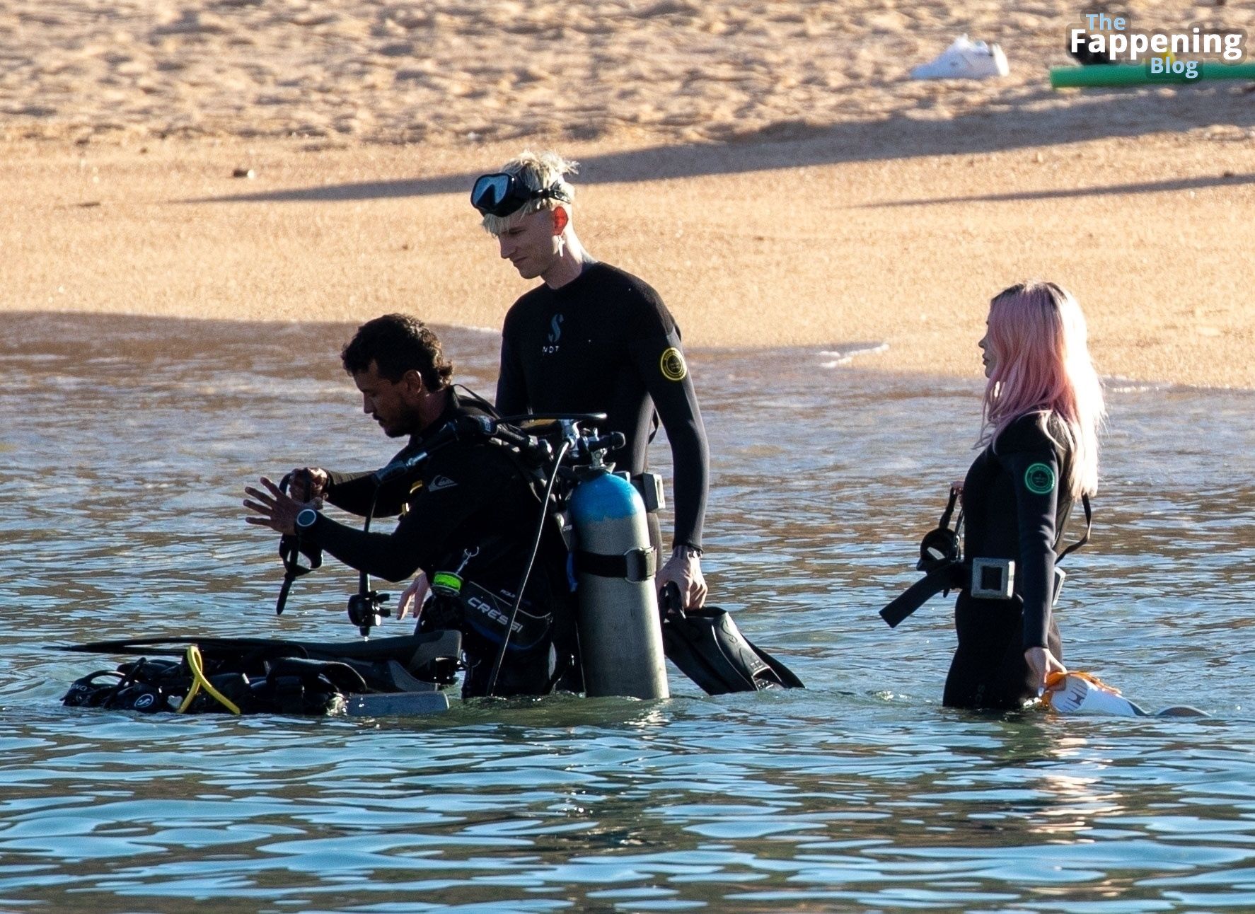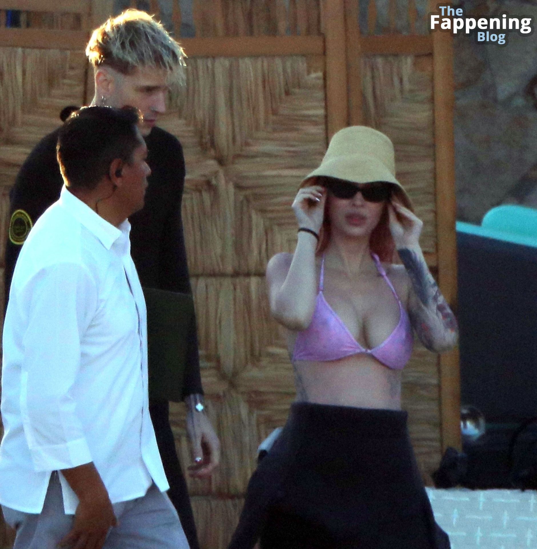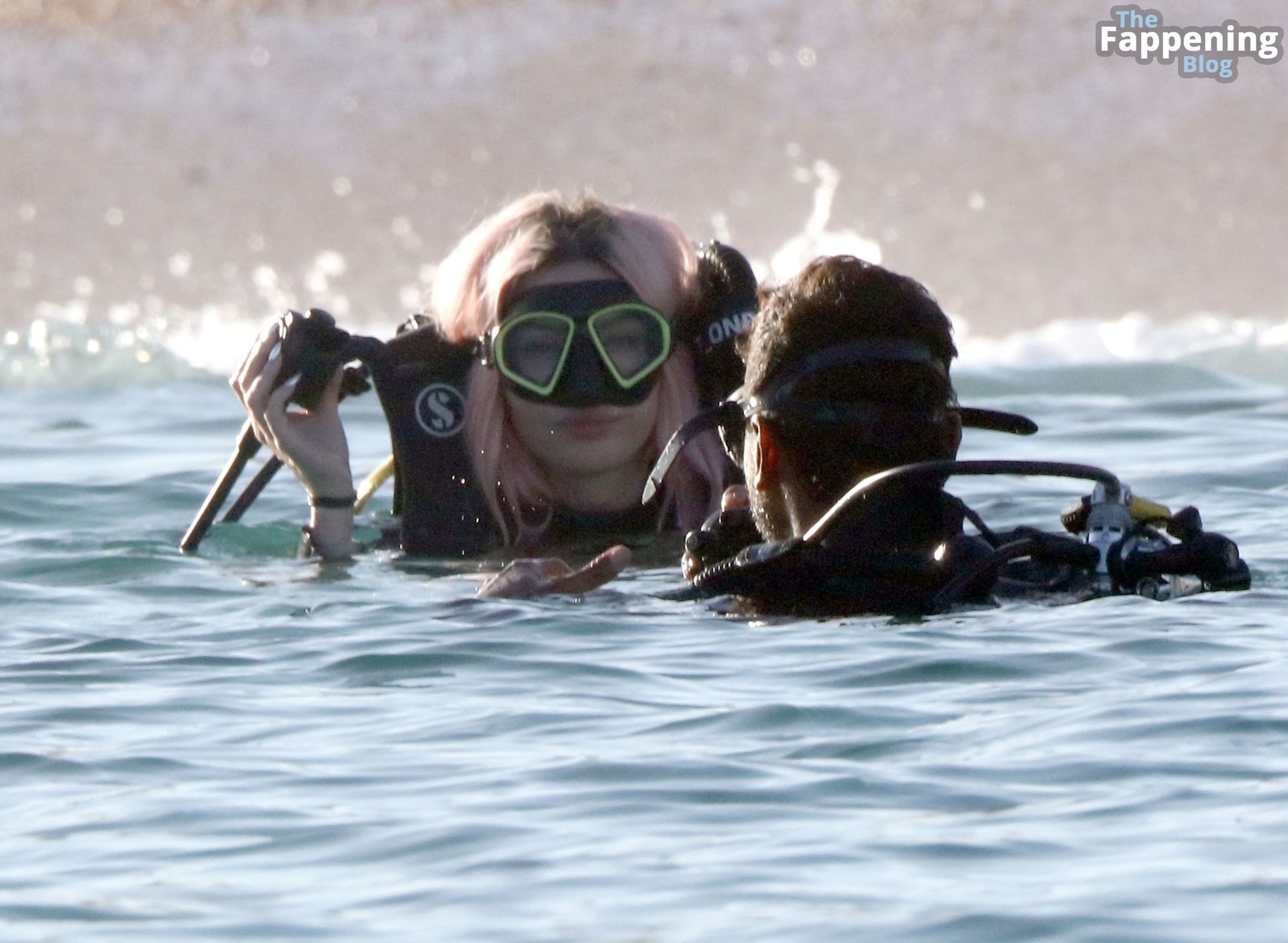 Megan a assorti la couleur rose de ses nouveaux cheveux à son bikini qu’elle portait sous son équipement de snorkeling ! MGK, ironiquement, a couvert ses nouveaux tatouages noirs sur le torse avec une combinaison intégrale pendant qu’il participait aux activités du couple. Sur certains clichés, MGK montre ses tatouages habituels dans le dos après avoir ouvert sa combinaison.