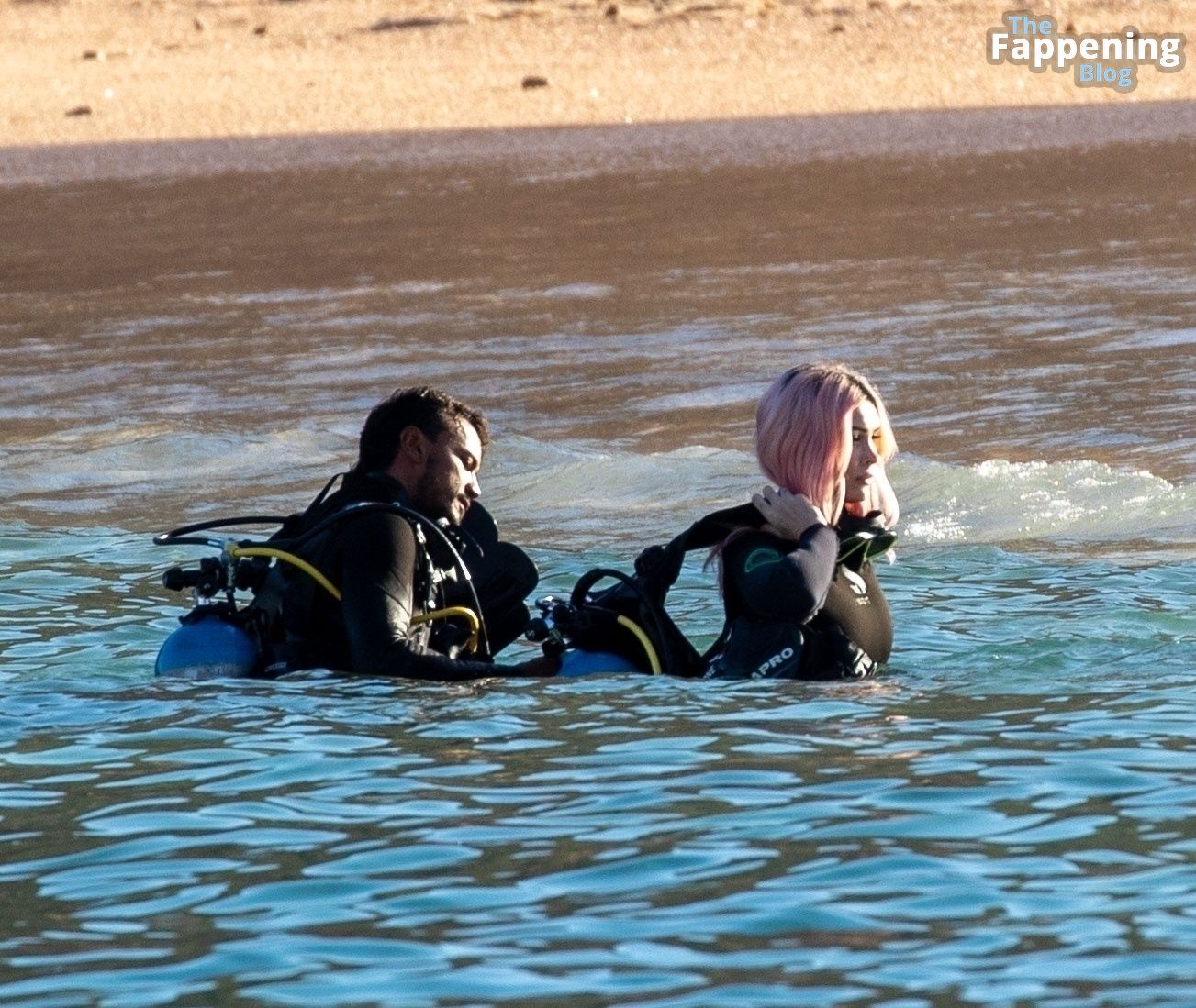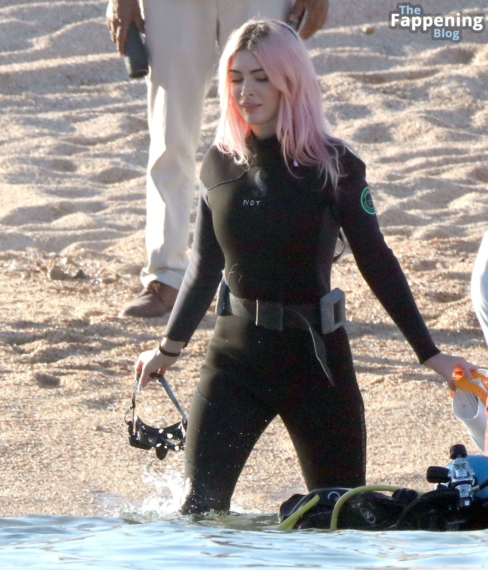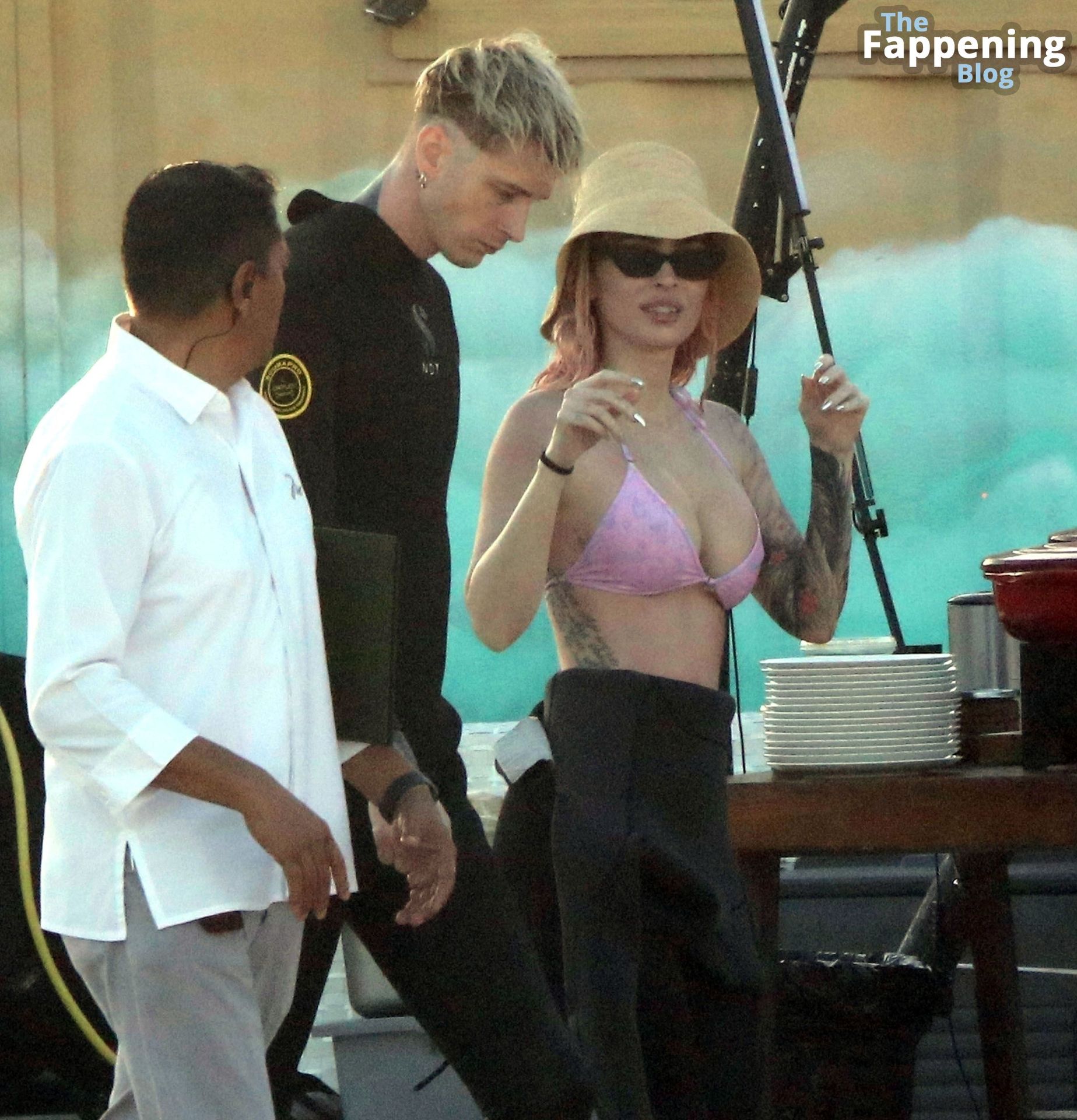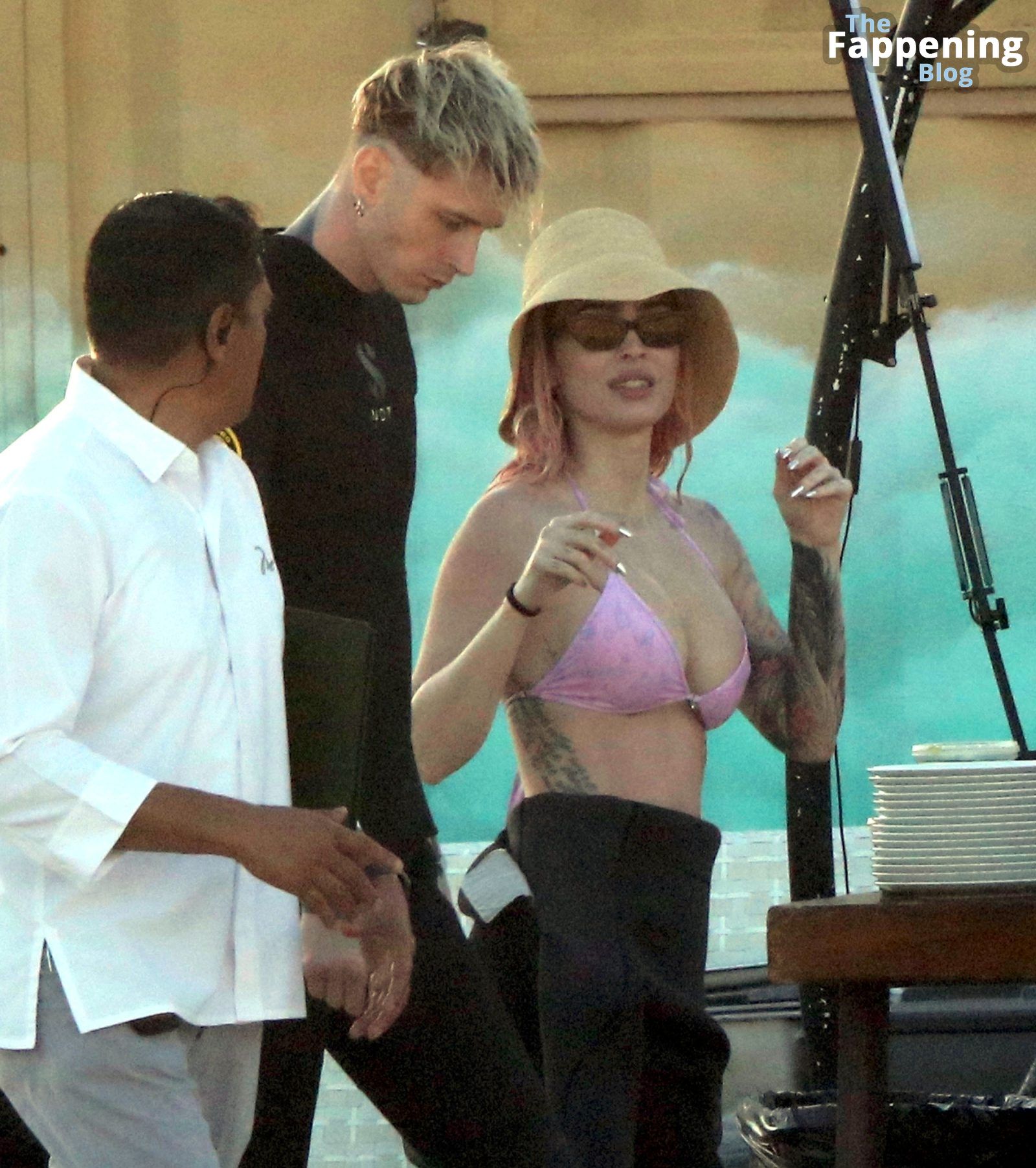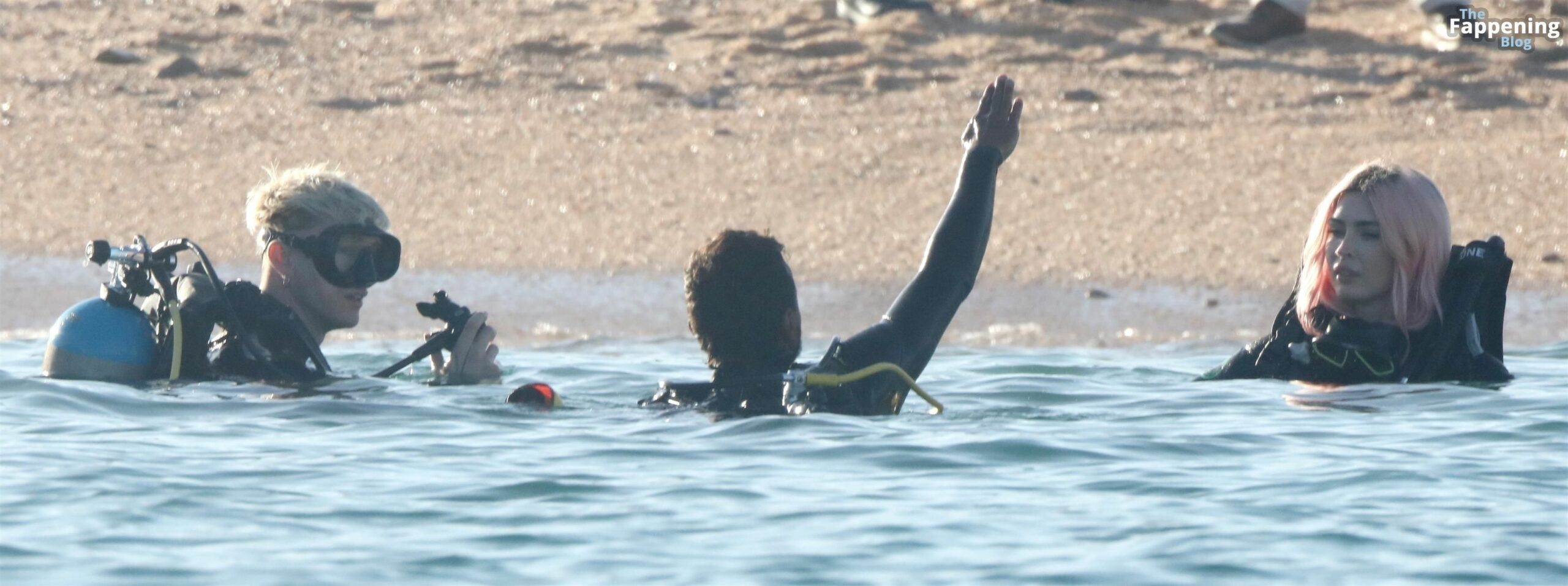 Megan a assorti la couleur rose de ses nouveaux cheveux à son bikini qu’elle portait sous son équipement de snorkeling ! MGK, ironiquement, a couvert ses nouveaux tatouages noirs sur le torse avec une combinaison intégrale pendant qu’il participait aux activités du couple. Sur certains clichés, MGK montre ses tatouages habituels dans le dos après avoir ouvert sa combinaison.