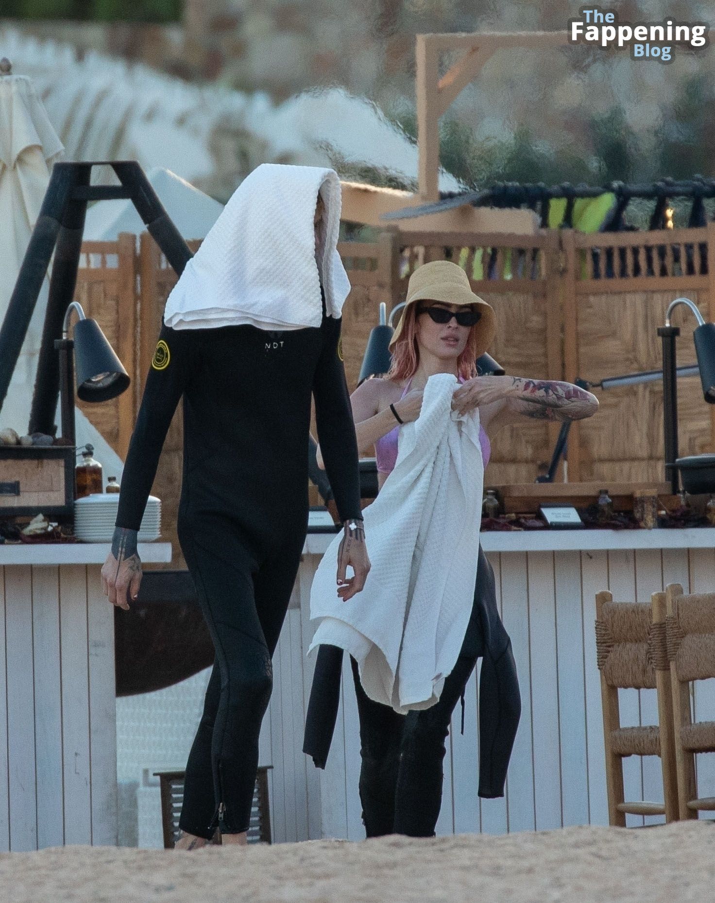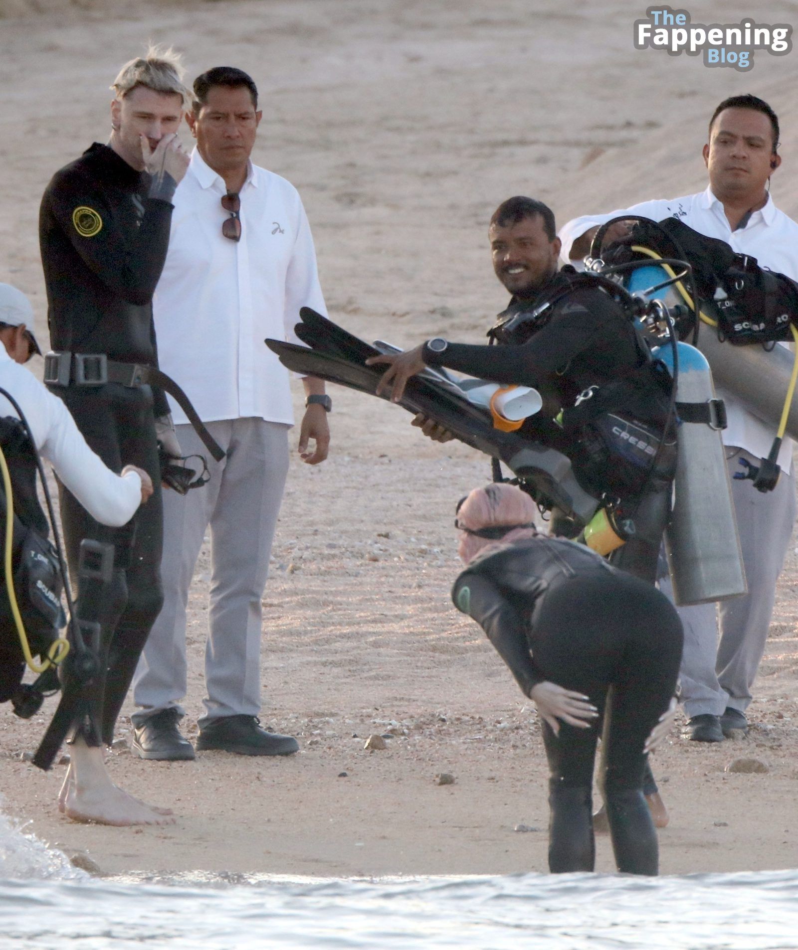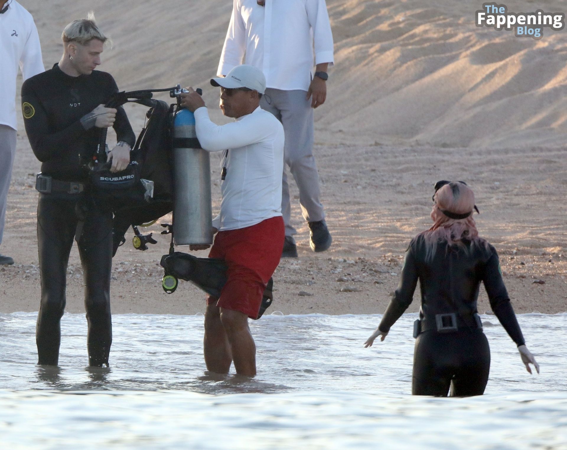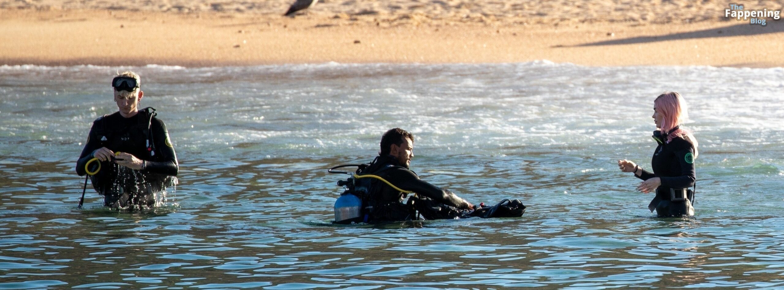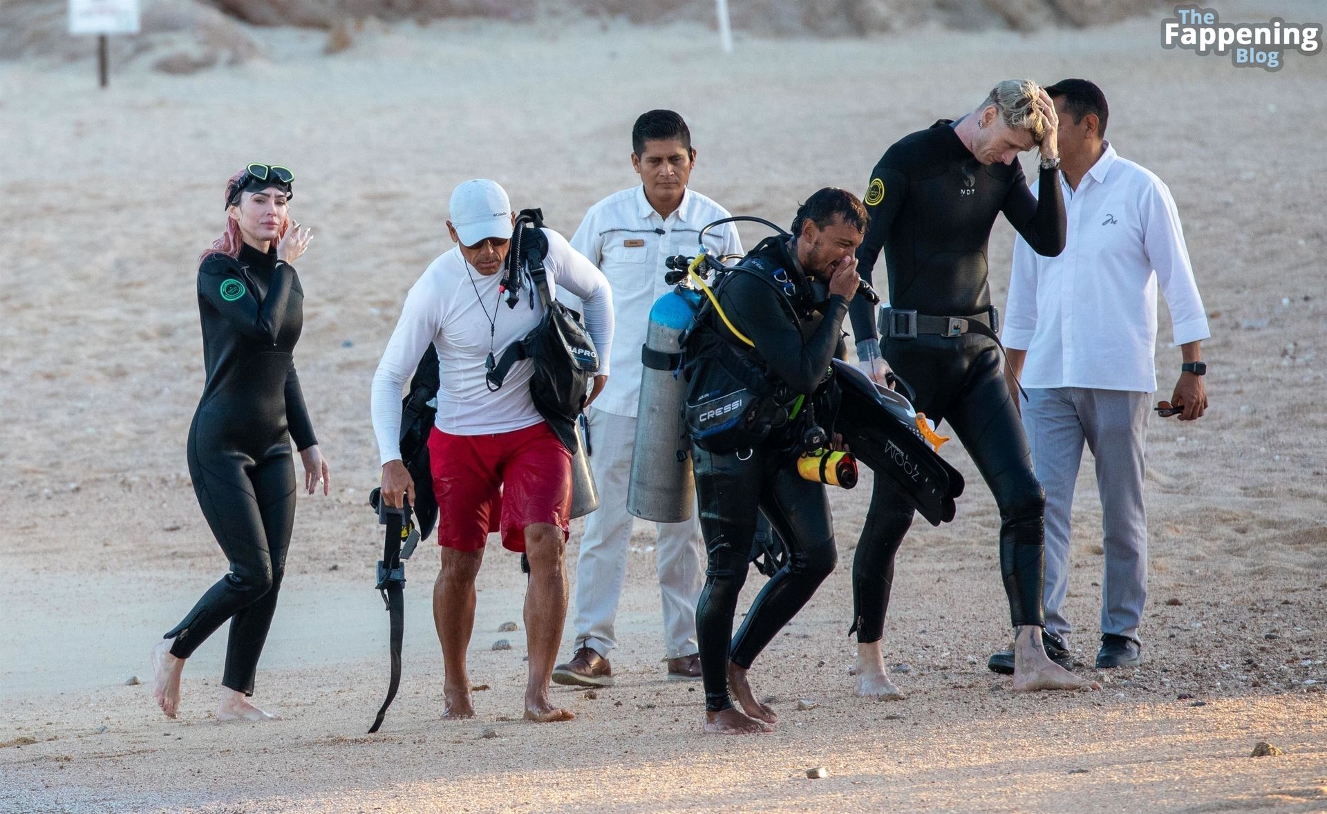 Megan a assorti la couleur rose de ses nouveaux cheveux à son bikini qu’elle portait sous son équipement de snorkeling ! MGK, ironiquement, a couvert ses nouveaux tatouages noirs sur le torse avec une combinaison intégrale pendant qu’il participait aux activités du couple. Sur certains clichés, MGK montre ses tatouages habituels dans le dos après avoir ouvert sa combinaison.