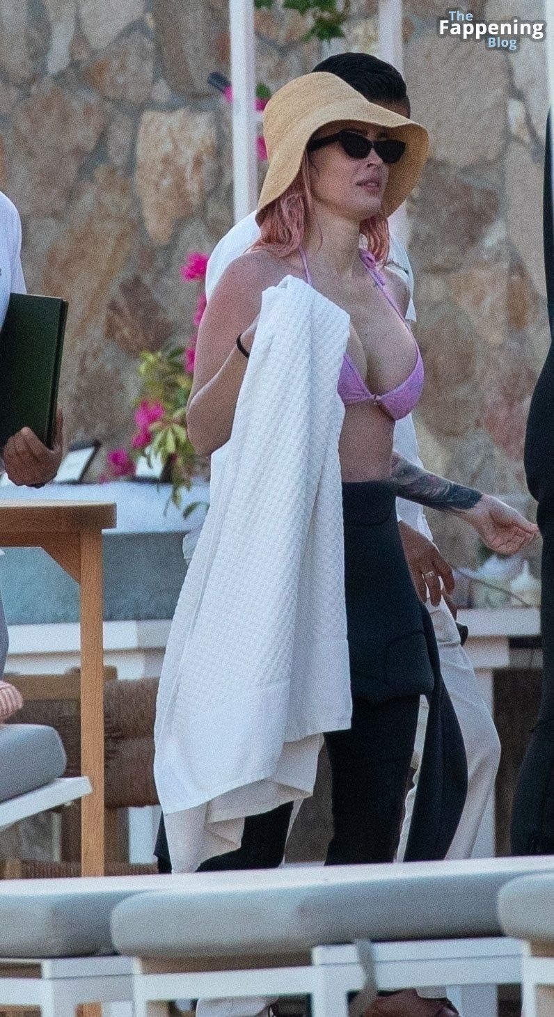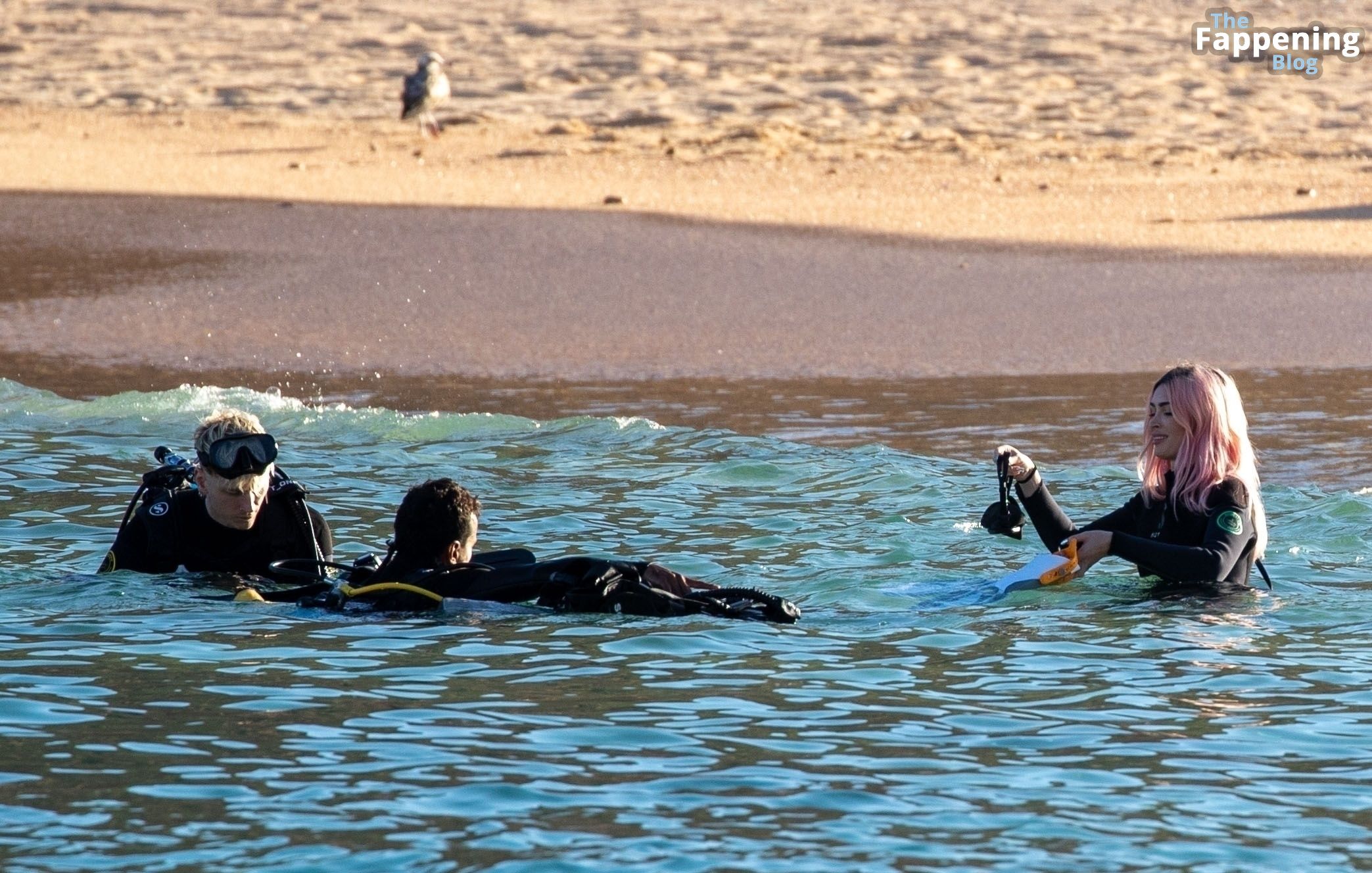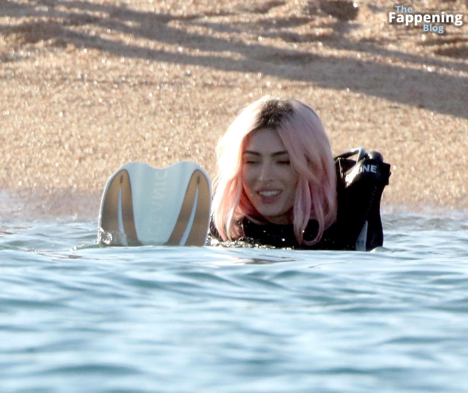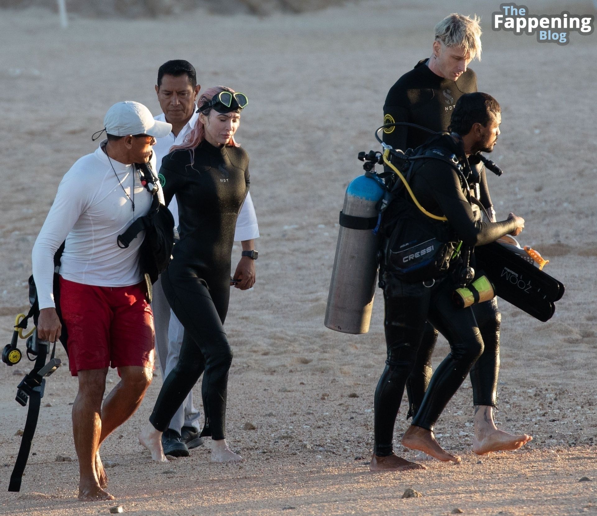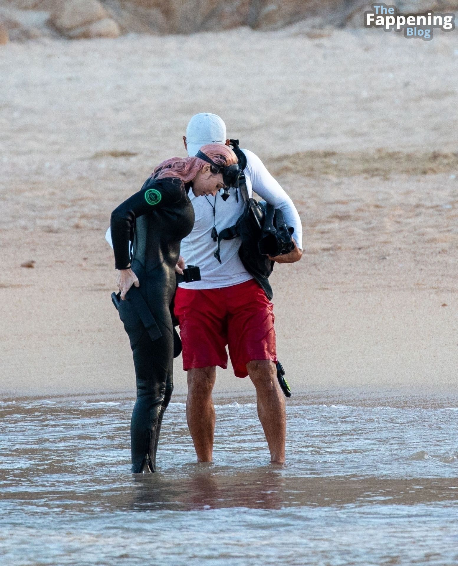Megan a assorti la couleur rose de ses nouveaux cheveux à son bikini qu’elle portait sous son équipement de snorkeling ! MGK, ironiquement, a couvert ses nouveaux tatouages noirs sur le torse avec une combinaison intégrale pendant qu’il participait aux activités du couple. Sur certains clichés, MGK montre ses tatouages habituels dans le dos après avoir ouvert sa combinaison.