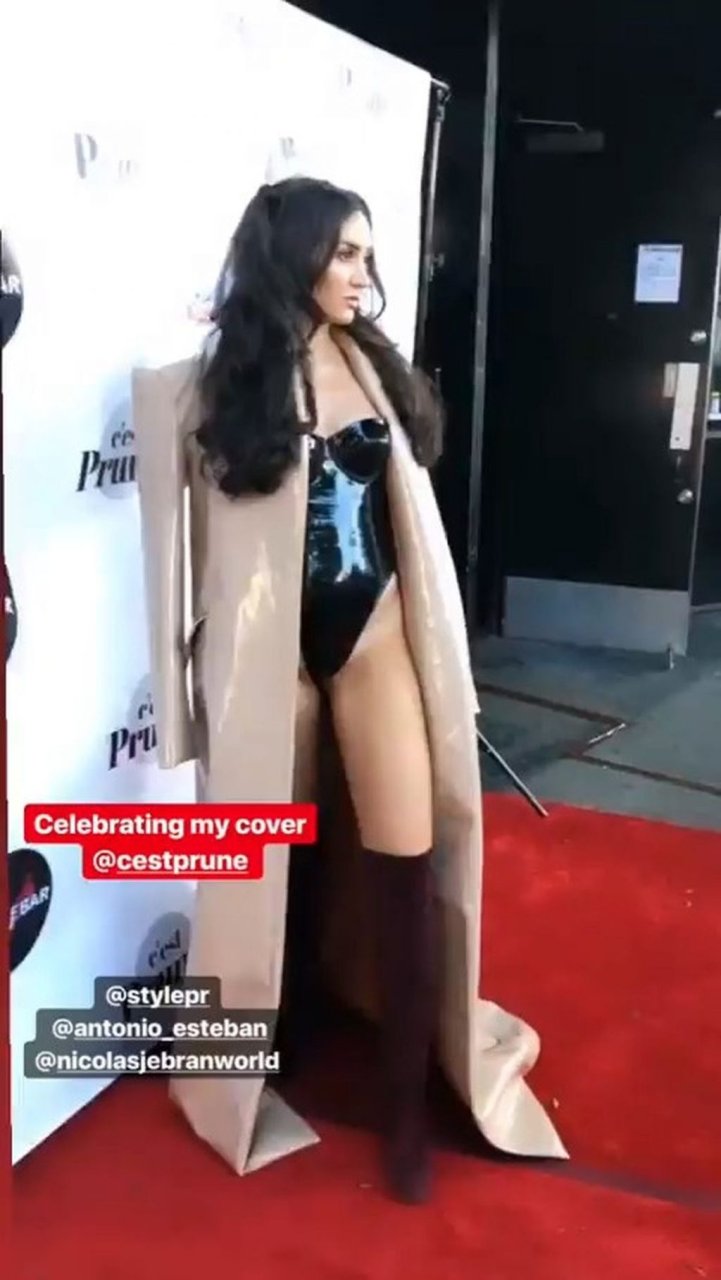 Le mannequin/actrice/personnalité télé iranienne Megan Pormer a été vue dans un body en latex noir devant le restaurant Craig’s à West Hollywood, le 27/06/2019.