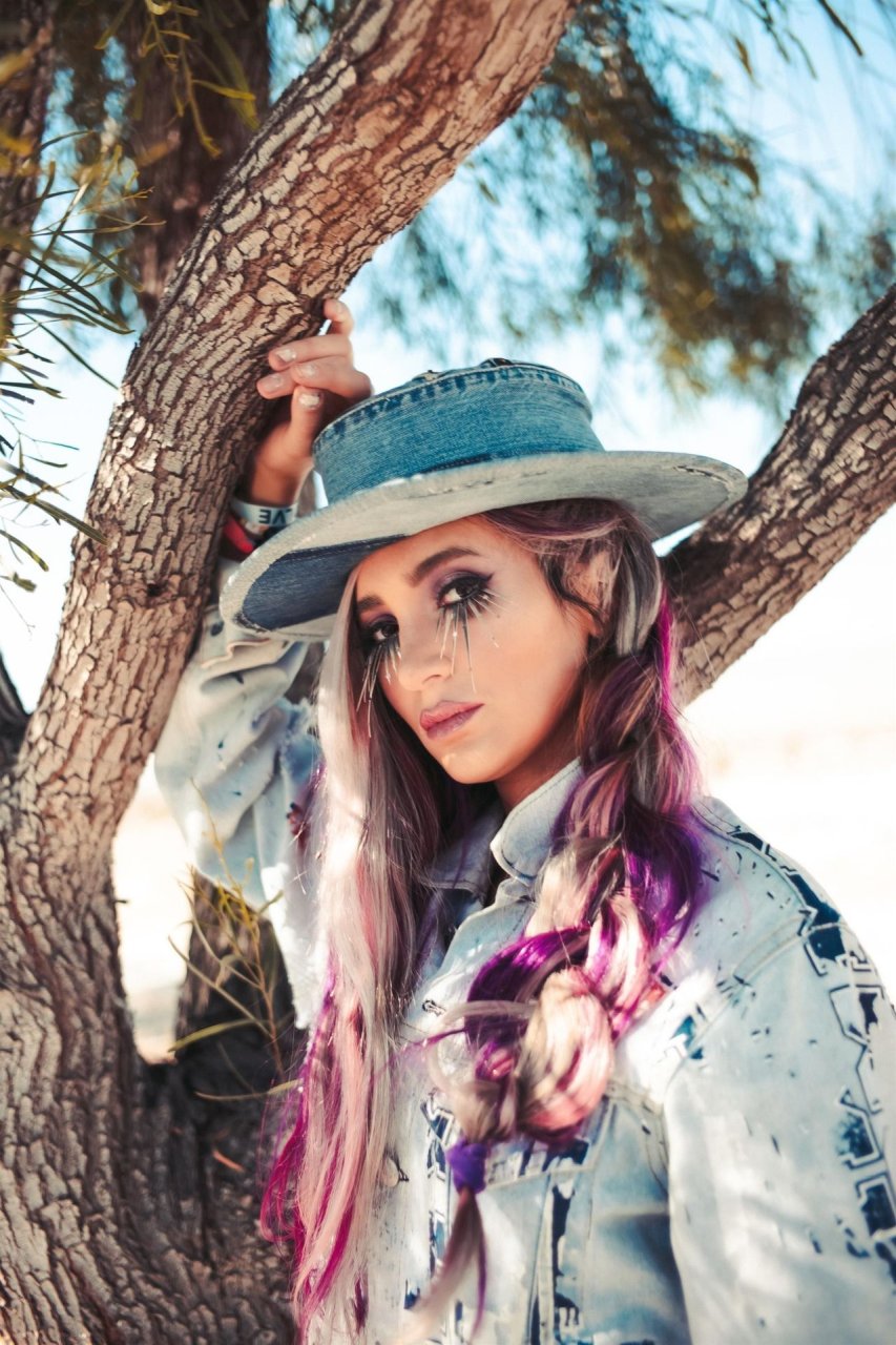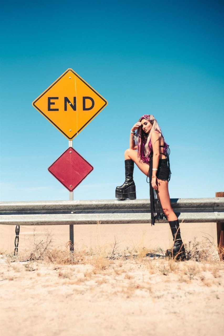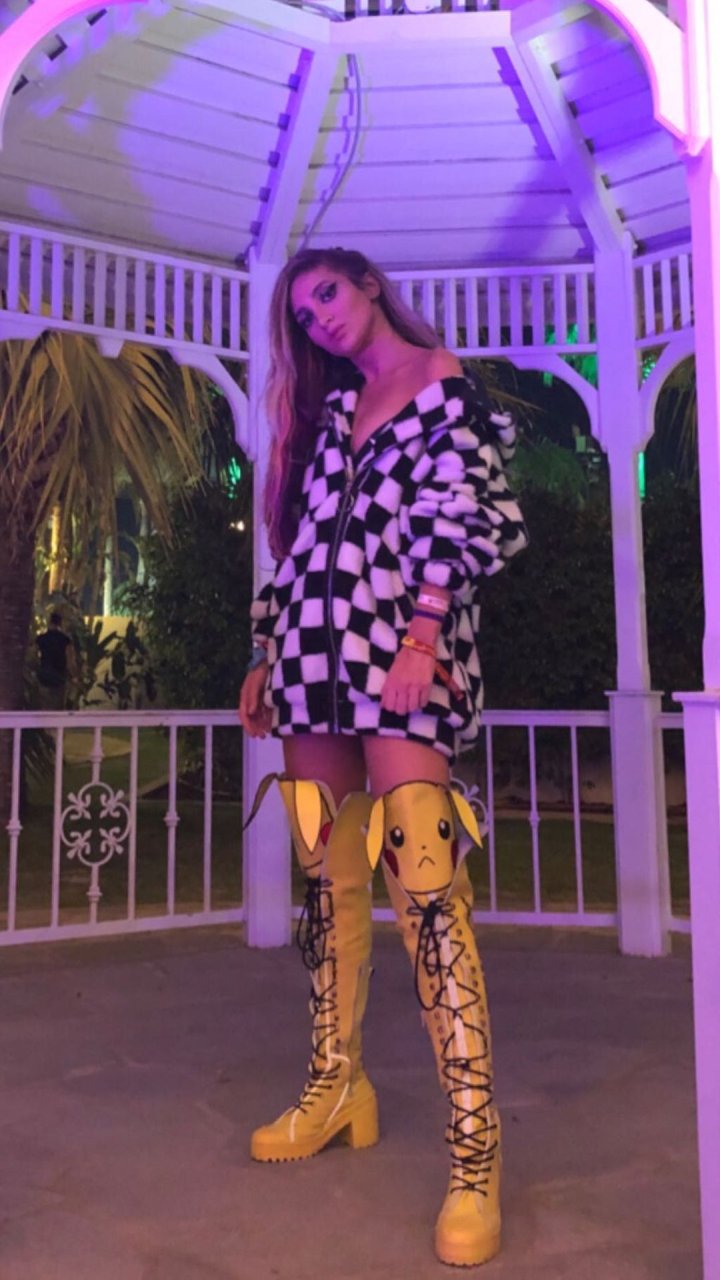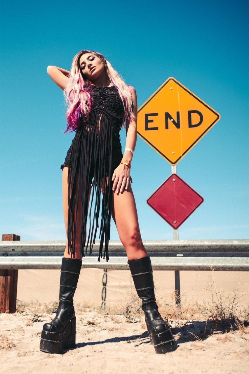 Model/actrice/star de la télévision Megan Pormer (26 ans) pose à Coachella à Indio, le 14/04/2019. Sa tenue “sans soutien-gorge” est très jolie !