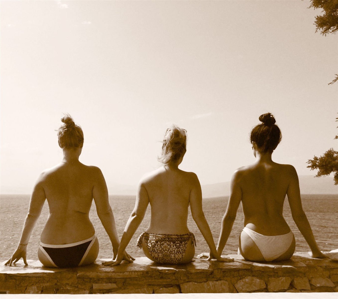 Sur l’une des photos, elle et deux jeunes femmes sont assises topless sur la plage, tournant le dos au public. Cependant, au début, la beauté a dû bricoler avec sa caméra. À ce moment-là, le public peut clairement voir ses petits seins soignés.