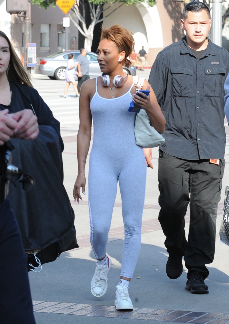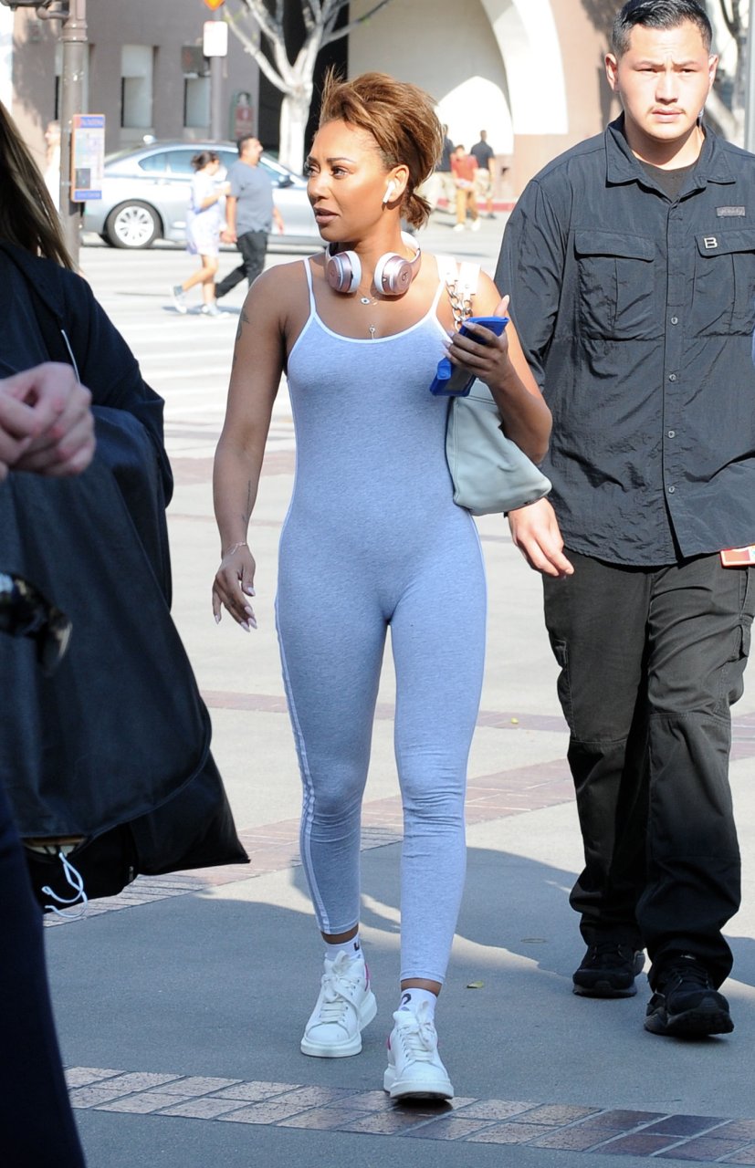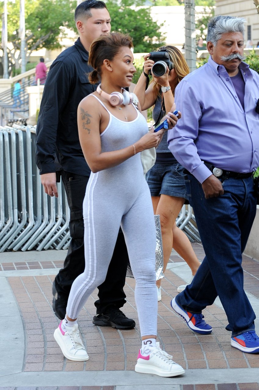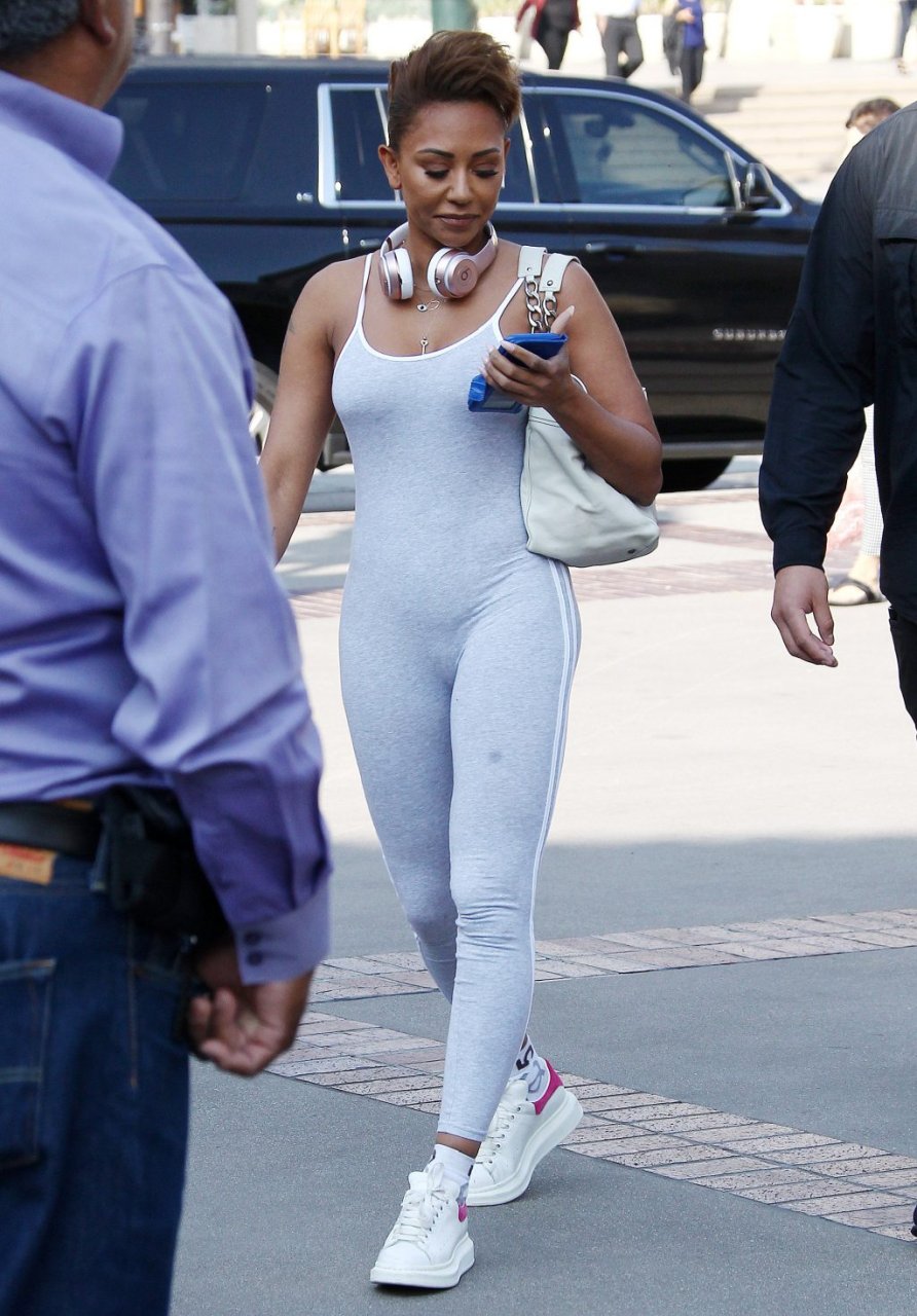 Mel B a été vue dans une tenue de sport grise moulante arrivant au spectacle America’s Got Talent au Pasadena Civic Auditorium, le 10/05/2018.