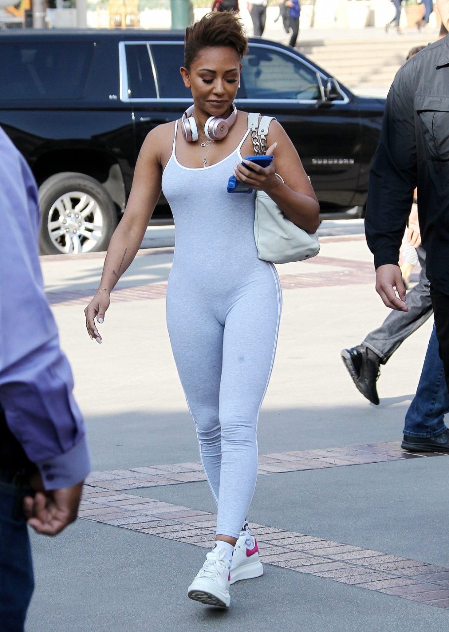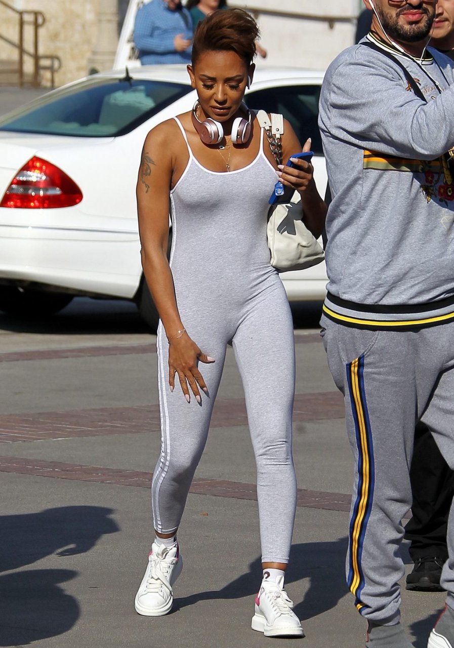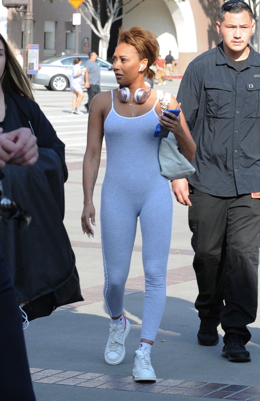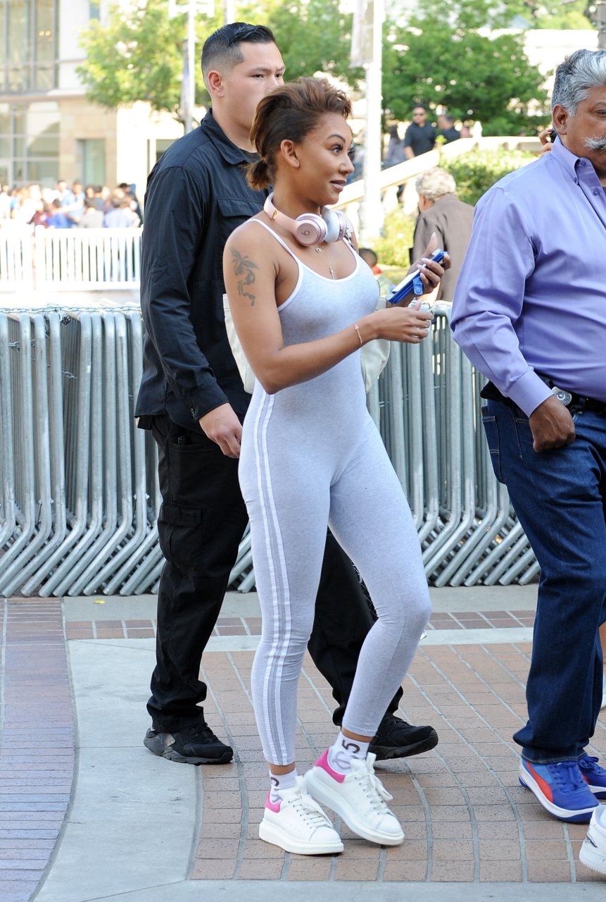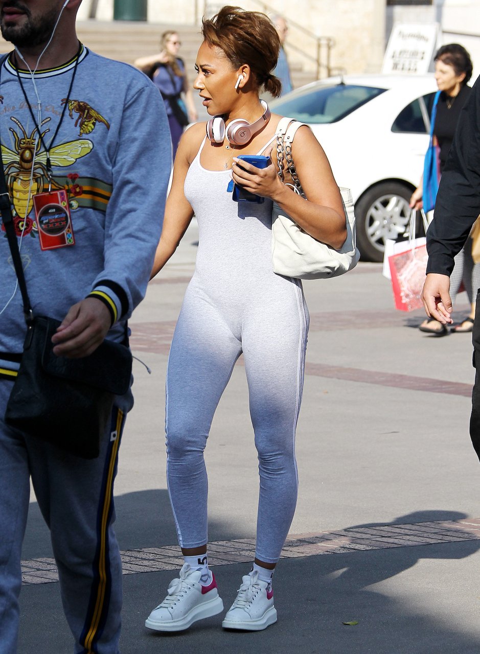Mel B a été vue dans une tenue de sport grise moulante arrivant au spectacle America’s Got Talent au Pasadena Civic Auditorium, le 10/05/2018.