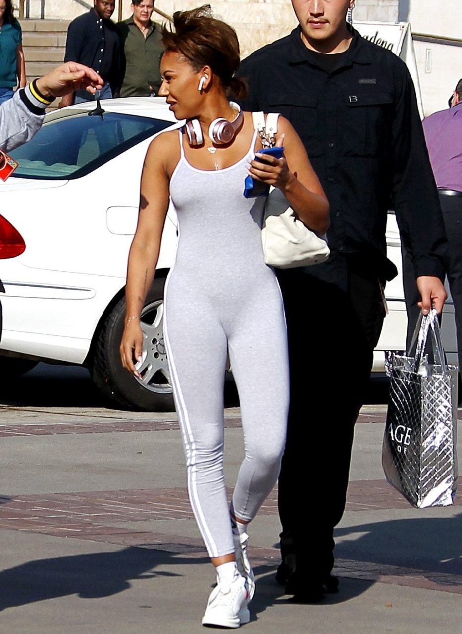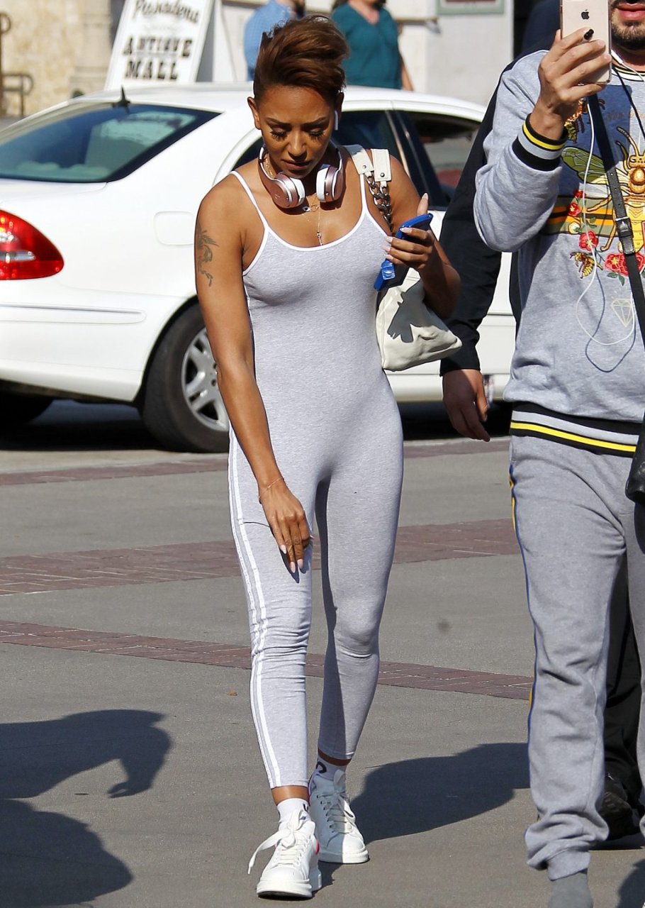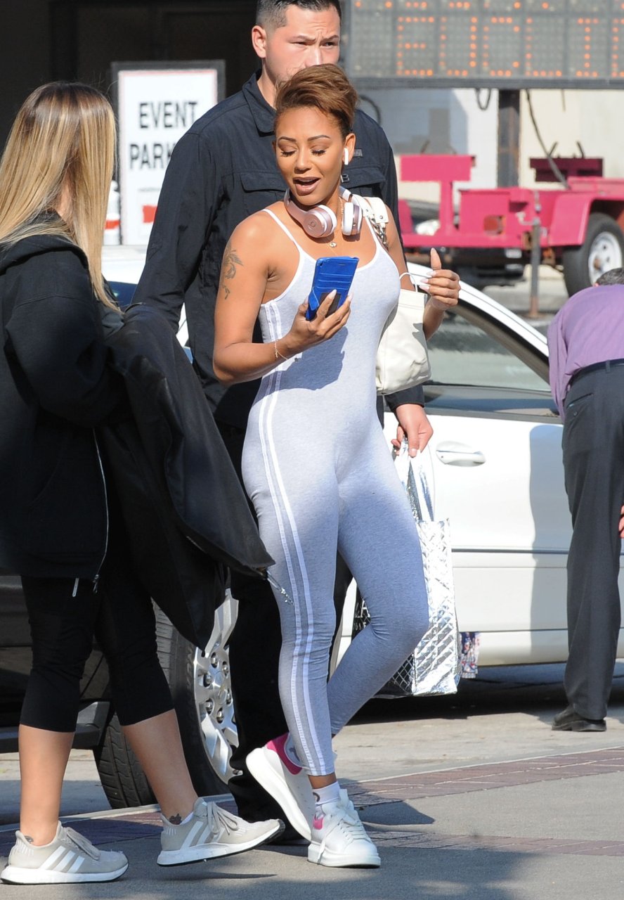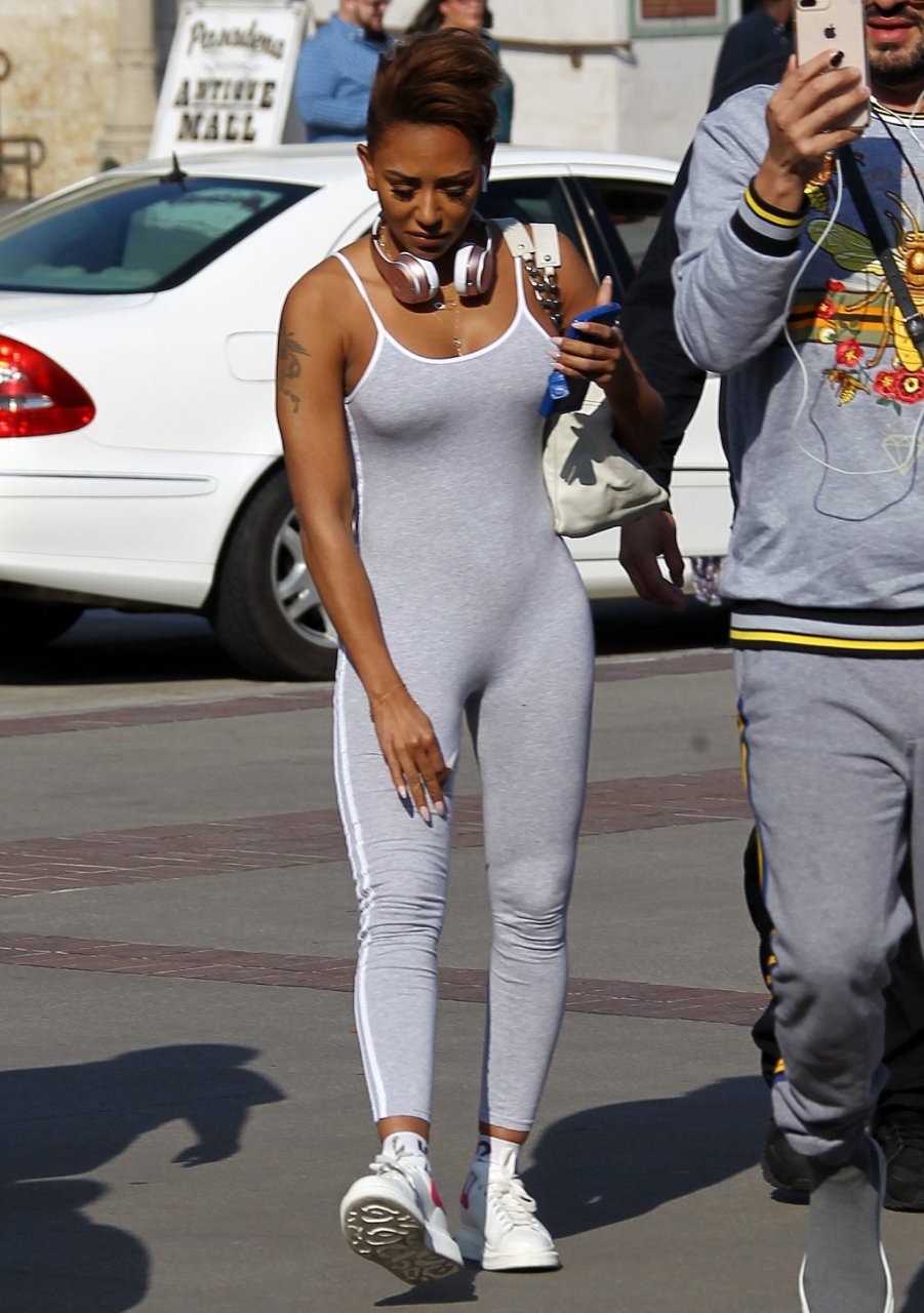 Mel B a été vue dans une tenue de sport grise moulante arrivant au spectacle America’s Got Talent au Pasadena Civic Auditorium, le 10/05/2018.