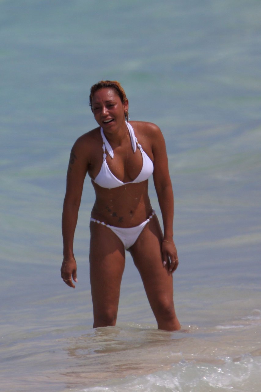 Mel B profite de ses vacances en bikini blanc à Hawaï, 07/10/2017. Melanie Brown est une animatrice britannique, star de la télévision, chanteuse, rappeuse, danseuse, artiste d’enregistrement, actrice, auteure, mannequin. Âge : 42 ans (née le 29 mai 1975).
