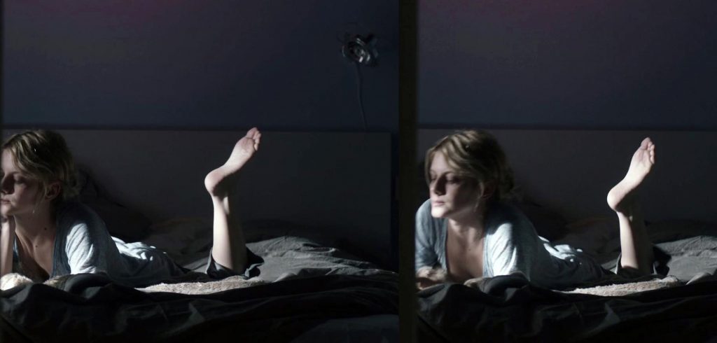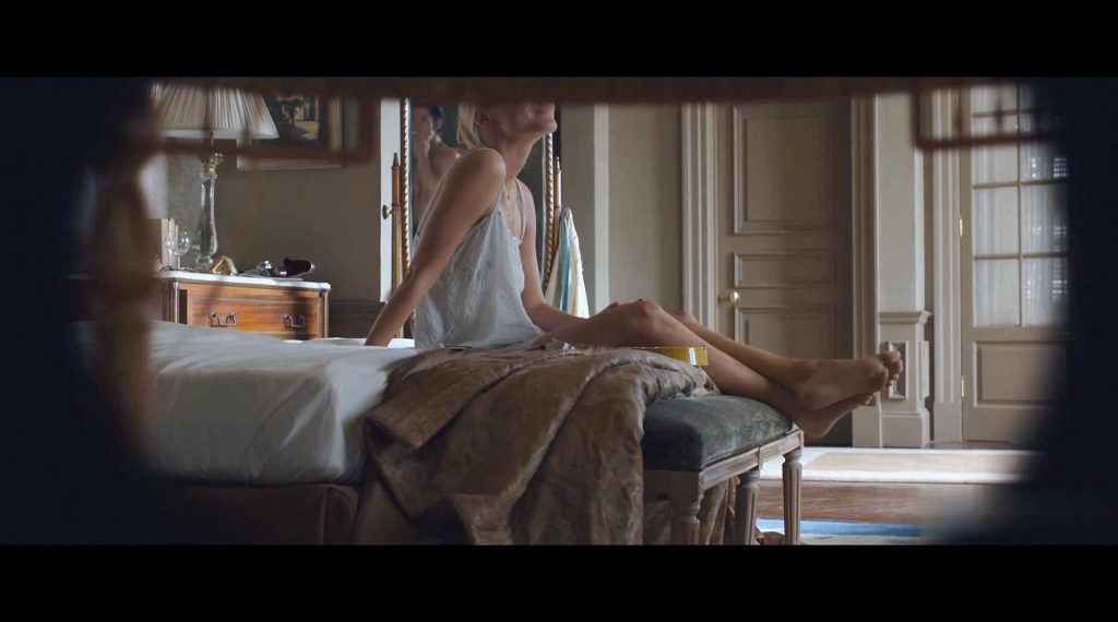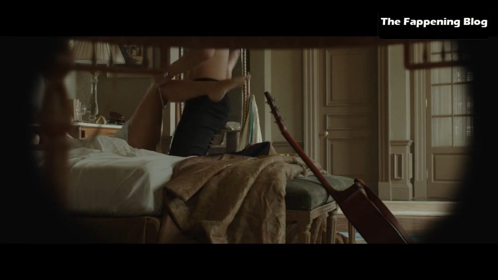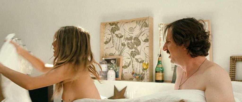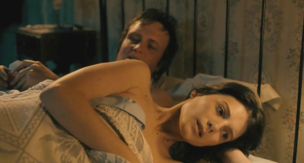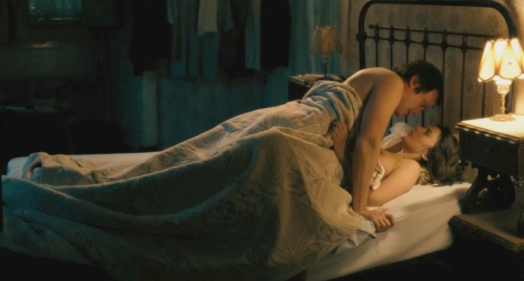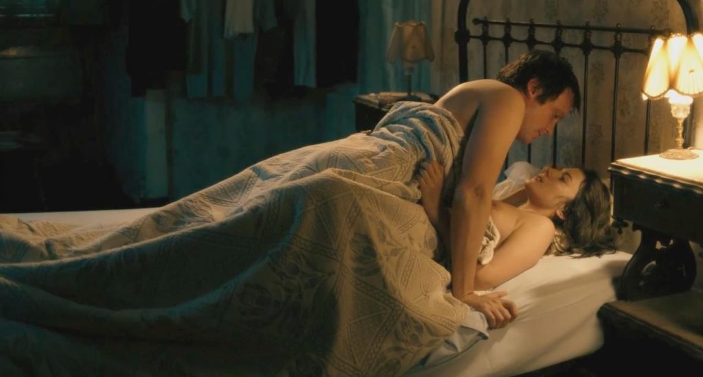 The first scene is from the ‘Night Train to Lisbon’ movie. Mélanie Laurent is seen lying under a man on a sheet, her left breast exposed until the man turns over next to her.