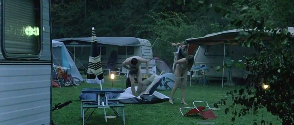The next scene is from a french movie called ‘Je Vais Bien, Ne T’en Fais Pas’. Mélanie Laurent is nude beneath a man in a tent as they have sex, her breasts visible when on her back and then while rolling on top of the guy. Melanie appears fully clothed and puts on a pair of underwear before fleeing for cover when the tent blows over in the breeze.