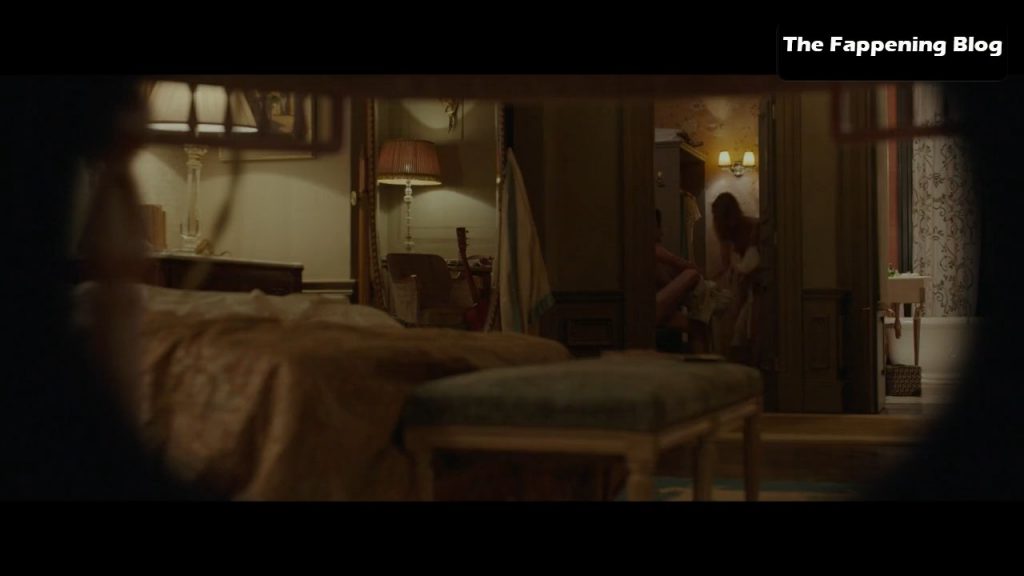 See one last fleeing flash of her perfectly perky right party bag when she takes off her dress before sliding into bed.