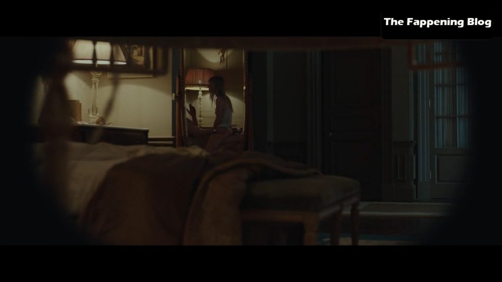 Angelina watches Mélanie Laurent through the peep hole as she starts to have sex with her lover, showing off her breasts as her nightgown falls down off her shoulders!