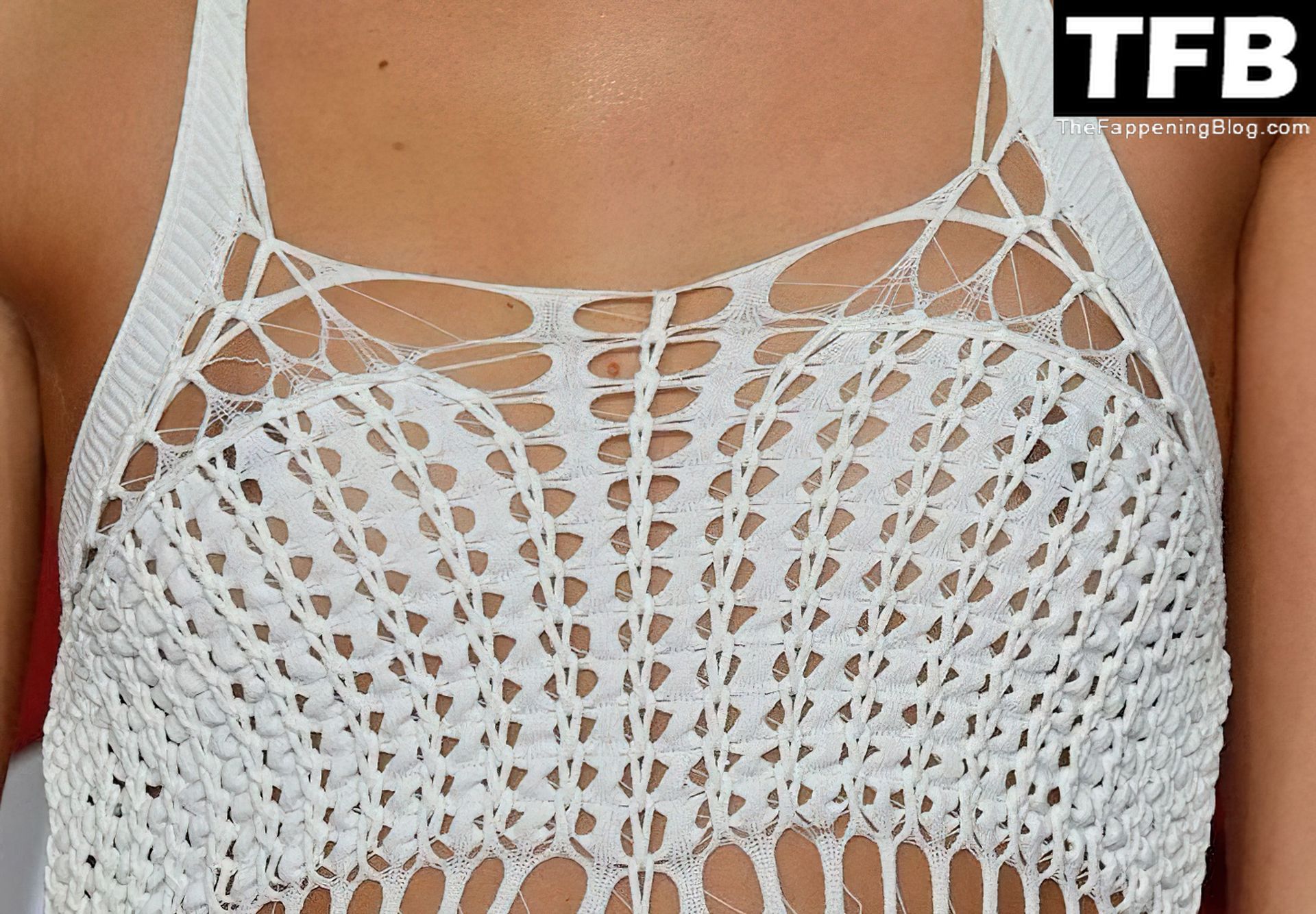 Le mannequin anglais Mia Regan pose dans une robe transparente pour les Fashion Awards 2022 au Royal Albert Hall de Londres, 12/05/2022.