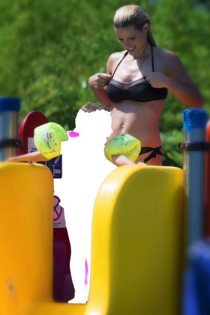 Michelle Hunziker profite d’une journée à la piscine avec sa famille à Mendrisio, en Suisse, le 08/03/2017. Michelle Hunziker est une actrice, chanteuse et ancienne mannequin suisse-italienne. Âge – 40 ans.