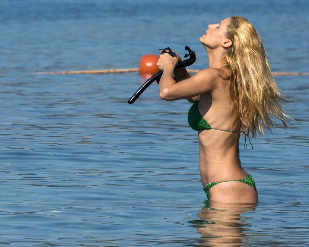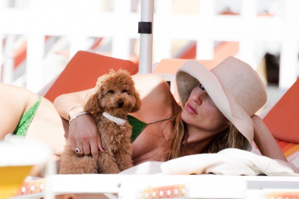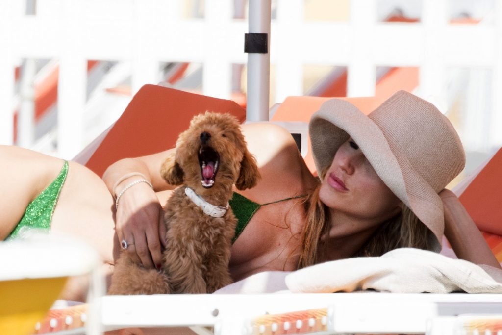 Michelle Hunziker porte un bikini vert sexy à la plage de Varigotti, 12/06/2017. Michelle Hunziker est une actrice de télévision suisse/italienne (The Protagonists – 1999), mannequin, chanteuse et animatrice. Âge : 40 ans.
