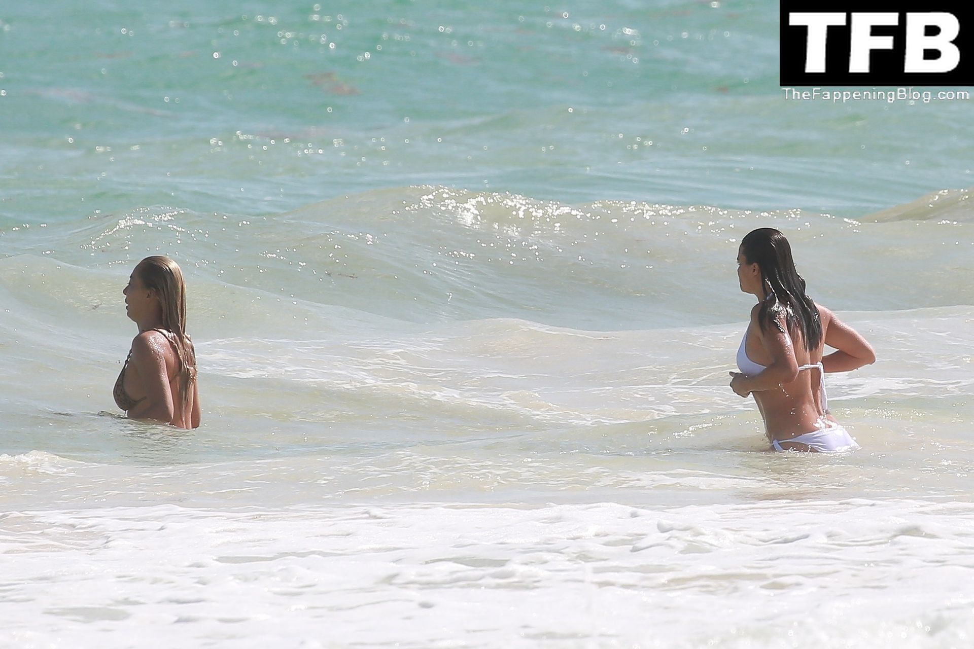 Michelle Rodriguez montre un peu trop dans un bikini blanc lors de ses vacances avec une blonde mystérieuse à Tulum, Mexique, 28/12/2021.