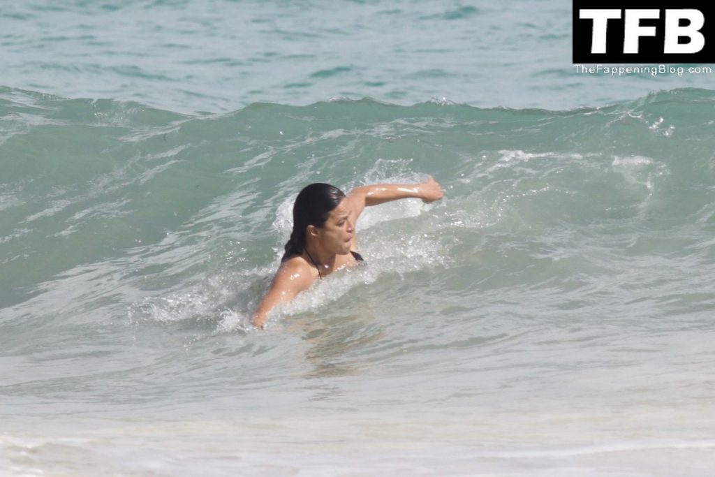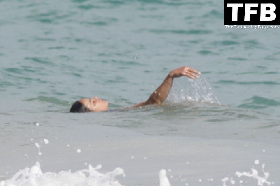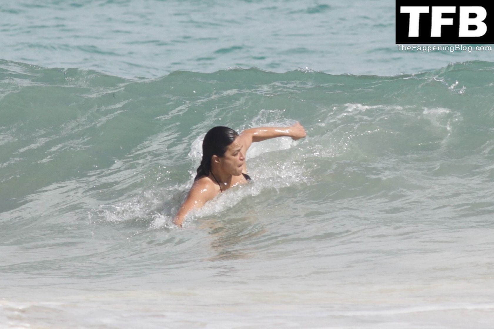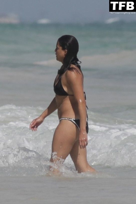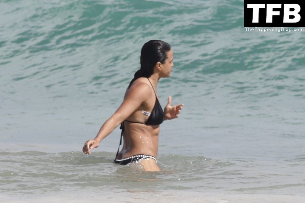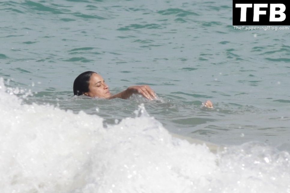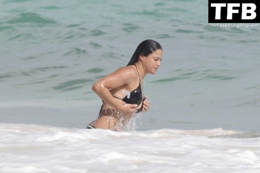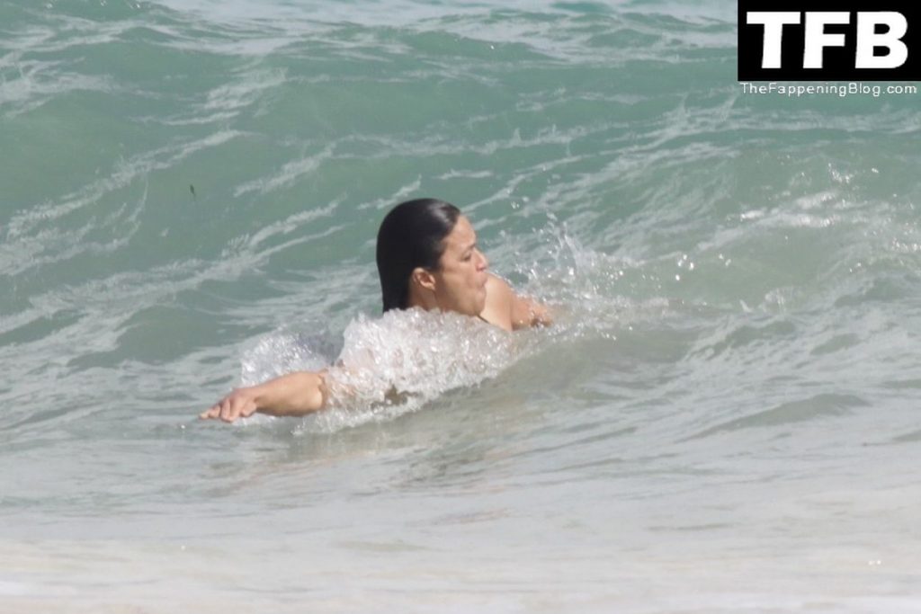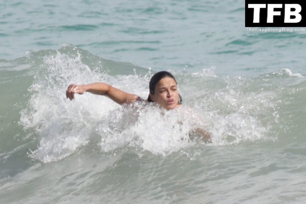 L’actrice de “Fast and the Furious” Michelle Rodriguez est vue en train de passer ses vacances en profitant du soleil sur les plages de sable de Tulum, au Mexique, le 20/12/2021. Michelle est tout sourire alors qu’elle s’éclabousse dans l’eau avec une amie.