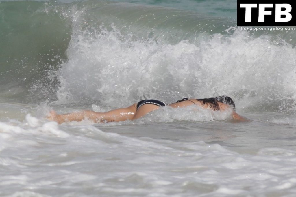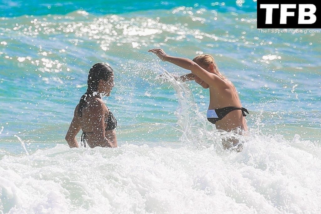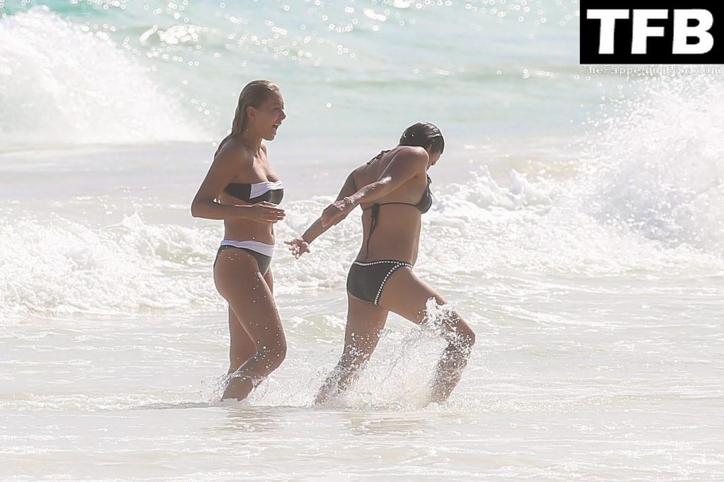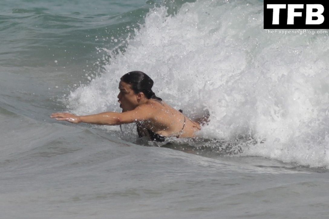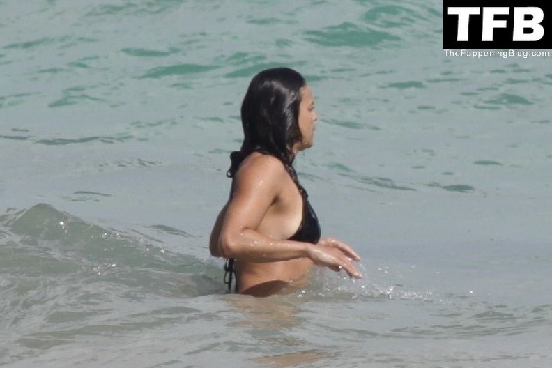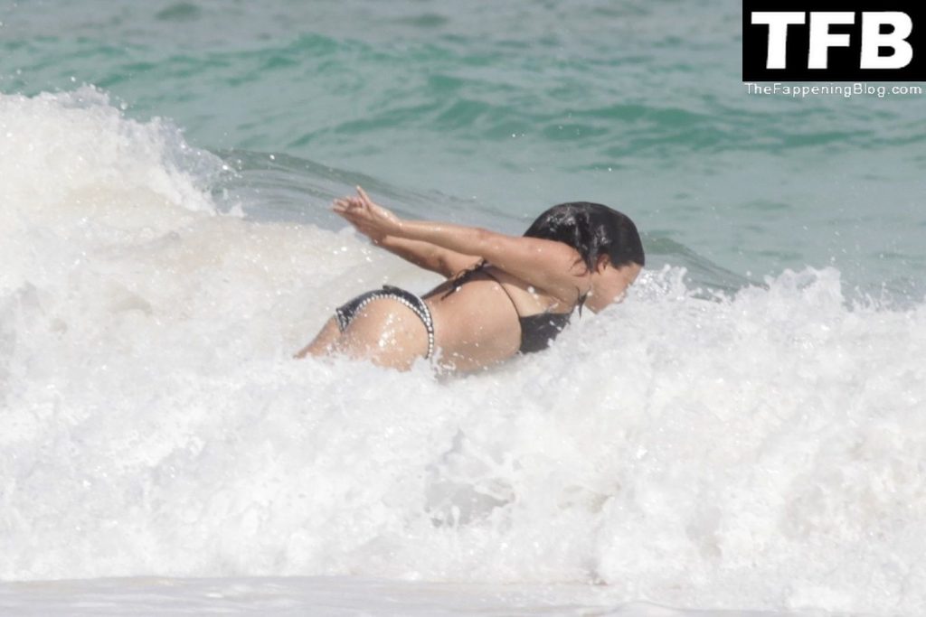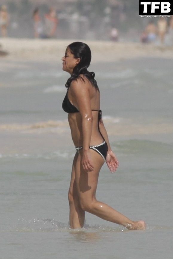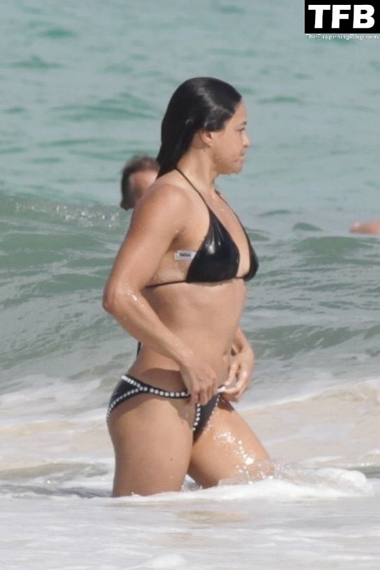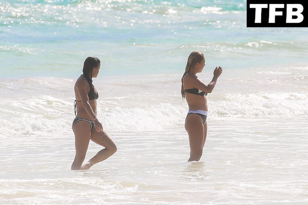 L’actrice de “Fast and the Furious” Michelle Rodriguez est vue en train de passer ses vacances en profitant du soleil sur les plages de sable de Tulum, au Mexique, le 20/12/2021. Michelle est tout sourire alors qu’elle s’éclabousse dans l’eau avec une amie.