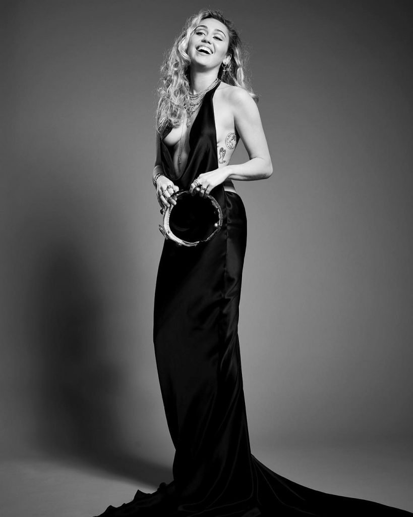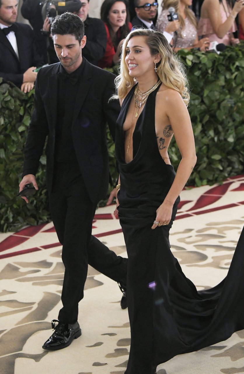 Miley Cyrus assiste au Gala de l’Institut du Costume du MET à New York, le 07/05/2018. La chanteuse de 25 ans portait une robe noire époustouflante sans soutien-gorge.