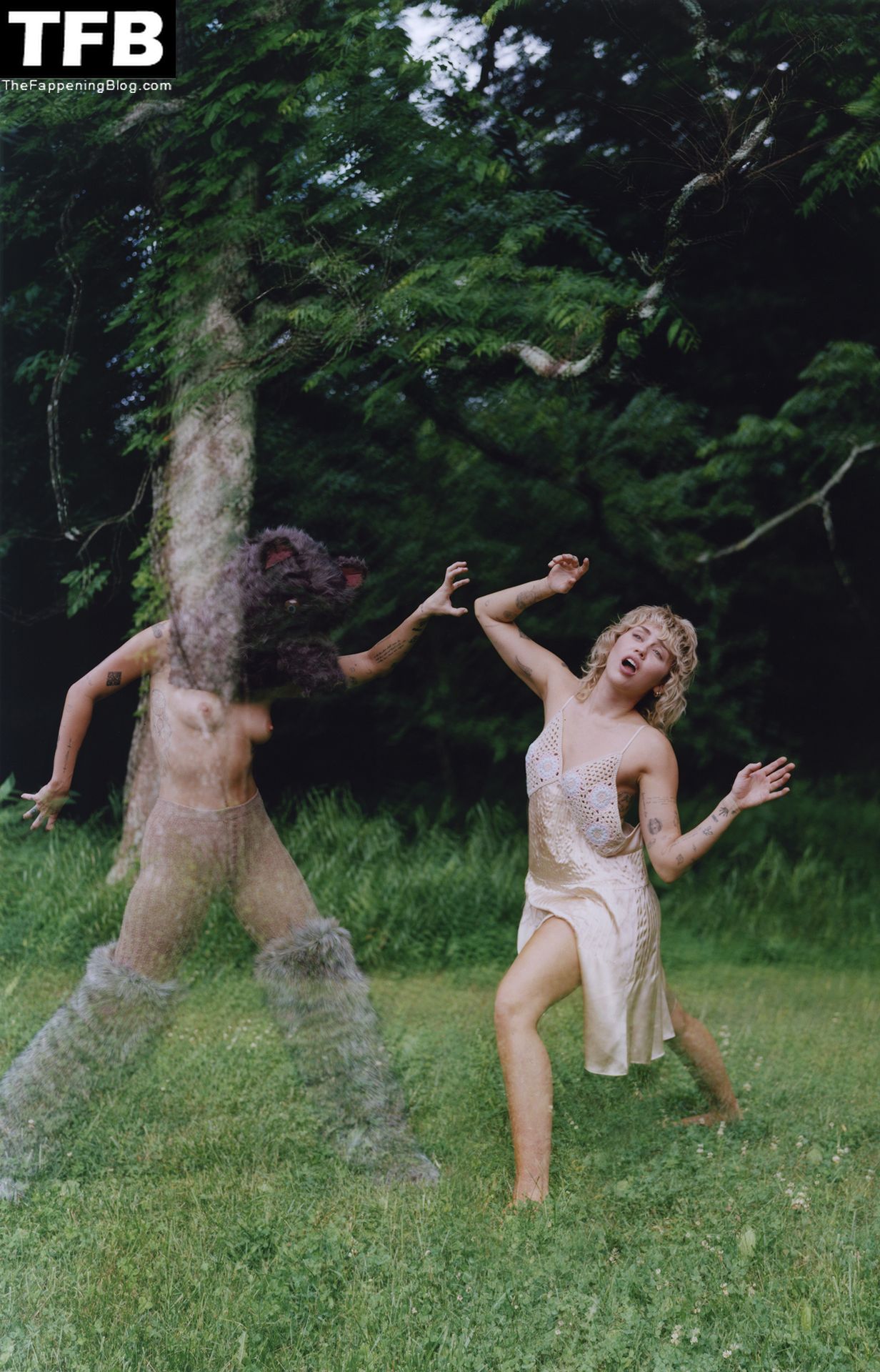 La star du Fappening Miley Cyrus affiche ses seins nus, ses jambes sexy et son joli fessier en culotte, posant dans une nouvelle séance photo de Brianna Capozzi pour Interview Magazine (2021).